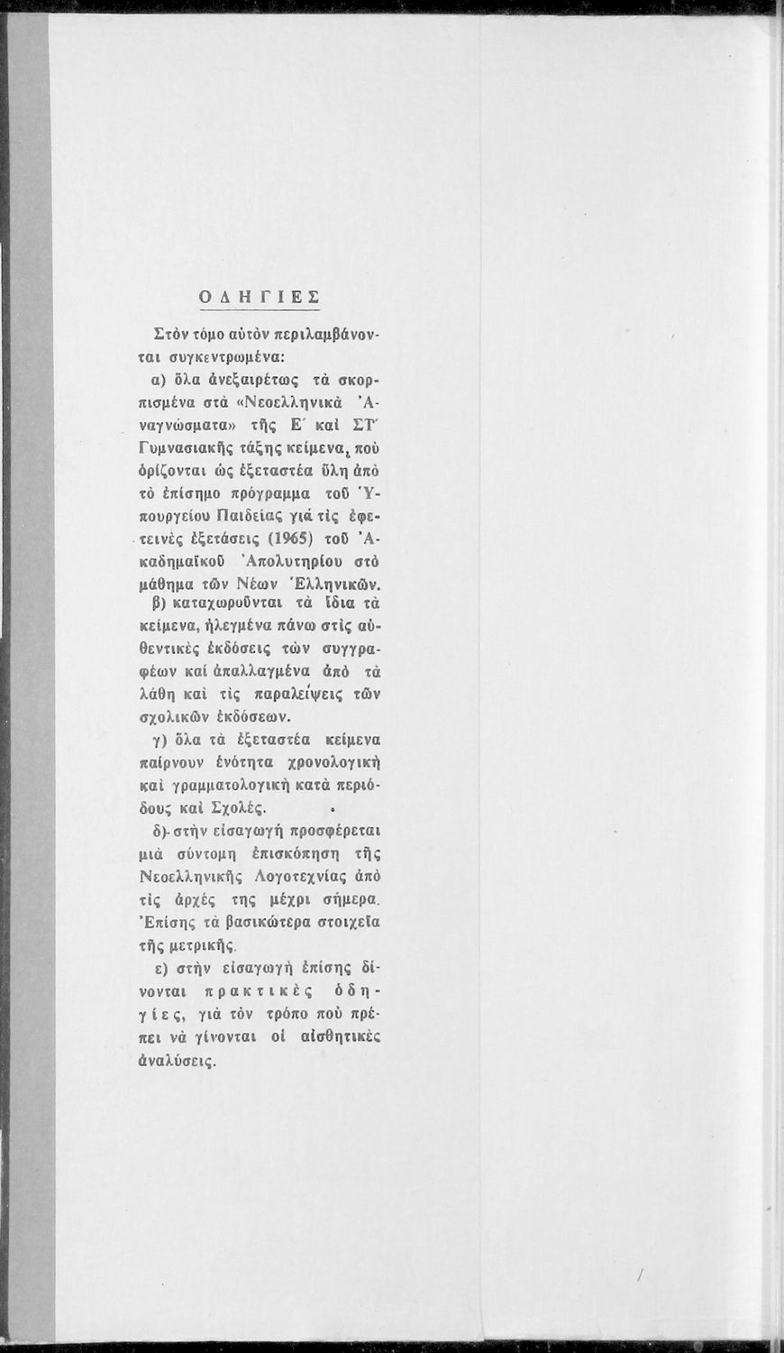 Μαθητικό βοήθημα Νέων Ελληνικών για την Ε΄ και ΣΤ΄ Γυμνασίου που περιλαμβάνει αναλύσεις των κειμένων των αντίστοιχων σχολικών εγχειριδίων από νοηματική, ερμηνευτική και γλωσσική σκοπιά. Περιέχει και βιογραφίες των συγγραφέων.
