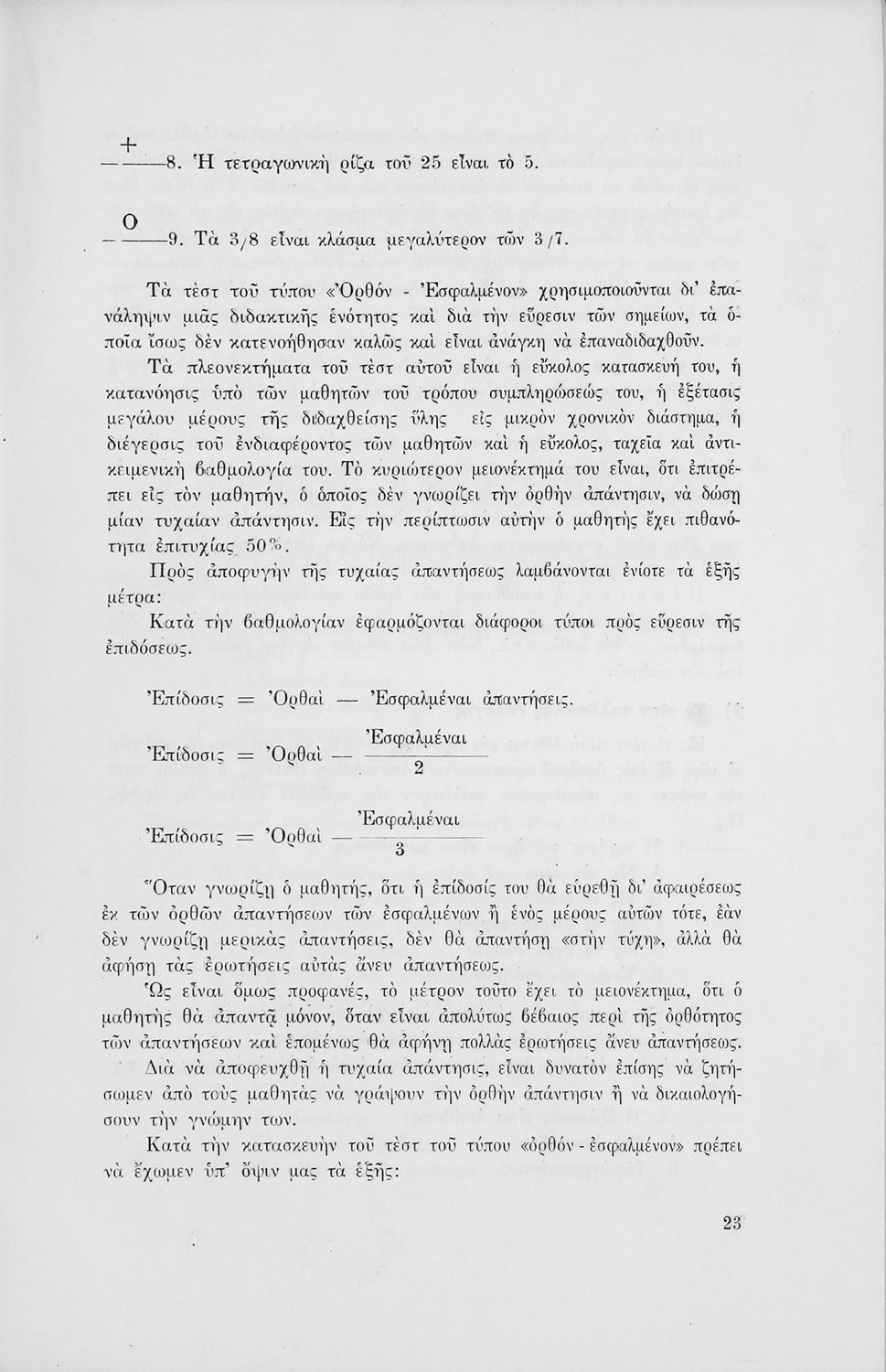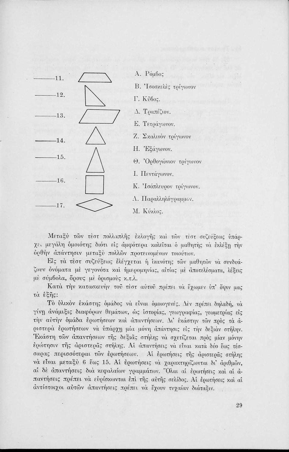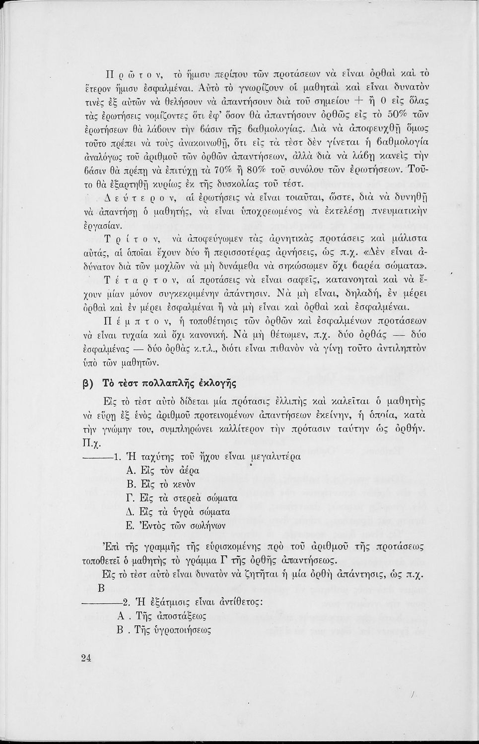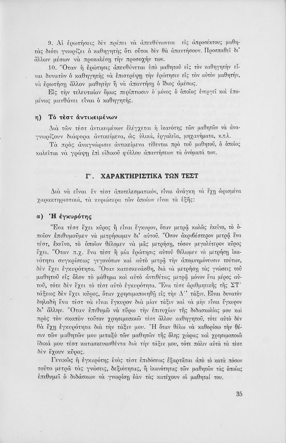 Γλώσσα: Καθαρεύουσα Παρουσίαση περιεχομένου: Παιδαγωγικό βοήθημα που περιέχει γενικές πληροφορίες για τα τεστ επίδοσης στο σχολείο, τις προφορικές και γραπτές δοκιμασίες και τους τρόπους αξιολόγησής τους. |