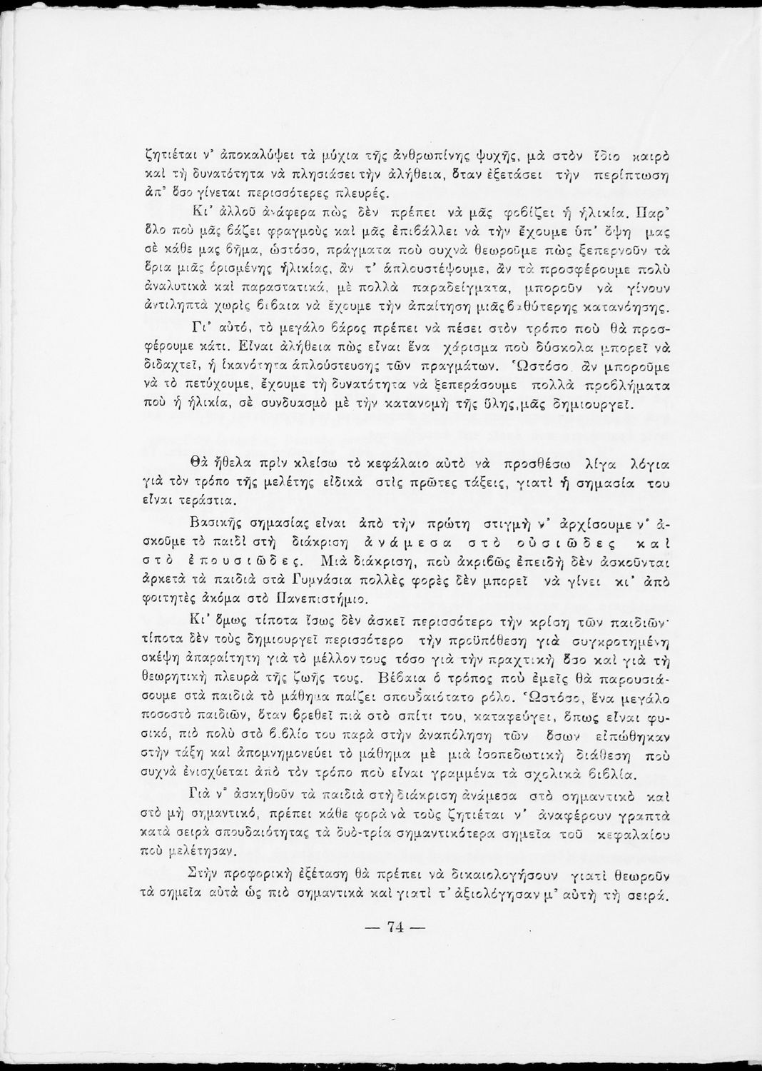 Δοκίμιο που κατά βάση απευθύνεται στους εκπαιδευτικούς της Δευτεροβάθμιας και πραγματεύεται τα προβλήματα του εκπαιδευτικού συστήματος.