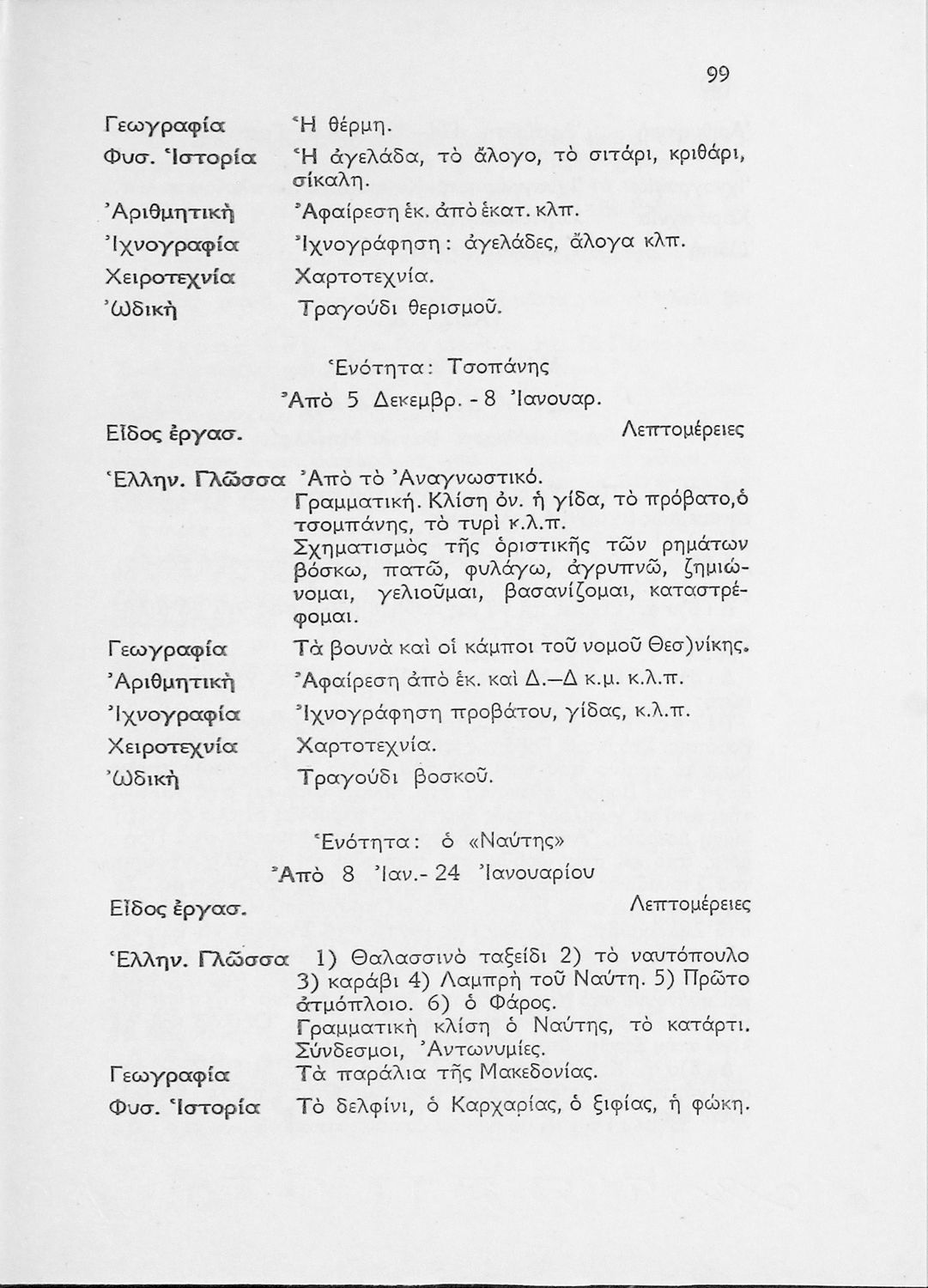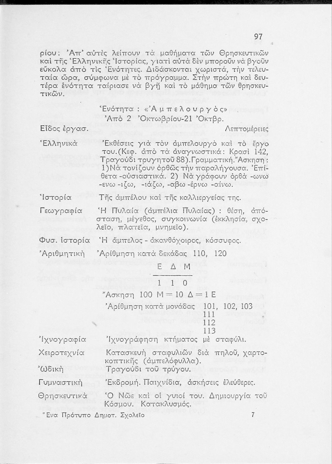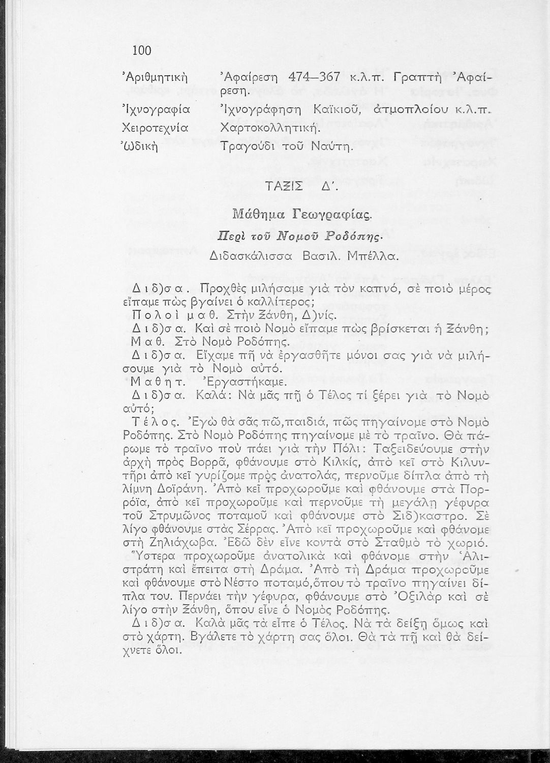 Τάξη:  Α' Ελληνικού Σχολείου / Β' Ελληνικού Σχολείου / Γ' Ελληνικού Σχολείου / Παρθεναγωγείο / Εμπορικές και Πρακτικές Σχολές