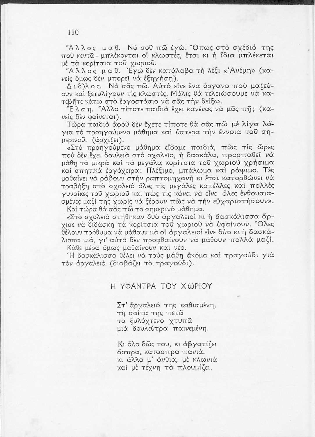 Αναγνωστικό του Δημοτικού. Περιέχει κείμενα της Γαλάτειας Καζαντζάκη. Στο τέλος του βιβλίου υπάρχουν καλλιγραφικά υποδείγματα από το Αναγνωσματάριο του Δημοσθένη Ανδρεάδη.