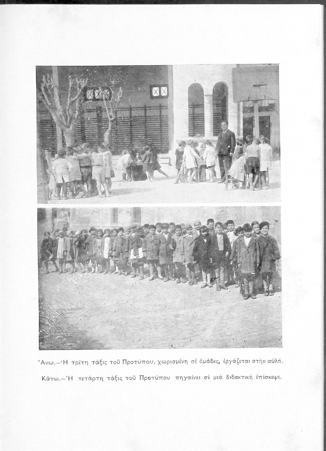 Τίτλος: Ένα πρότυπο Δημοτικό Σχολείο. Πρακτική εφαρμογή των διδακτικών αρχών του Νέου Σχολείου. Υποδειγματικές διδασκαλίες όλων των μαθητών σ' όλες τις τάξεις