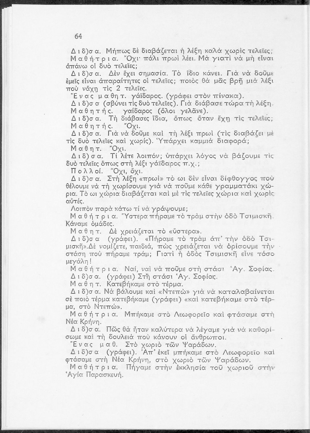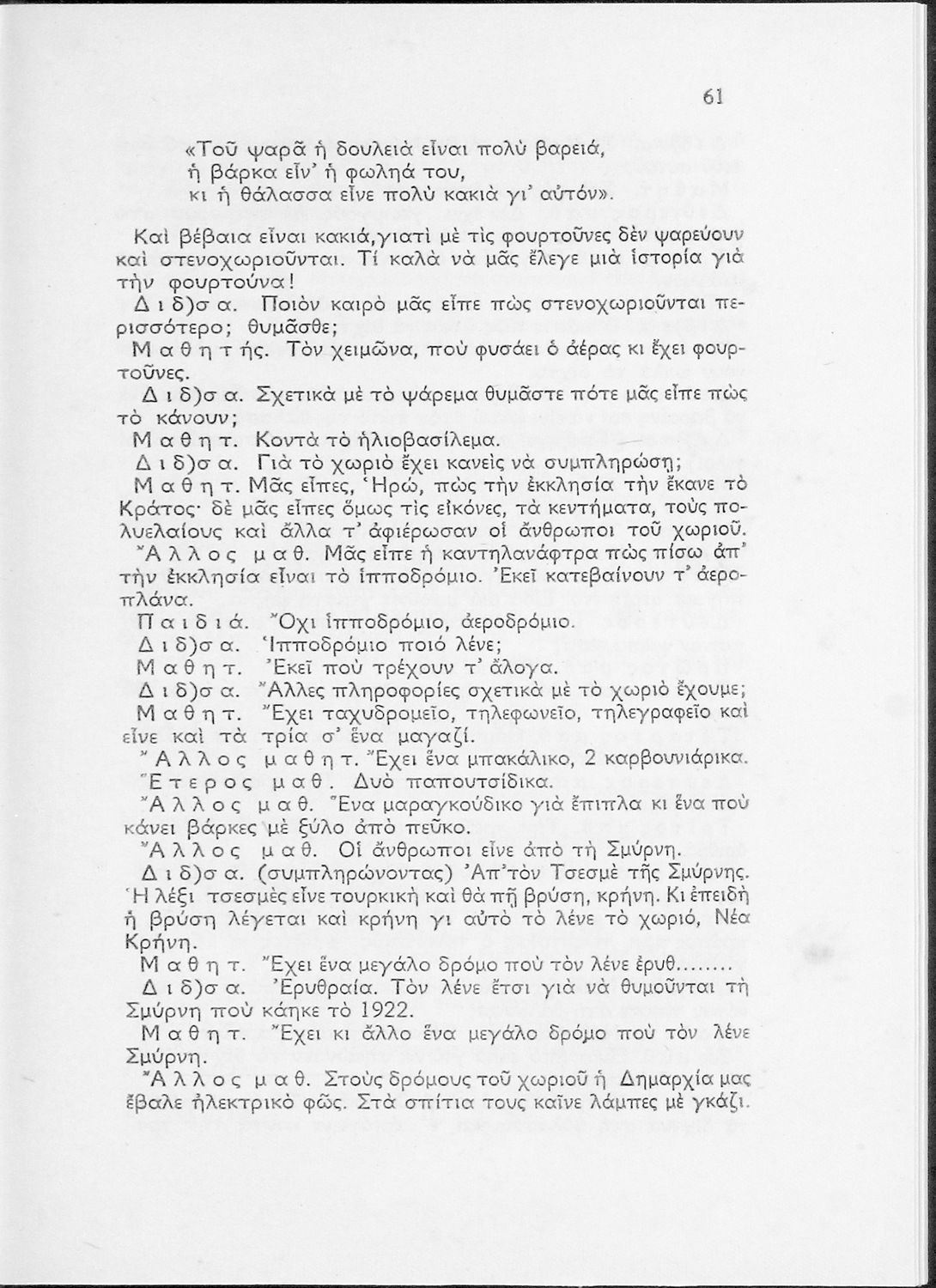 Τάξη:  Α' Ελληνικού Σχολείου / Β' Ελληνικού Σχολείου / Γ' Ελληνικού Σχολείου / Παρθεναγωγείο / Εμπορικές και Πρακτικές Σχολές