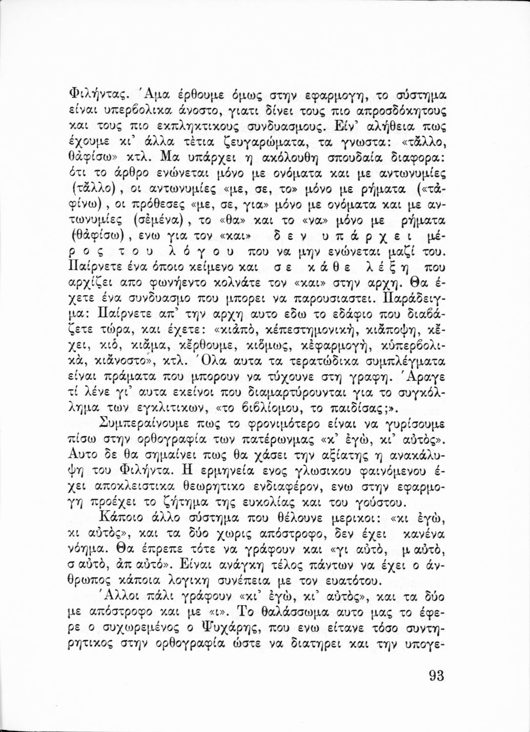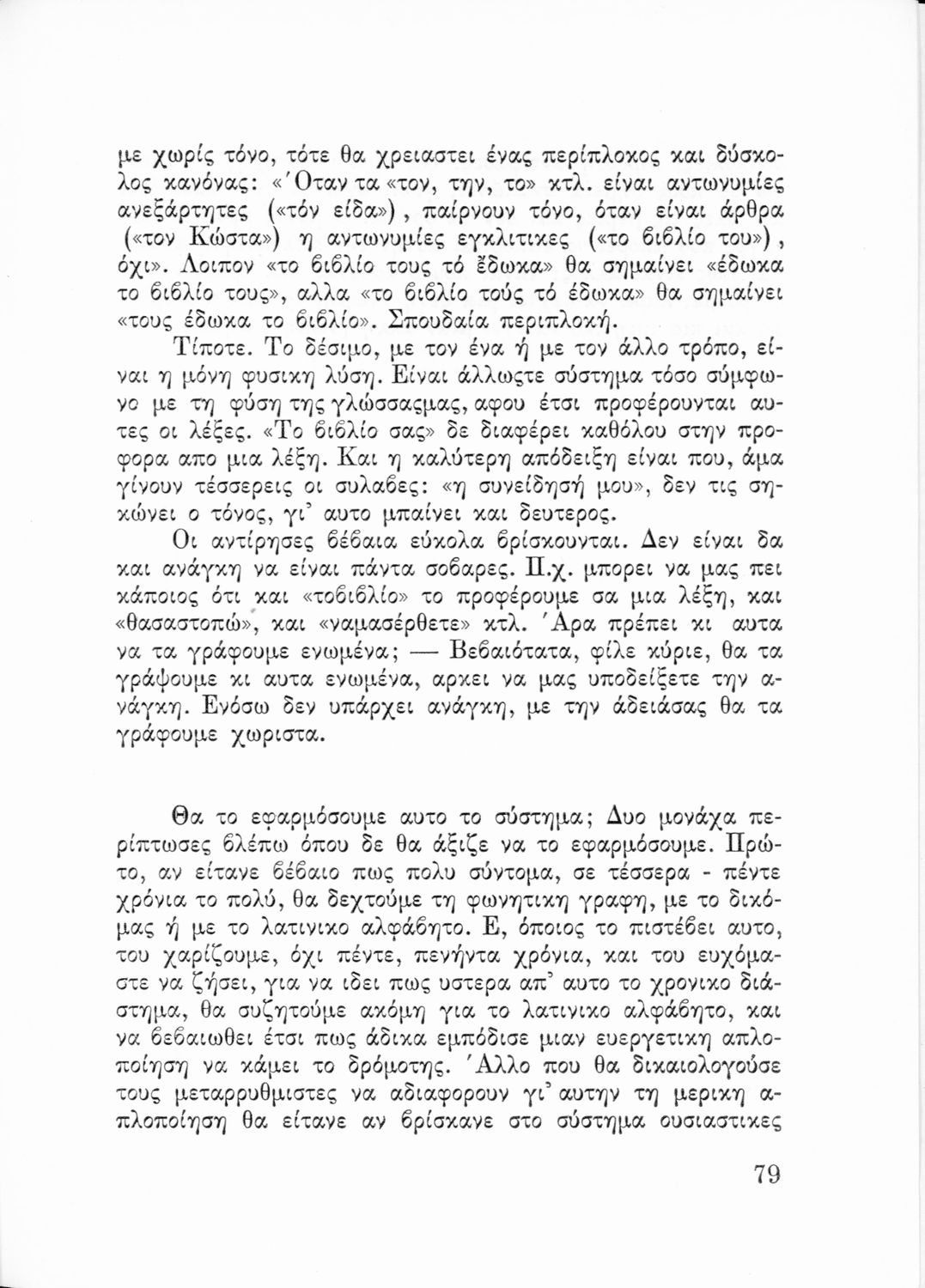 Παρουσίαση περιεχομένου: Επιστημονικό σύγγραμμα που σχολιάζει τους γλωσσικούς κανόνες και τους κανόνες ορθογραφίας και στίξης υπό το πρίσμα γλωσσολογικών θεωριών και ιστορικών συζητήσεων.
