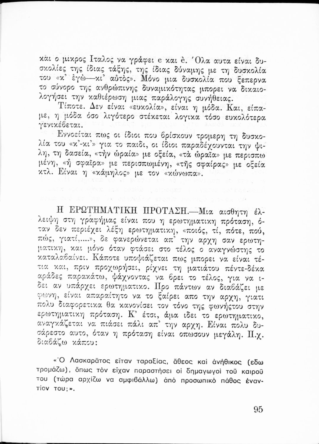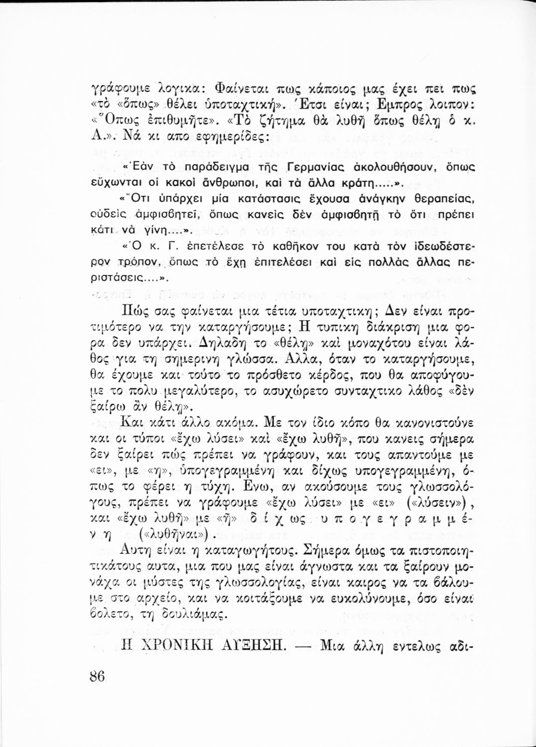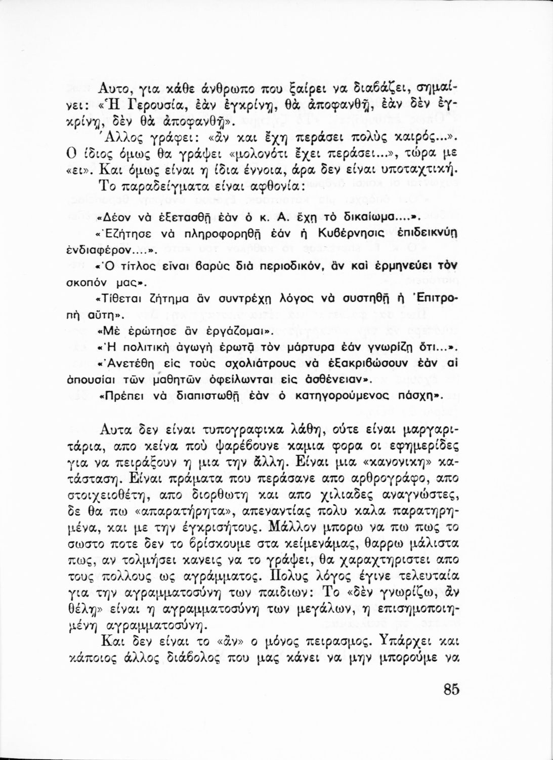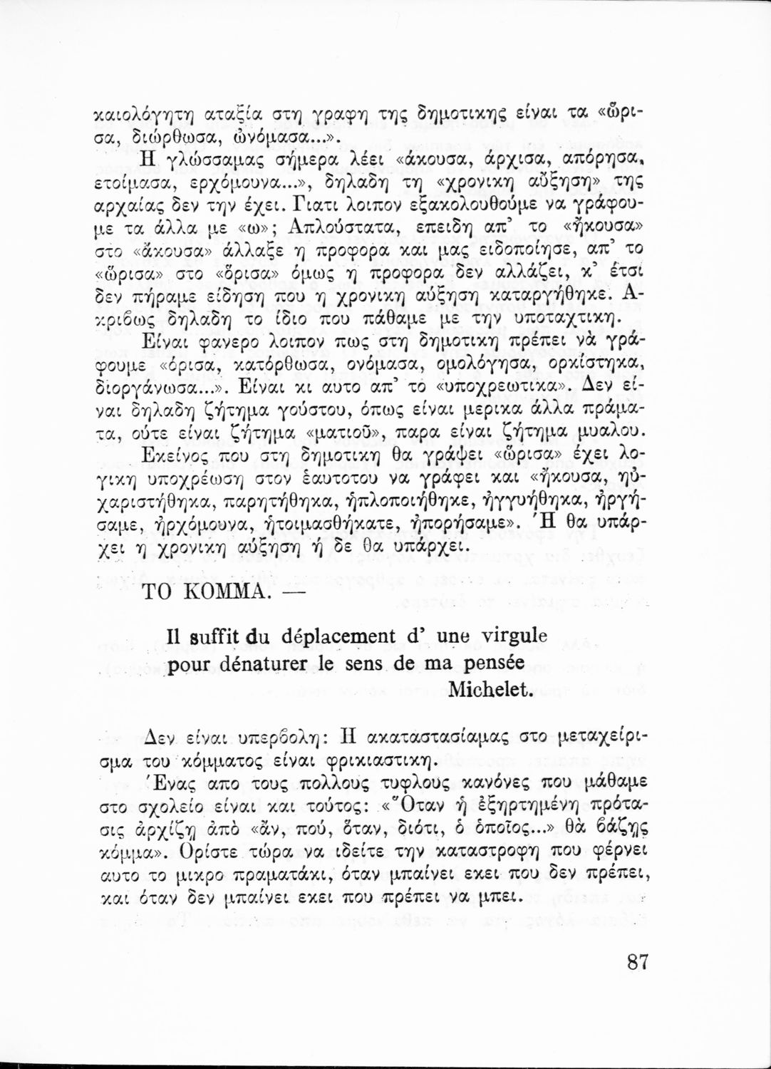 Επιστημονικό σύγγραμμα που σχολιάζει τους γλωσσικούς κανόνες και τους κανόνες ορθογραφίας και στίξης υπό το πρίσμα γλωσσολογικών θεωριών και ιστορικών συζητήσεων.