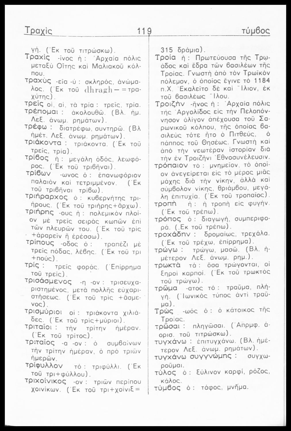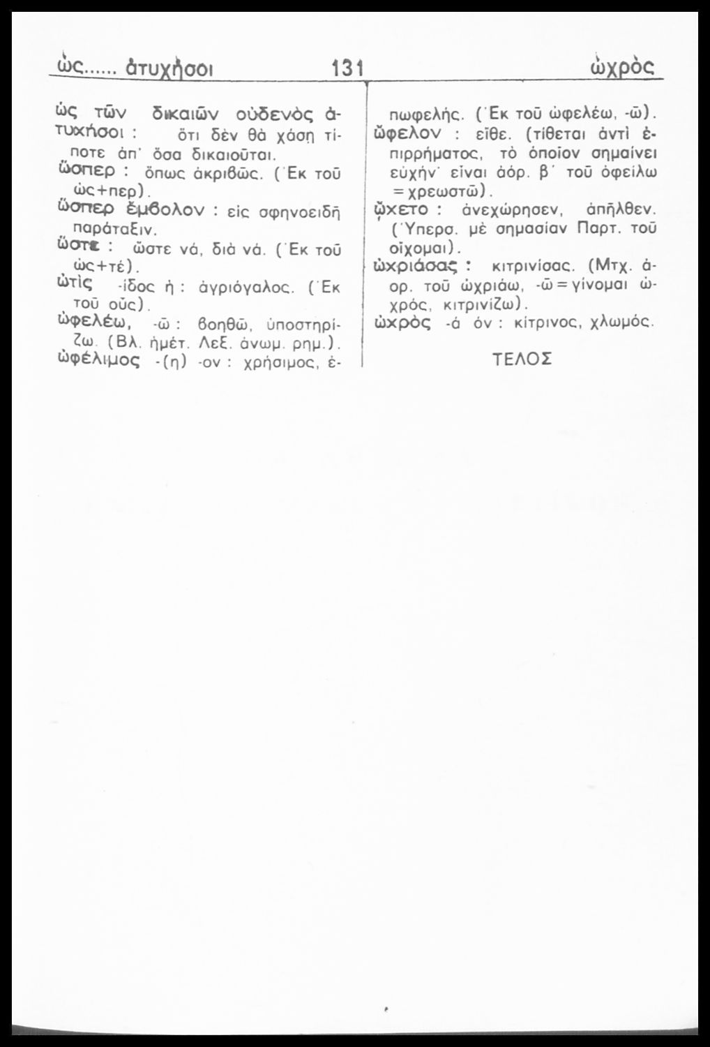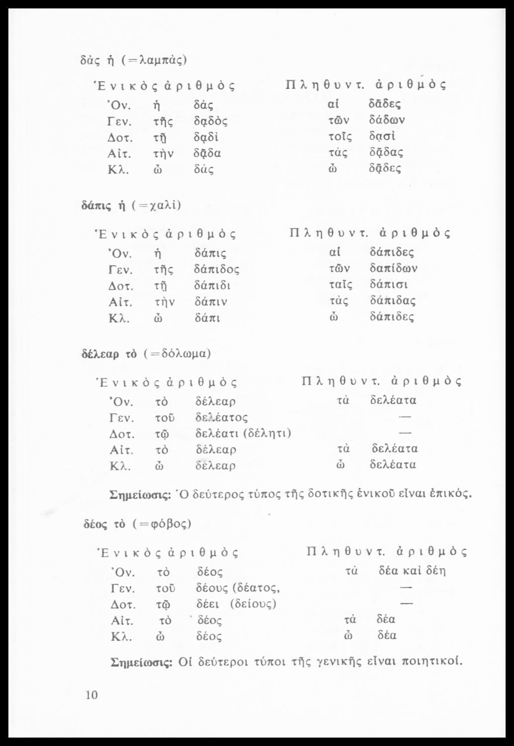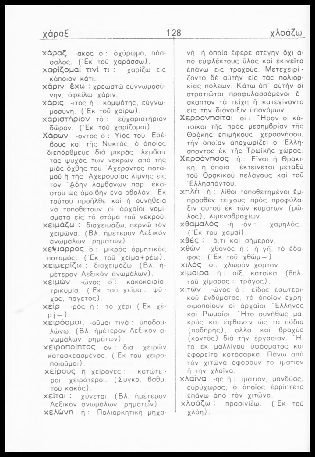 Μαθητικό βοήθημα/λεξιλόγιο που περιλαμβάνει τις λέξεις που υπάρχουν στα σχολικά βιβλία των Αρχαίων Ελληνικών των τριών πρώτων τάξεων του Γυμνασίου και παρέχει τη σημασιολογία και την ετυμολογία τους. Περιέχει παράρτημα με την κλίση των ουσιαστικών της αρχαίας ελληνικής.