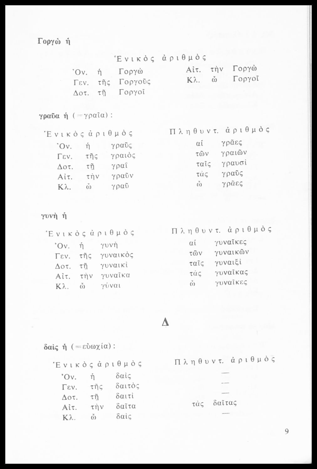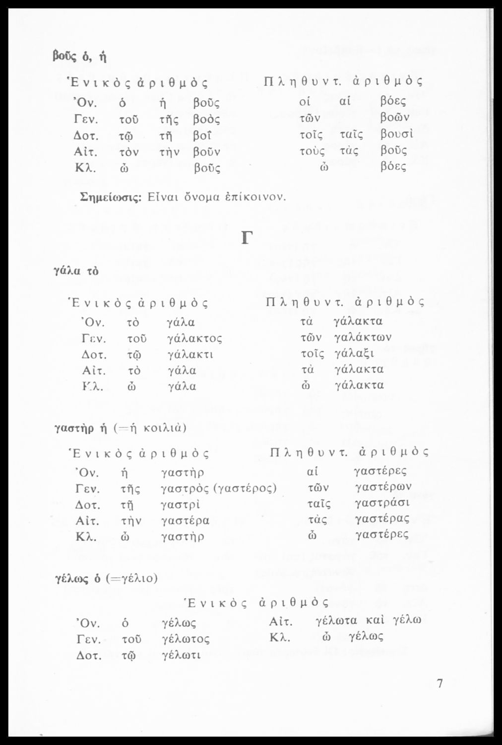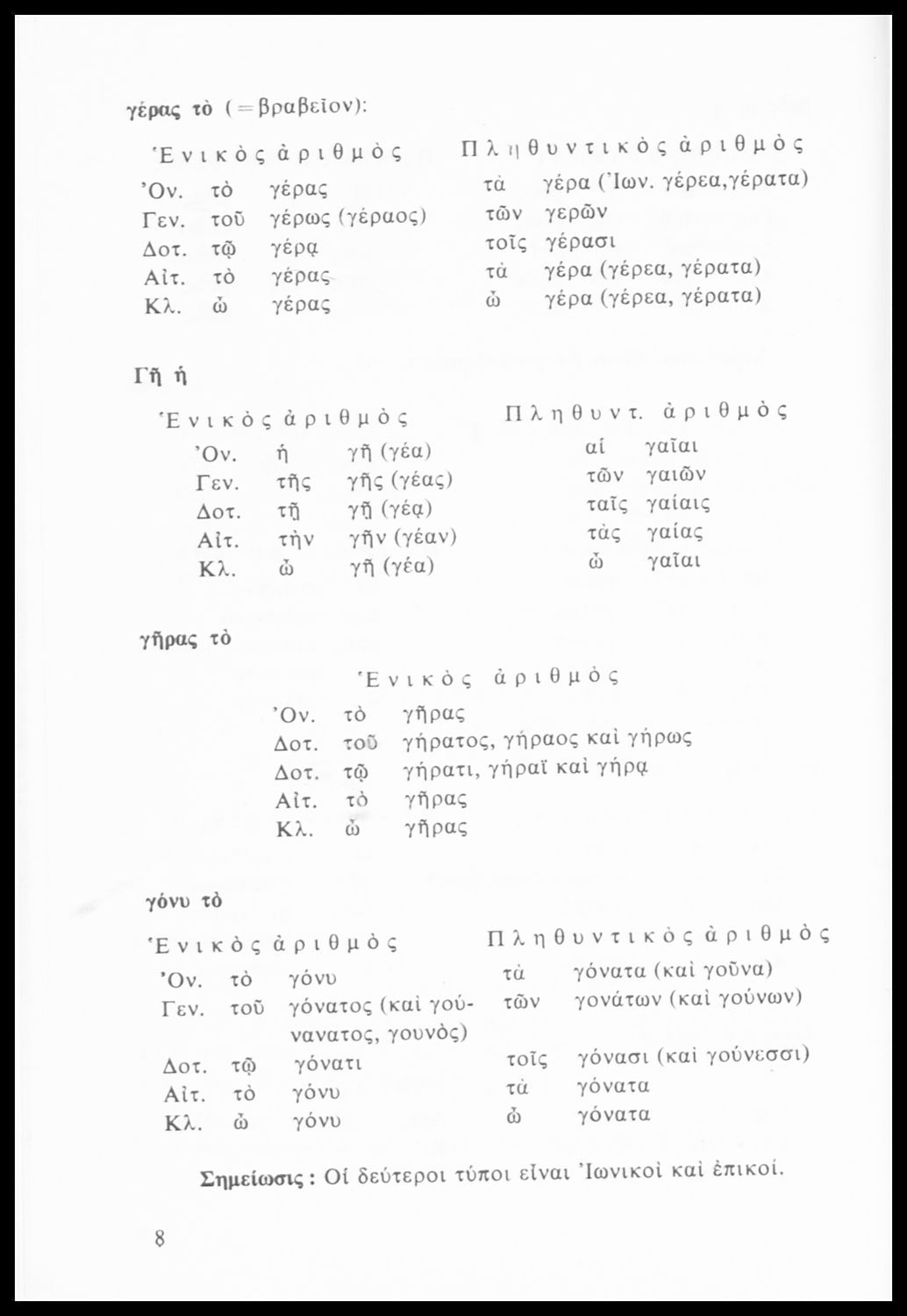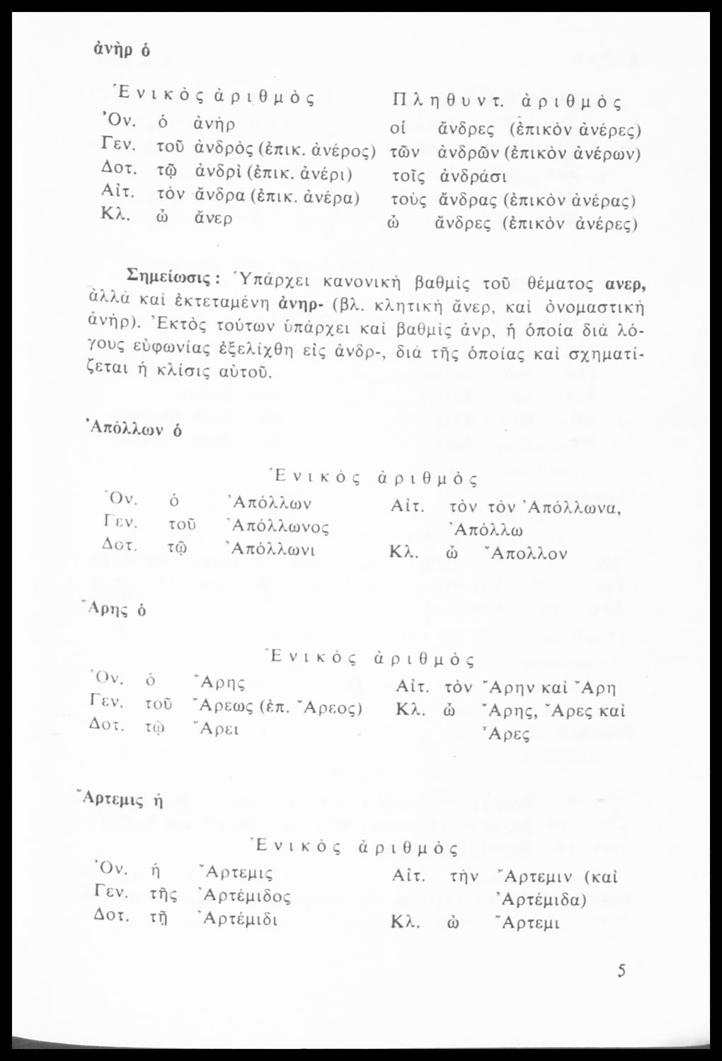 LDR 01308 2200193 4500 035 ## _a05-00089 040 ## _aΕργαστήρι Ιστορίας Ν.Ε. Εκπαίδευσης, Πανεπιστήμιο Ιωαννίνων 041 ## _ael 100 ## _aΣωκράτης Παντούλας 110 ## _a089 245 0# _aΛεξιλόγιον αρχαίας ελληνικής γλώσσης. Διά τας τάξεις: Α΄ Β΄ Γ΄ Γυμνασίου 260 ## _aΑθήνα _bΝικόδημος 300 ## _a166 520 ## _aΜαθητικό βοήθημα/λεξιλόγιο που περιλαμβάνει τις λέξεις που υπάρχουν στα σχολικά βιβλία των Αρχαίων Ελληνικών των τριών πρώτων τάξεων του Γυμνασίου και παρέχει τη σημασιολογία και την ετυμολογία τους. Περιέχει παράρτημα με την κλίση των ουσιαστικών της αρχαίας ελληνικής. 521 ## _aΑ' Γυμνασίου / Β' Γυμνασίου / Γ' Γυμνασίου 522 ## _aΕλλάδα 546 ## _aΚαθαρεύουσα 563 ## _aΜαλακό Εξώφυλλο 650 #4 _aΈννοιες _aΚλίση ουσιαστικών _aΠεριεχόμενο λέξεων