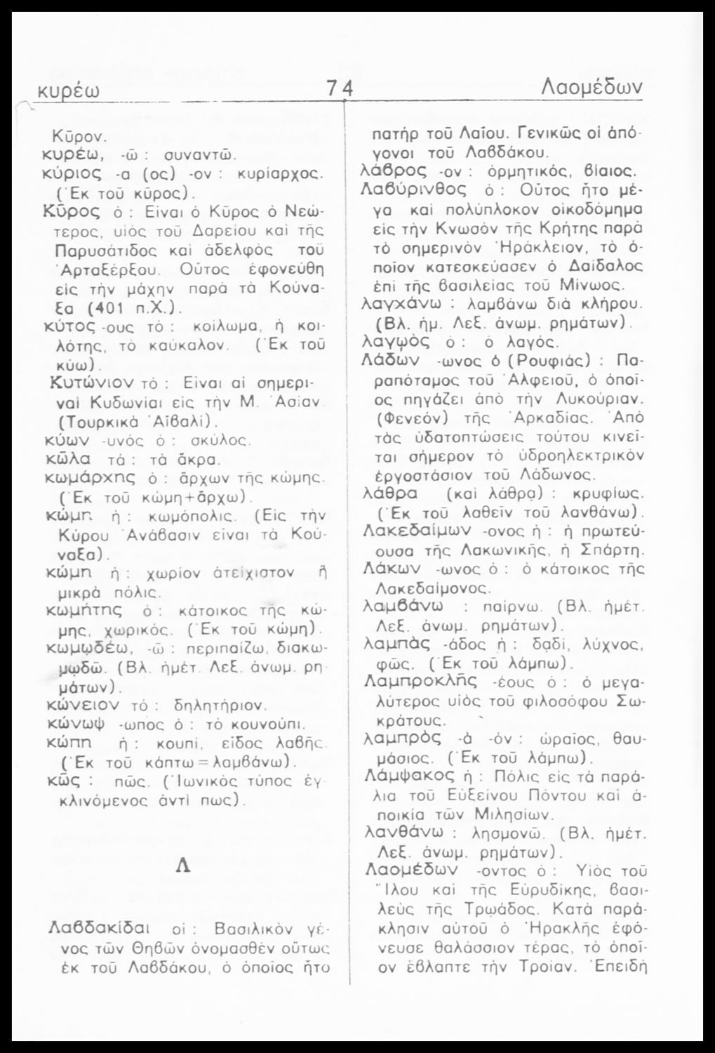520 ## _aΜαθητικό βοήθημα/λεξιλόγιο που περιλαμβάνει τις λέξεις που υπάρχουν στα σχολικά βιβλία των Αρχαίων Ελληνικών των τριών πρώτων τάξεων του Γυμνασίου και παρέχει τη σημασιολογία και την ετυμολογία τους. Περιέχει παράρτημα με την κλίση των ουσιαστικών της αρχαίας ελληνικής.