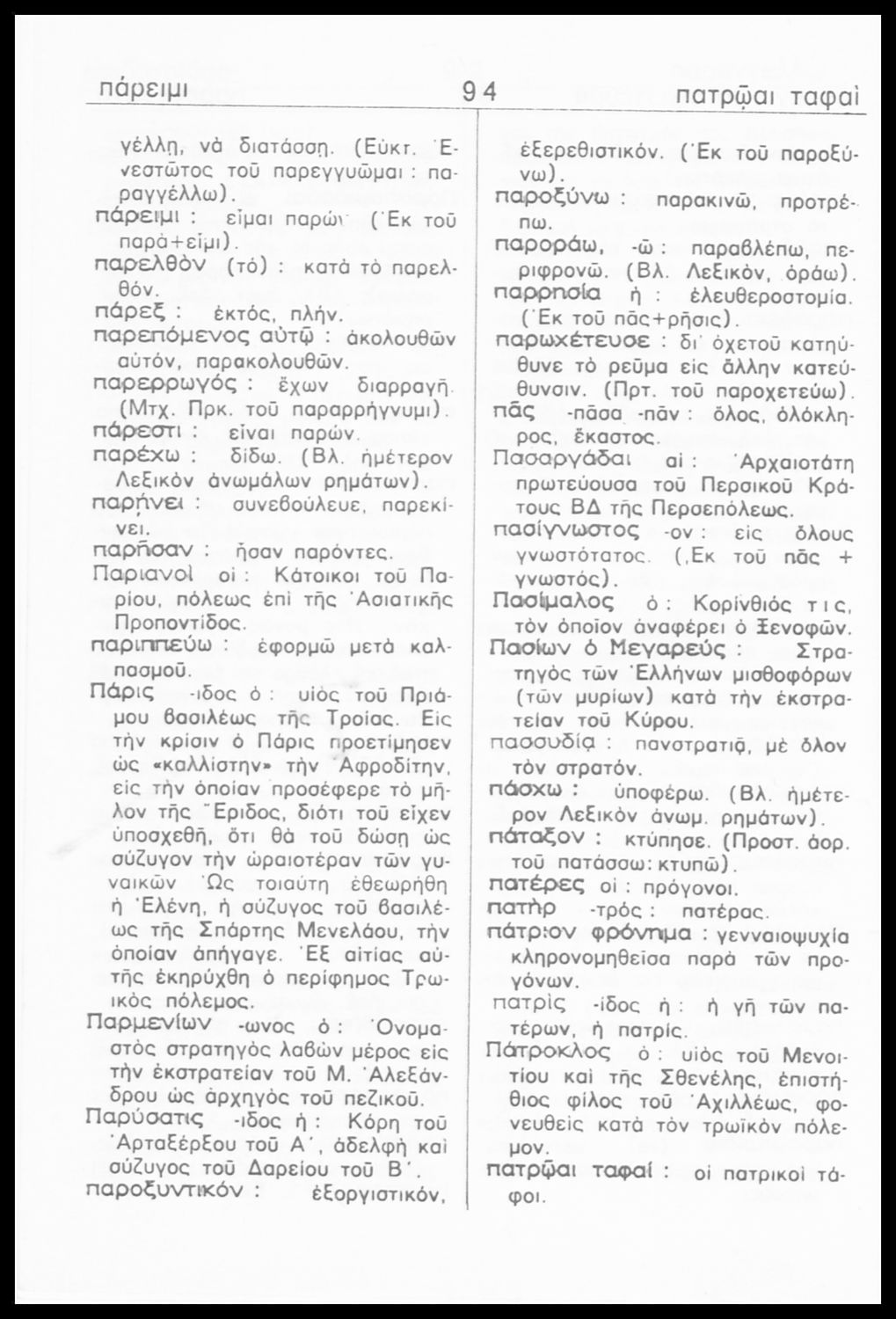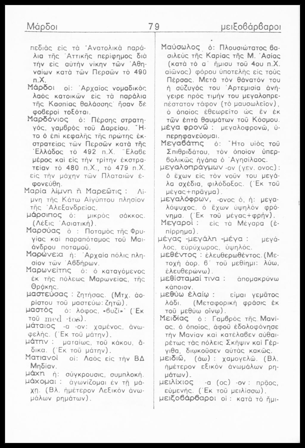 LDR 01308 2200193 4500 035 ## _a05-00089 040 ## _aΕργαστήρι Ιστορίας Ν.Ε. Εκπαίδευσης, Πανεπιστήμιο Ιωαννίνων 041 ## _ael 100 ## _aΣωκράτης Παντούλας 110 ## _a089 245 0# _aΛεξιλόγιον αρχαίας ελληνικής γλώσσης. Διά τας τάξεις: Α΄ Β΄ Γ΄ Γυμνασίου 260 ## _aΑθήνα _bΝικόδημος 300 ## _a166 520 ## _aΜαθητικό βοήθημα/λεξιλόγιο που περιλαμβάνει τις λέξεις που υπάρχουν στα σχολικά βιβλία των Αρχαίων Ελληνικών των τριών πρώτων τάξεων του Γυμνασίου και παρέχει τη σημασιολογία και την ετυμολογία τους. Περιέχει παράρτημα με την κλίση των ουσιαστικών της αρχαίας ελληνικής. 521 ## _aΑ' Γυμνασίου / Β' Γυμνασίου / Γ' Γυμνασίου 522 ## _aΕλλάδα 546 ## _aΚαθαρεύουσα 563 ## _aΜαλακό Εξώφυλλο 650 #4 _aΈννοιες _aΚλίση ουσιαστικών _aΠεριεχόμενο λέξεων