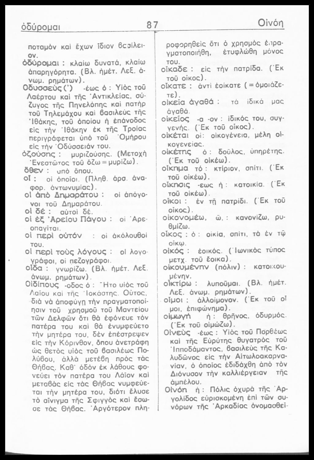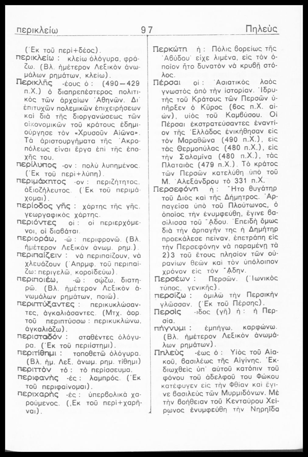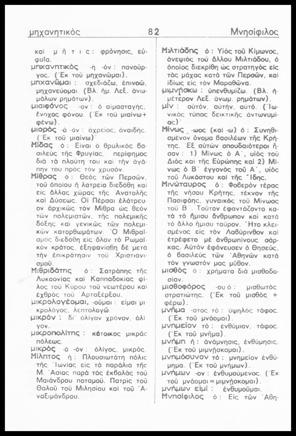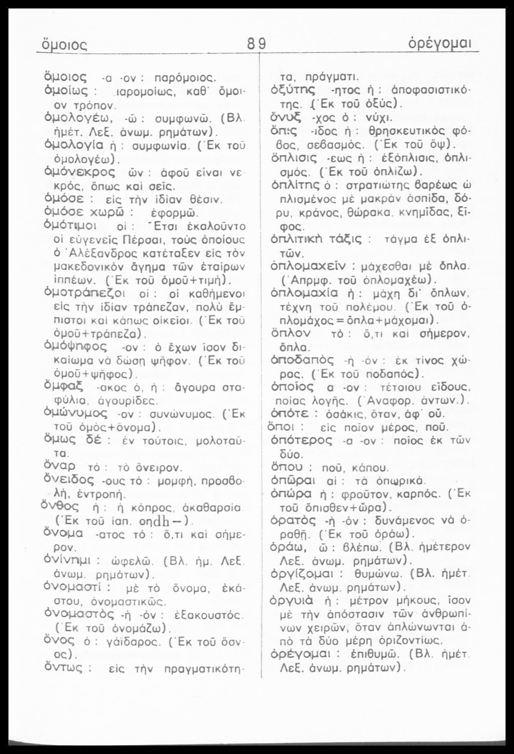 Μαθητικό βοήθημα/λεξιλόγιο που περιλαμβάνει τις λέξεις που υπάρχουν στα σχολικά βιβλία των Αρχαίων Ελληνικών των τριών πρώτων τάξεων του Γυμνασίου και παρέχει τη σημασιολογία και την ετυμολογία τους. Περιέχει παράρτημα με την κλίση των ουσιαστικών της αρχαίας ελληνικής.