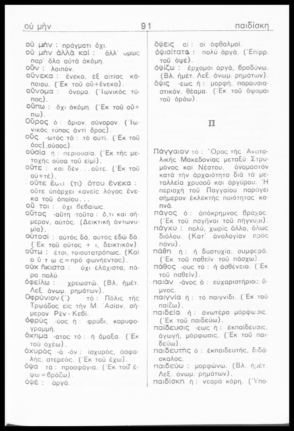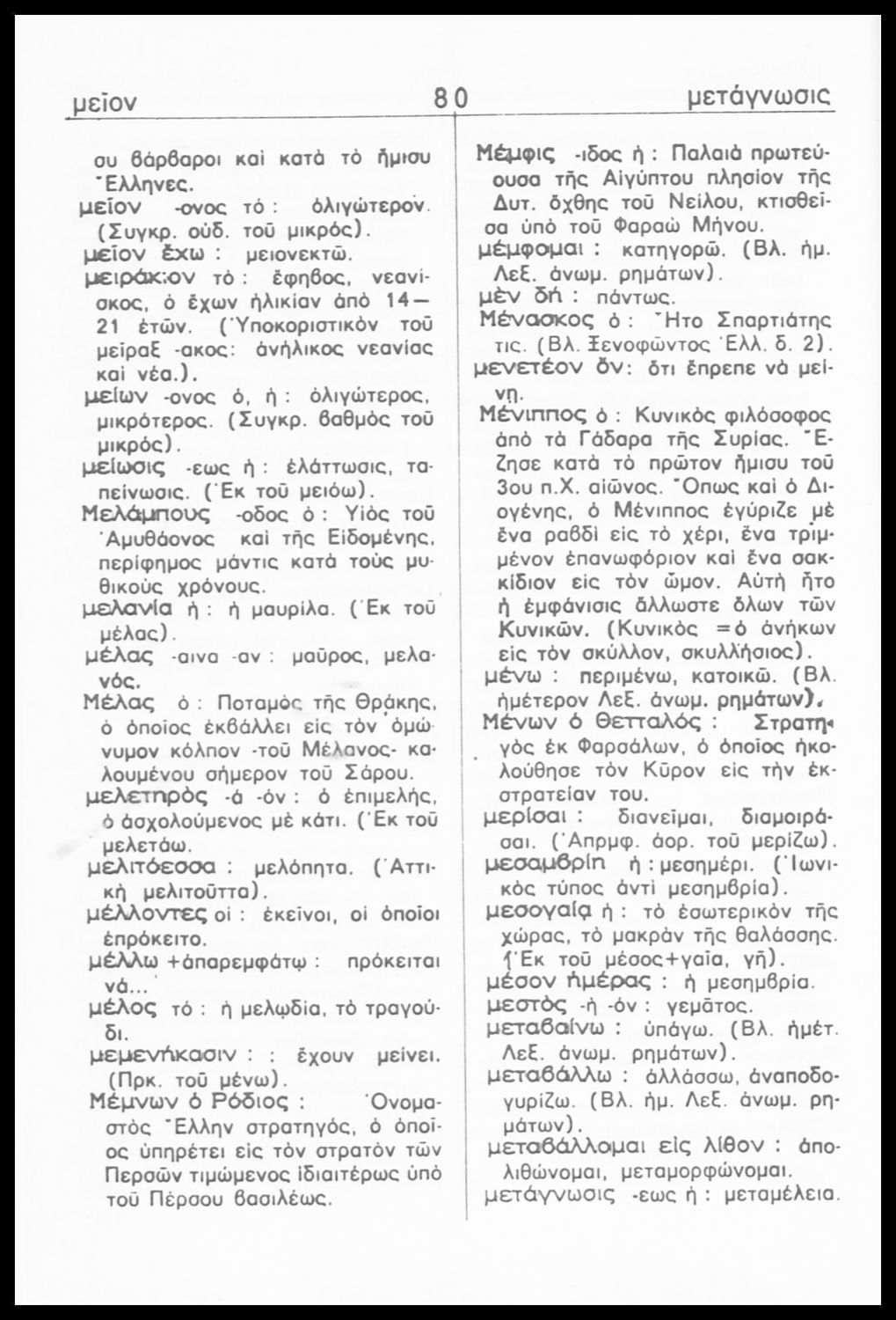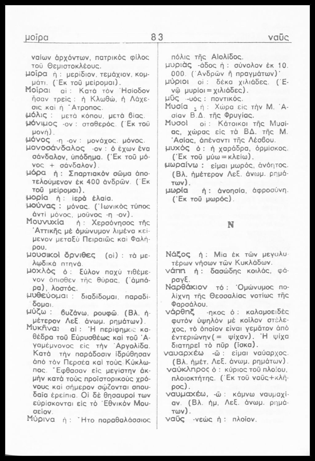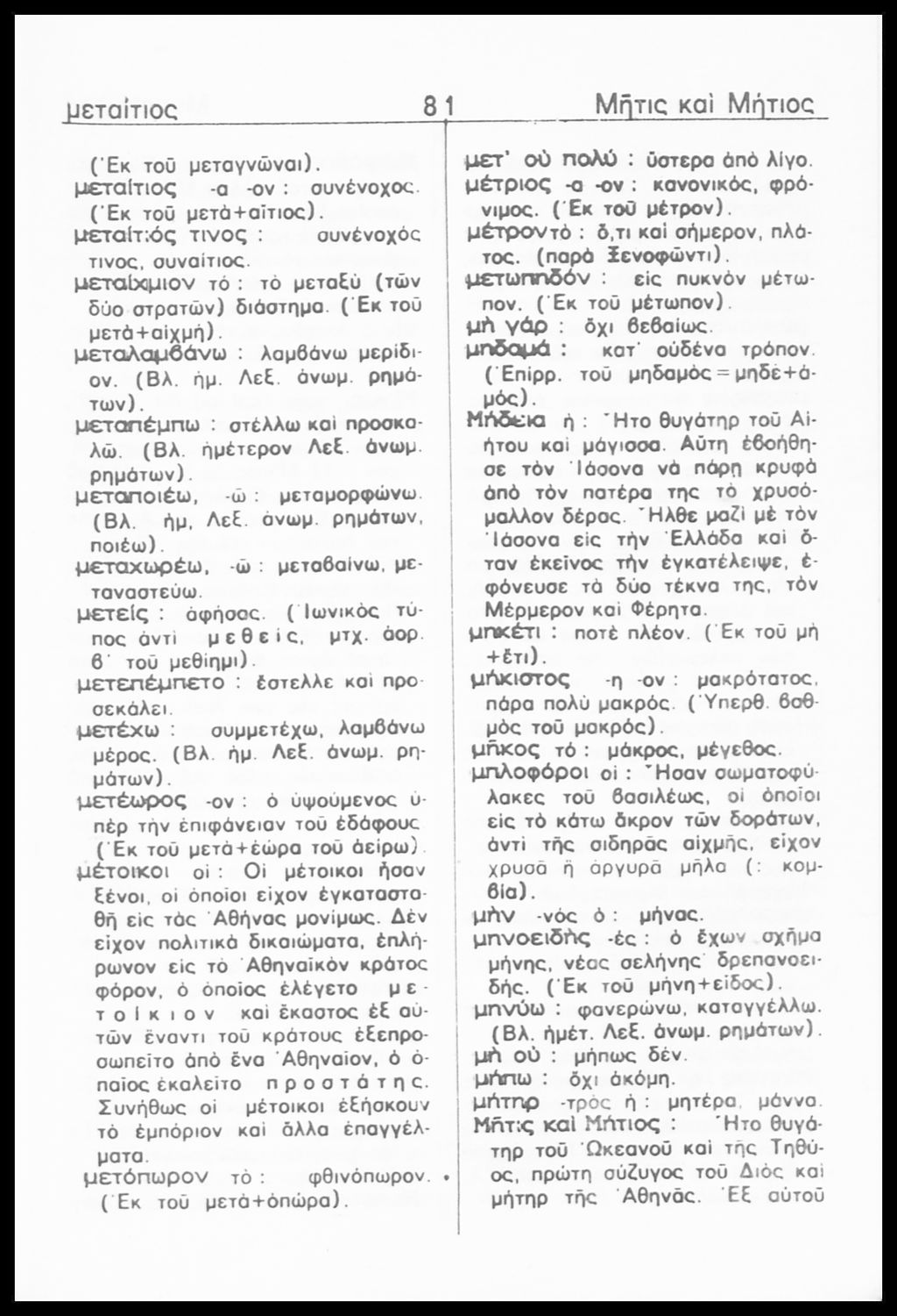 Μαθητικό βοήθημα/λεξιλόγιο που περιλαμβάνει τις λέξεις που υπάρχουν στα σχολικά βιβλία των Αρχαίων Ελληνικών των τριών πρώτων τάξεων του Γυμνασίου και παρέχει τη σημασιολογία και την ετυμολογία τους. Περιέχει παράρτημα με την κλίση των ουσιαστικών της αρχαίας ελληνικής.