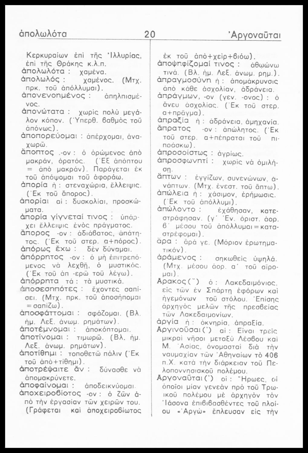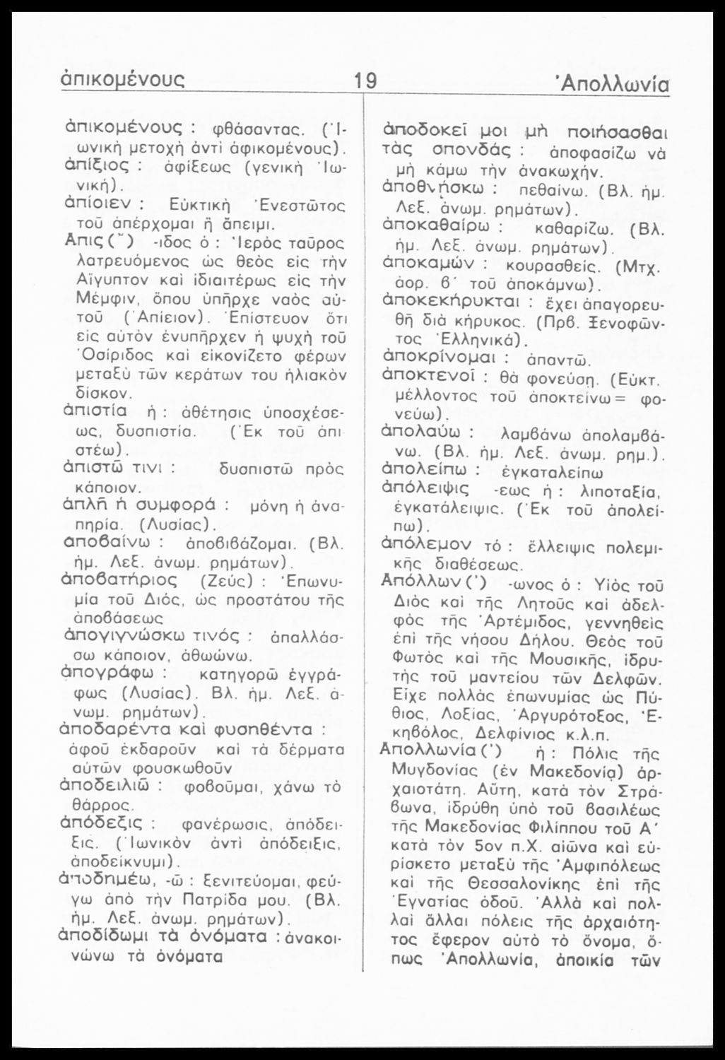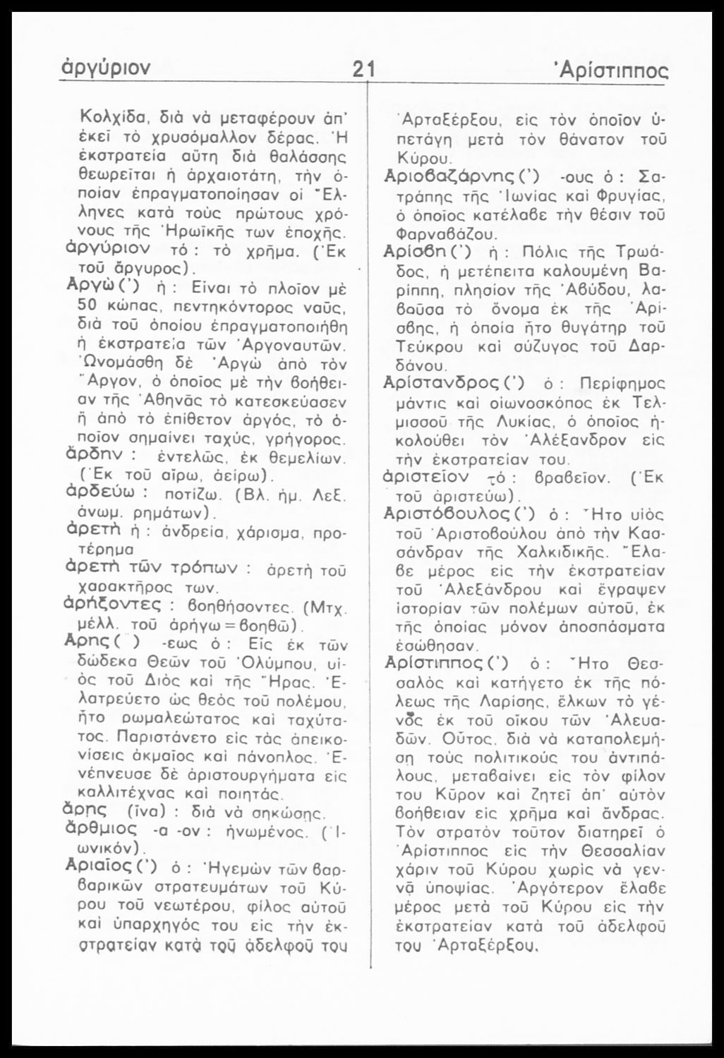 Μαθητικό βοήθημα/λεξιλόγιο που περιλαμβάνει τις λέξεις που υπάρχουν στα σχολικά βιβλία των Αρχαίων Ελληνικών των τριών πρώτων τάξεων του Γυμνασίου και παρέχει τη σημασιολογία και την ετυμολογία τους. Περιέχει παράρτημα με την κλίση των ουσιαστικών της αρχαίας ελληνικής.