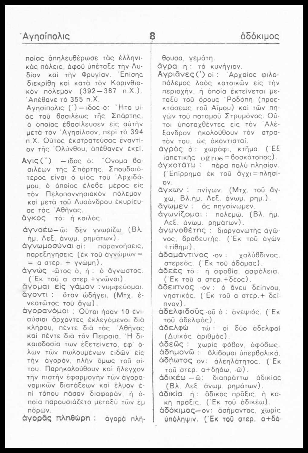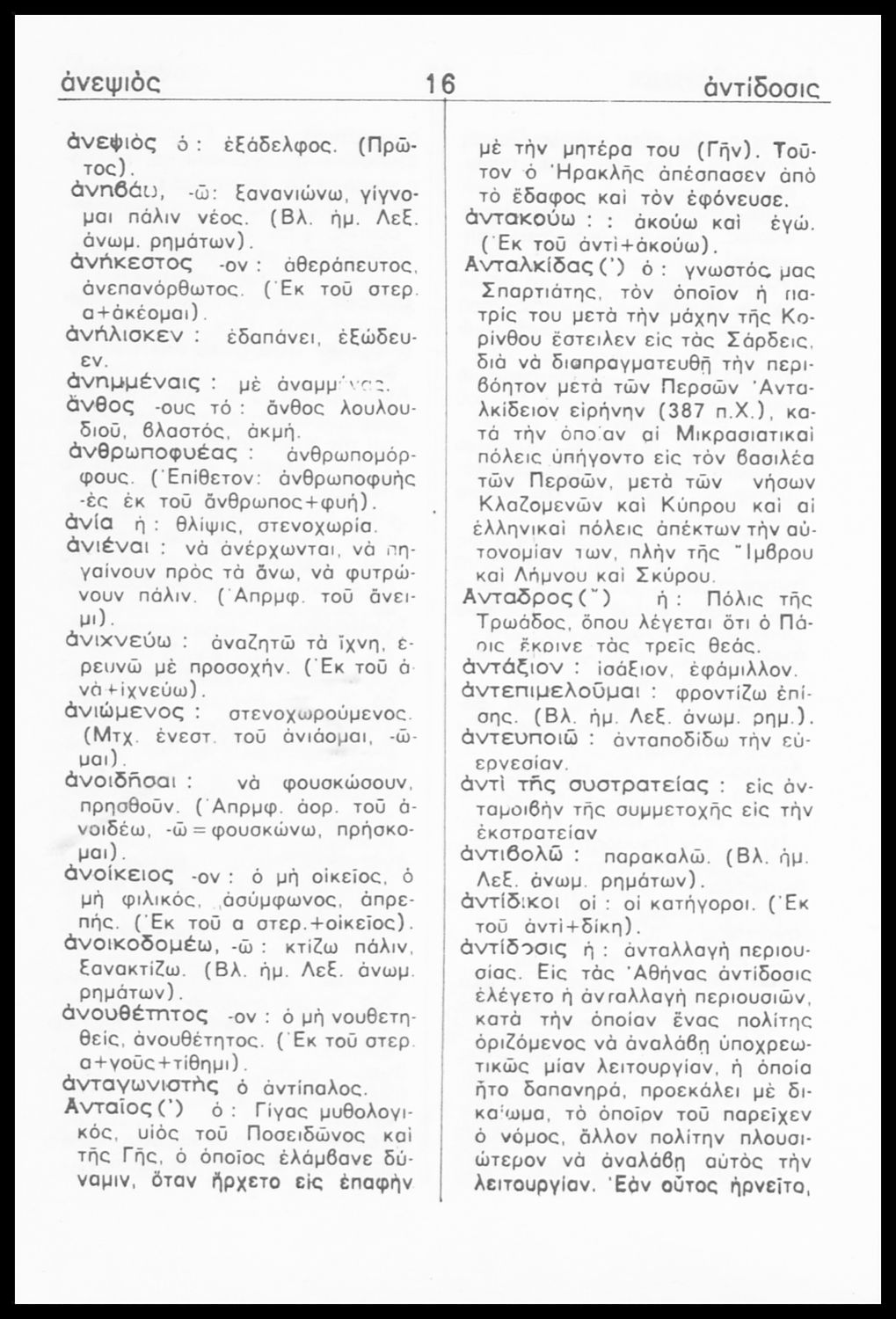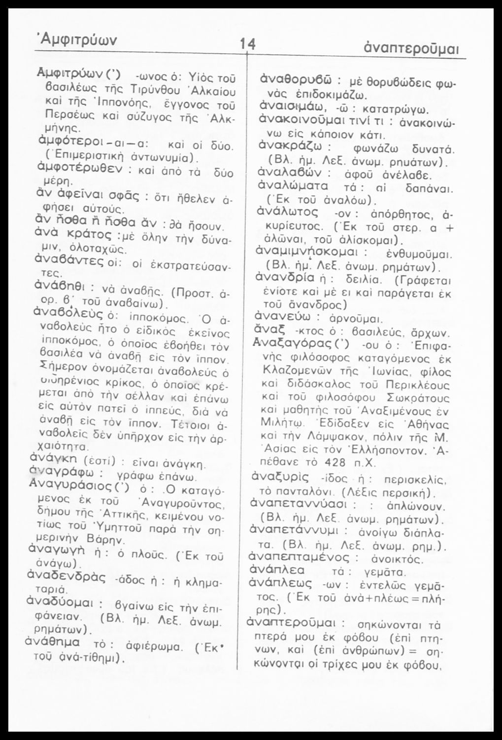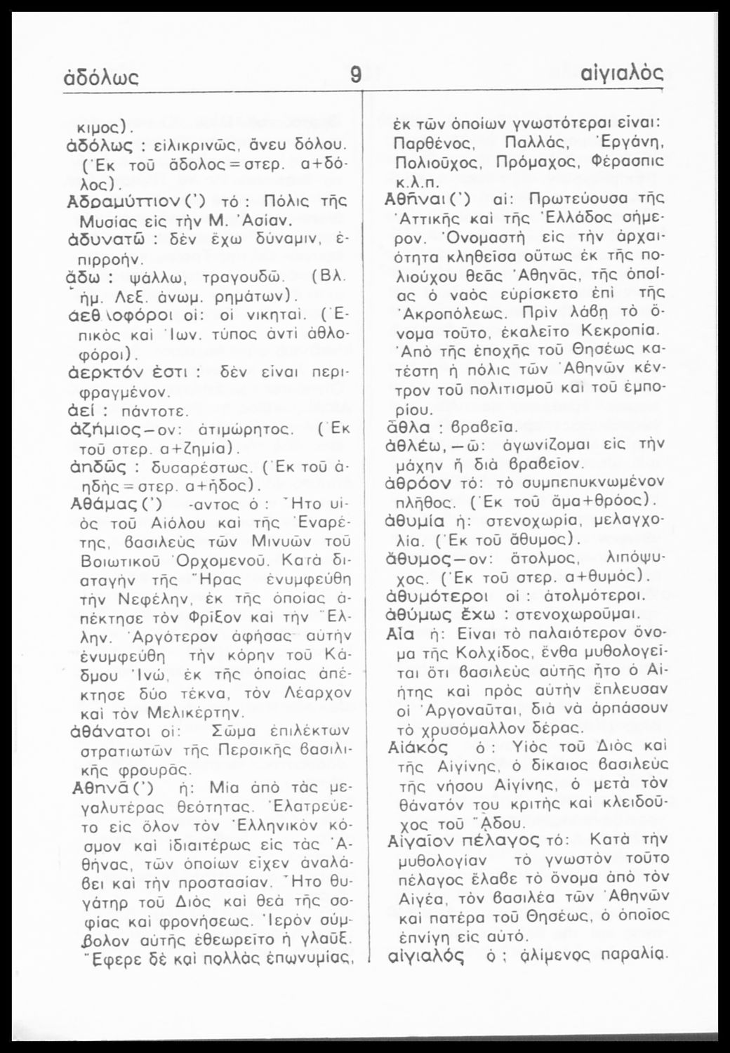 Μαθητικό βοήθημα/λεξιλόγιο που περιλαμβάνει τις λέξεις που υπάρχουν στα σχολικά βιβλία των Αρχαίων Ελληνικών των τριών πρώτων τάξεων του Γυμνασίου και παρέχει τη σημασιολογία και την ετυμολογία τους. Περιέχει παράρτημα με την κλίση των ουσιαστικών της αρχαίας ελληνικής.