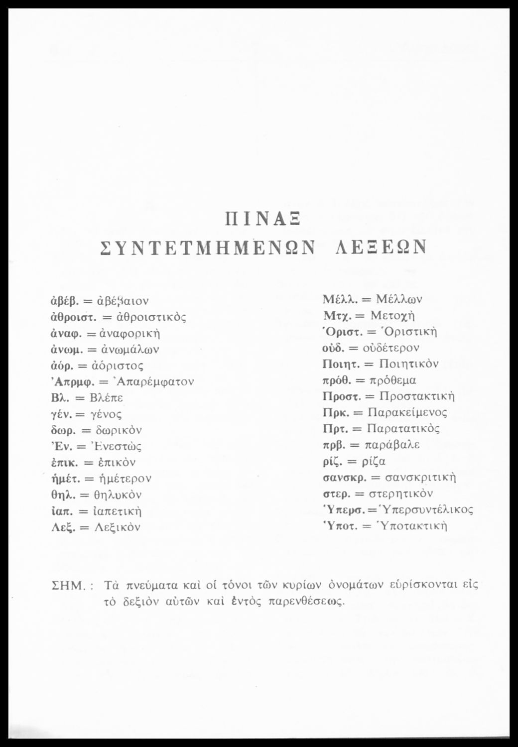 LDR 01308 2200193 4500 035 ## _a05-00089 040 ## _aΕργαστήρι Ιστορίας Ν.Ε. Εκπαίδευσης, Πανεπιστήμιο Ιωαννίνων 041 ## _ael 100 ## _aΣωκράτης Παντούλας 110 ## _a089 245 0# _aΛεξιλόγιον αρχαίας ελληνικής γλώσσης. Διά τας τάξεις: Α΄ Β΄ Γ΄ Γυμνασίου 260 ## _aΑθήνα _bΝικόδημος 300 ## _a166 520 ## _aΜαθητικό βοήθημα/λεξιλόγιο που περιλαμβάνει τις λέξεις που υπάρχουν στα σχολικά βιβλία των Αρχαίων Ελληνικών των τριών πρώτων τάξεων του Γυμνασίου και παρέχει τη σημασιολογία και την ετυμολογία τους. Περιέχει παράρτημα με την κλίση των ουσιαστικών της αρχαίας ελληνικής. 521 ## _aΑ' Γυμνασίου / Β' Γυμνασίου / Γ' Γυμνασίου 522 ## _aΕλλάδα 546 ## _aΚαθαρεύουσα 563 ## _aΜαλακό Εξώφυλλο 650 #4 _aΈννοιες _aΚλίση ουσιαστικών _aΠεριεχόμενο λέξεων