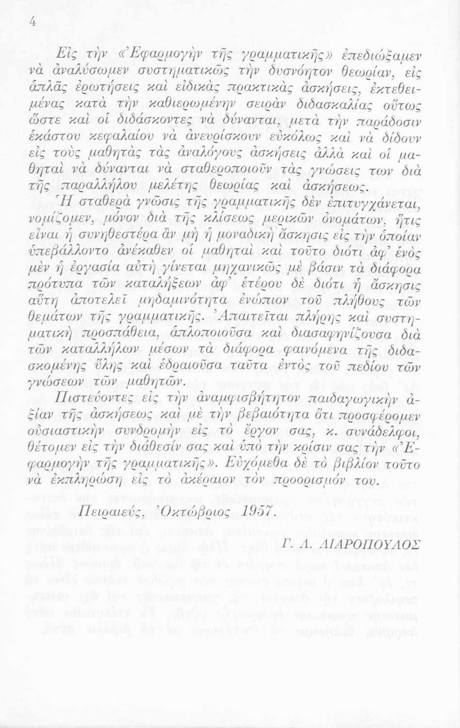 LDR 01153 2200205 4500 035 ## _a05-00090 040 ## _aΕργαστήρι Ιστορίας Ν.Ε. Εκπαίδευσης, Πανεπιστήμιο Ιωαννίνων 041 ## _ael 100 ## _aΓ. Λ. Λιαρόπουλος 110 ## _a090 245 0# _aΗ εφαρμογή της γραμματικής. Διά την Ε΄ και ΣΤ΄ τάξιν των Δημοτικών Σχολείων και διά τας εισαγωγικάς εξετάσεις των Γυμνασίων 250 ## _a1η Έκδοση 260 ## _aΠειραιάς _c1957 300 ## _a69 520 ## _aΜαθητικό βοήθημα Γλώσσας Ε΄ και ΣΤ΄ Δημοτικού που περιλαμβάνει τη γραμματική της νέας ελληνικής και είναι χωρισμένο σε φθογγολογικό και ετυμολογικό μέρος. 521 ## _aΕ' Δημοτικού / ΣΤ' Δημοτικού 522 ## _aΕλλάδα 546 ## _aΚαθαρεύουσα 563 ## _aΜαλακό Εξώφυλλο 650 #4 _aΕγκλίσεις _aΚλίσεις _aΡήματα