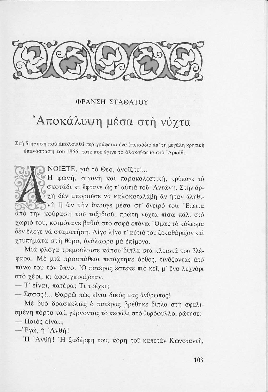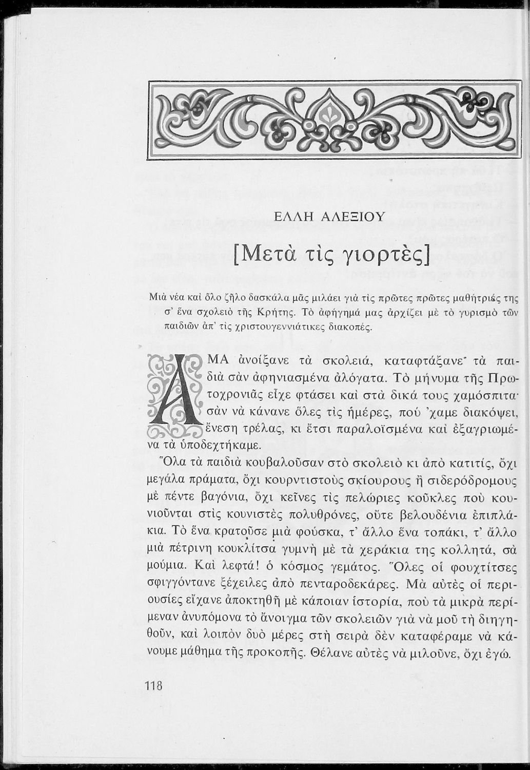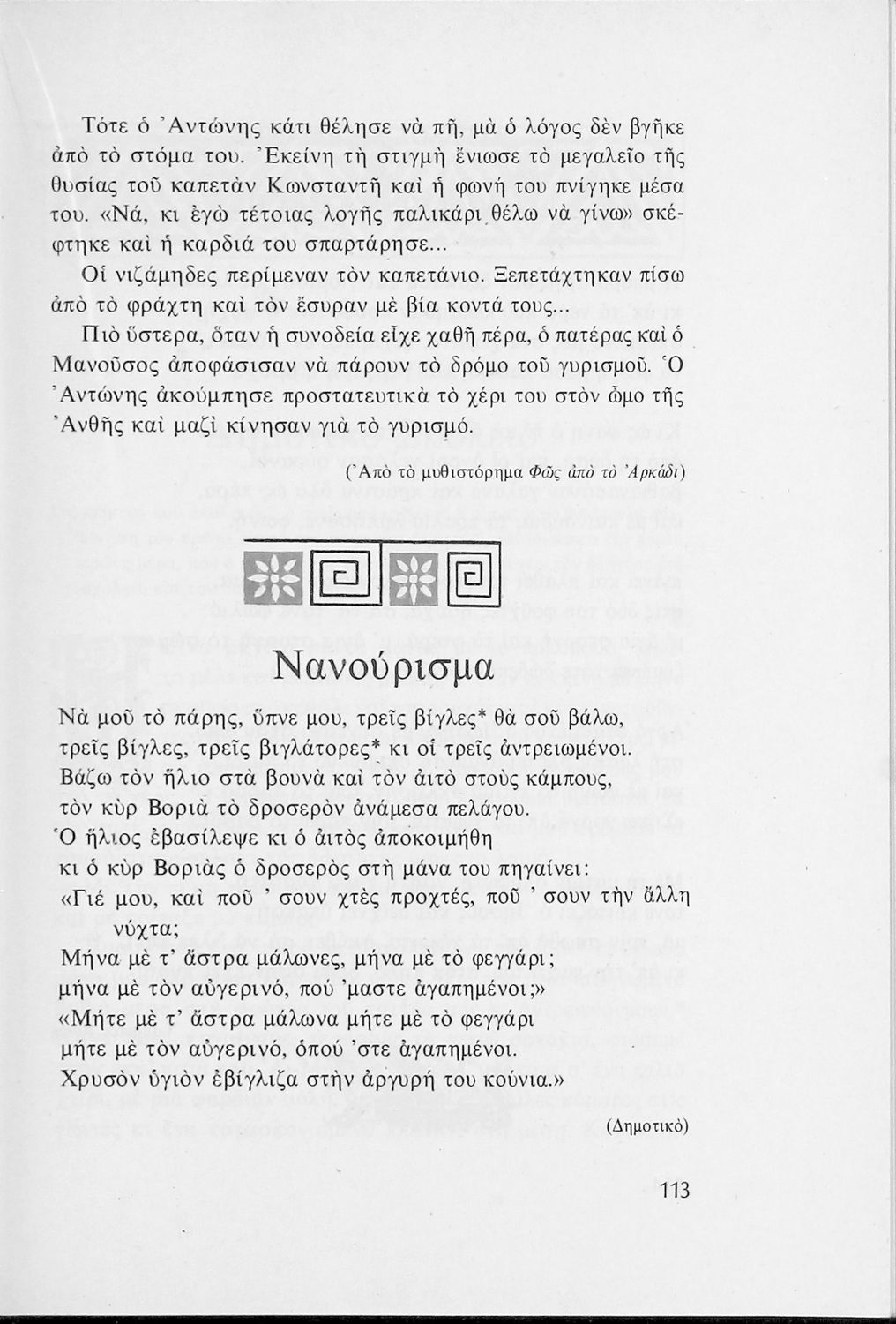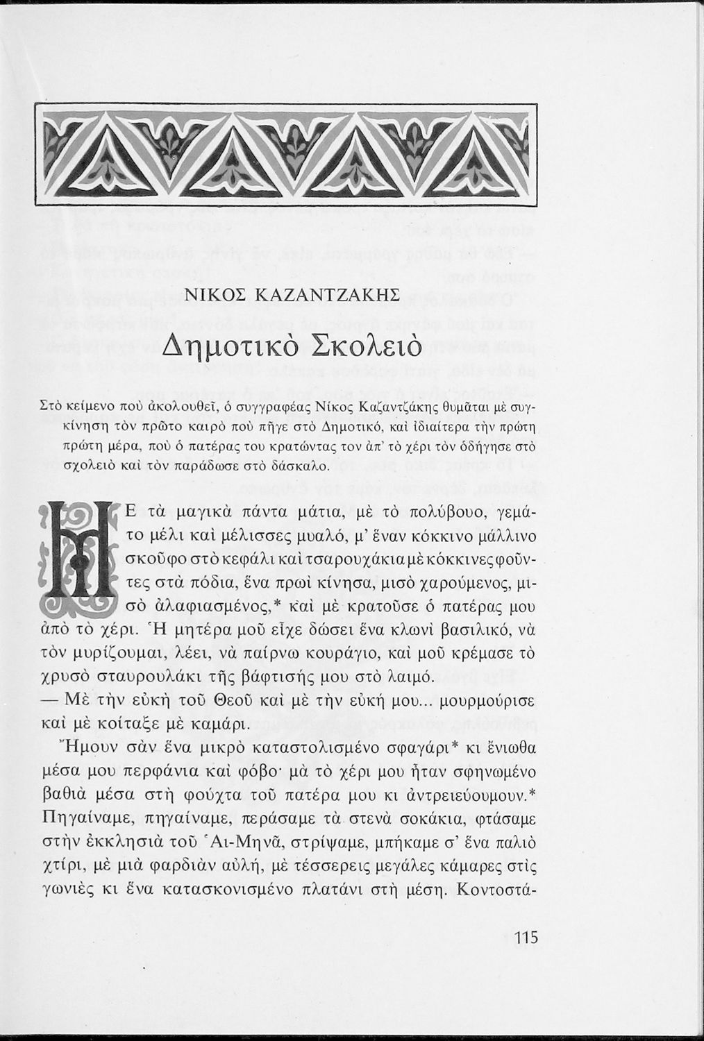 Αναγνωστικό για τις Ε΄ και ΣΤ΄ Δημοτικού που αποτελείται από πεζά και ποιήματα Ελλήνων συγγραφέων εμπνευσμένα από την καθημερινότητα των παιδιών και των οικογενειών τους, την ελληνική ιστορία, τις οικογενειακές στιγμές και εορτές, το παιχνίδι και την εθνική παράδοση, και δημοτικά και ακριτικά τραγούδια. Περιέχει και 5 κείμενα γραμμένα στην καθαρεύουσα με θέματα από τον κοινωνικό και εθνικό βίο.