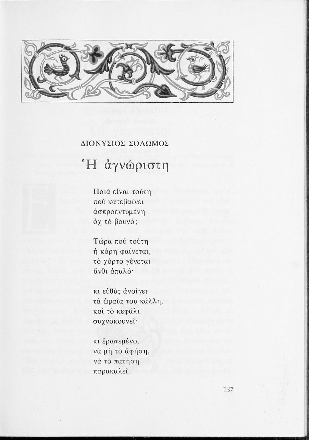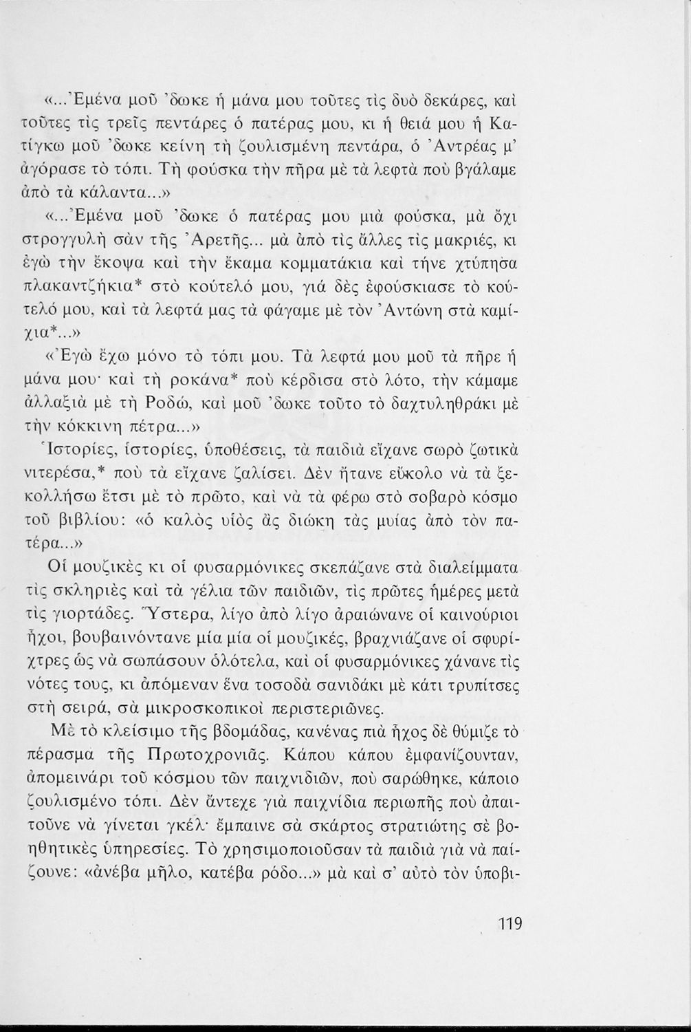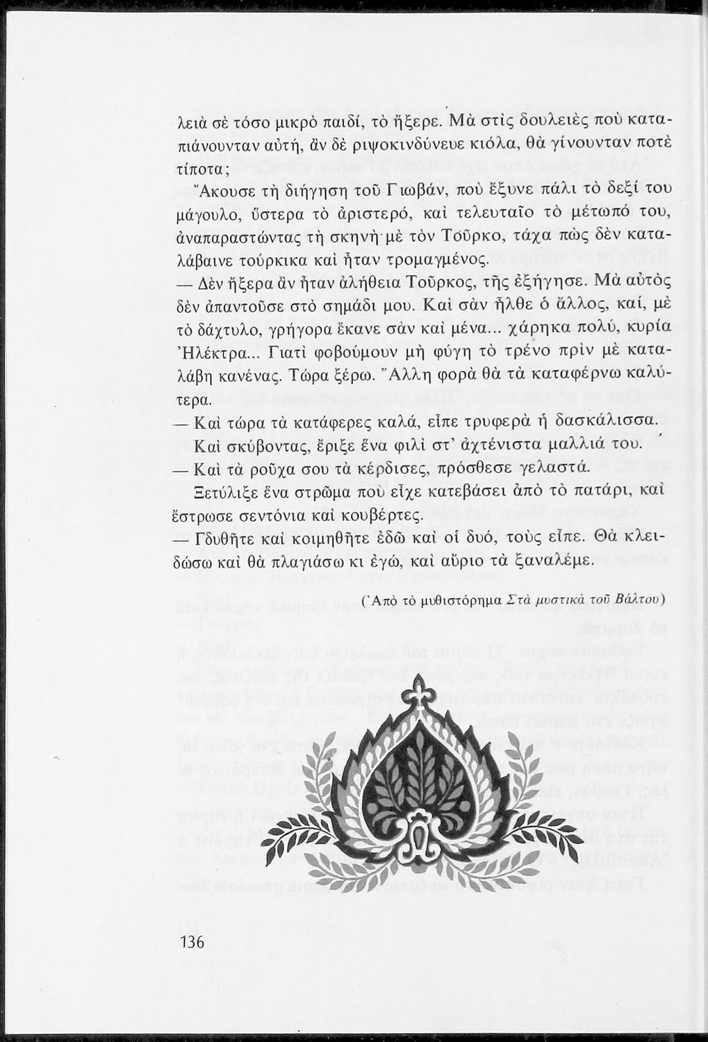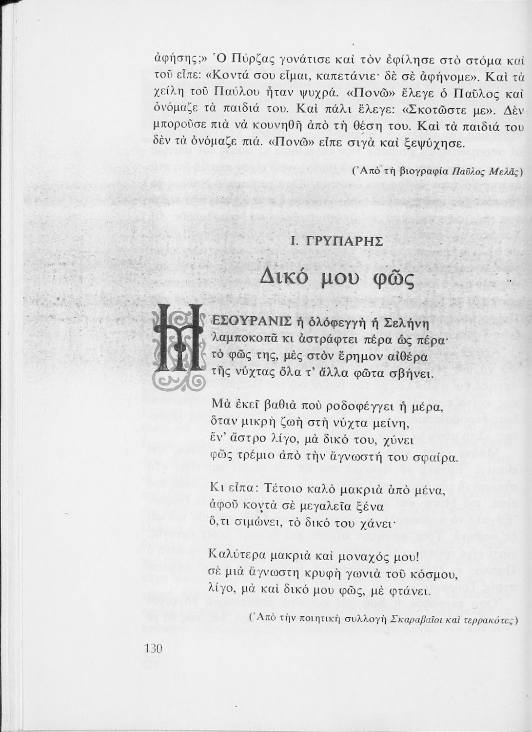 Αναγνωστικό για τις Ε΄ και ΣΤ΄ Δημοτικού που αποτελείται από πεζά και ποιήματα Ελλήνων συγγραφέων εμπνευσμένα από την καθημερινότητα των παιδιών και των οικογενειών τους, την ελληνική ιστορία, τις οικογενειακές στιγμές και εορτές, το παιχνίδι και την εθνική παράδοση, και δημοτικά και ακριτικά τραγούδια. Περιέχει και 5 κείμενα γραμμένα στην καθαρεύουσα με θέματα από τον κοινωνικό και εθνικό βίο.