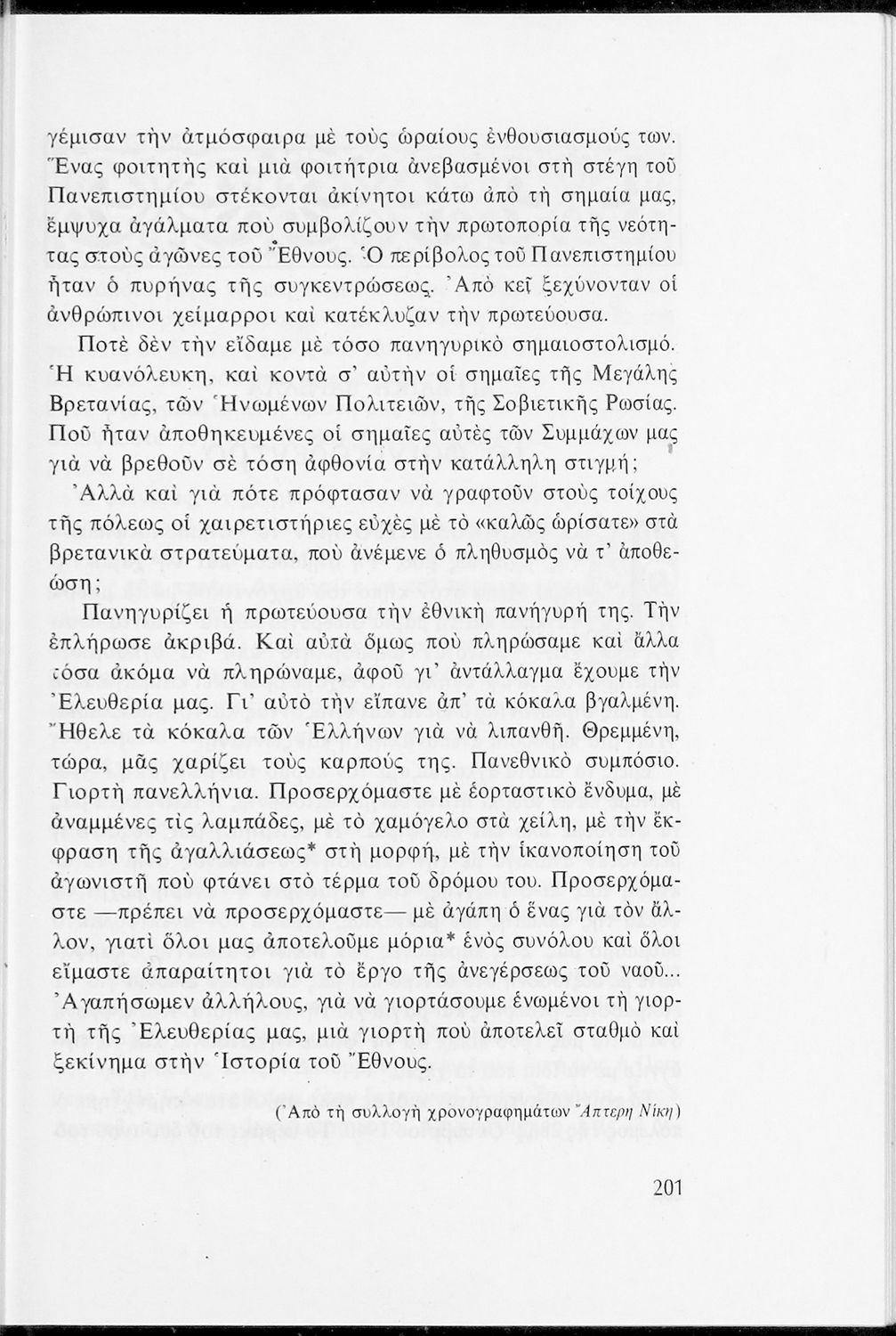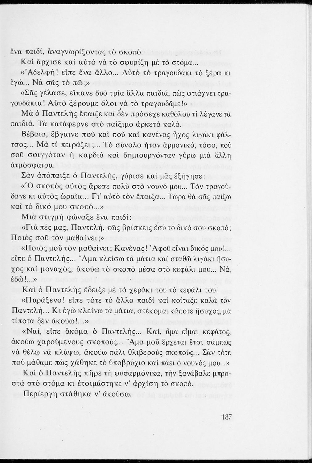 Αναγνωστικό για τις Ε΄ και ΣΤ΄ Δημοτικού που αποτελείται από πεζά και ποιήματα Ελλήνων συγγραφέων εμπνευσμένα από την καθημερινότητα των παιδιών και των οικογενειών τους, την ελληνική ιστορία, τις οικογενειακές στιγμές και εορτές, το παιχνίδι και την εθνική παράδοση, και δημοτικά και ακριτικά τραγούδια. Περιέχει και 5 κείμενα γραμμένα στην καθαρεύουσα με θέματα από τον κοινωνικό και εθνικό βίο.