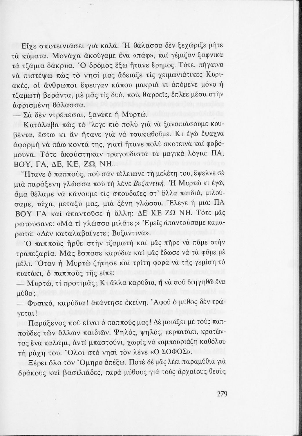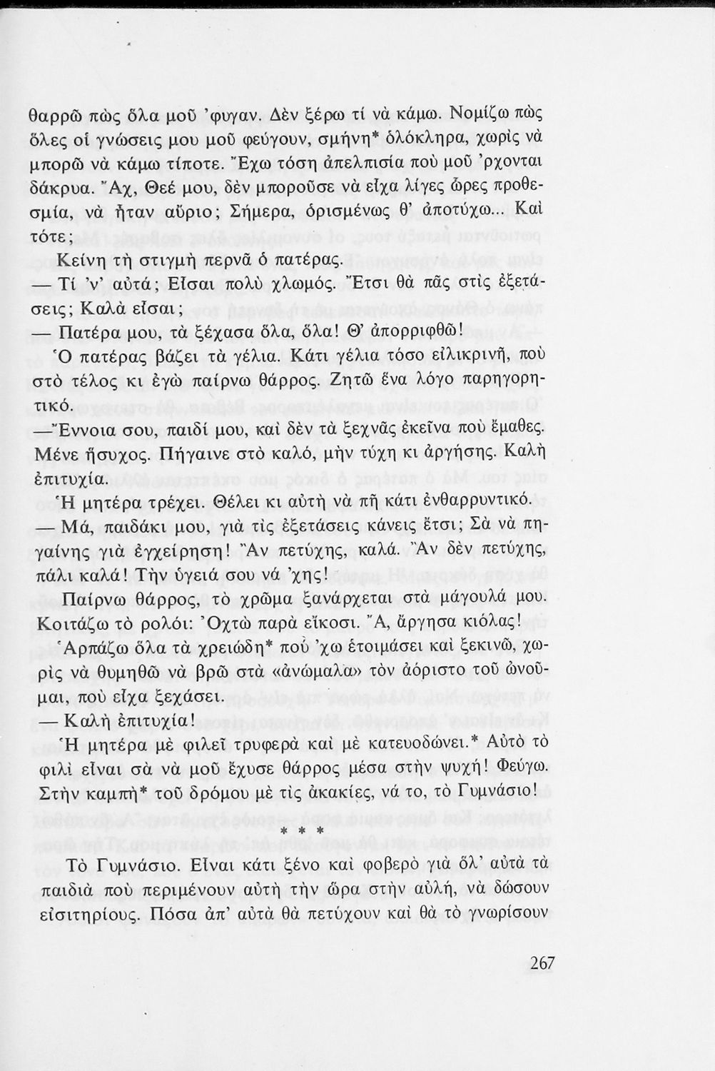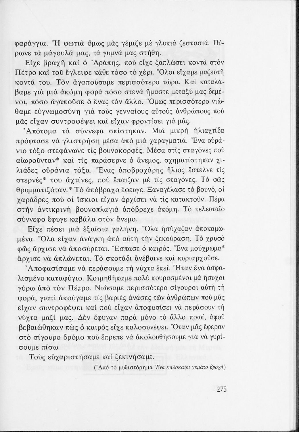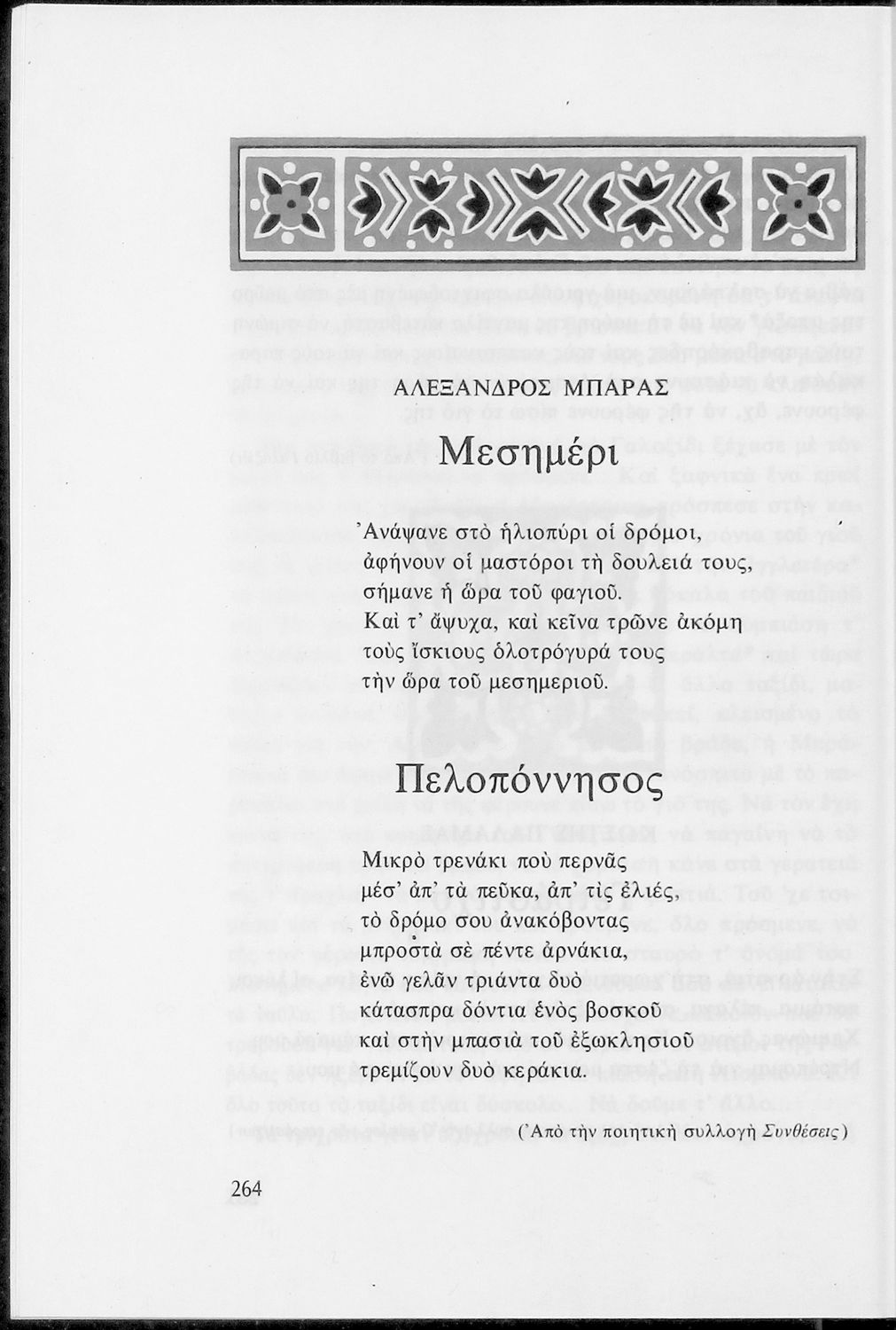 520 ## _aΑναγνωστικό για τις Ε΄ και ΣΤ΄ Δημοτικού που αποτελείται από πεζά και ποιήματα Ελλήνων συγγραφέων εμπνευσμένα από την καθημερινότητα των παιδιών και των οικογενειών τους, την ελληνική ιστορία, τις οικογενειακές στιγμές και εορτές, το παιχνίδι και την εθνική παράδοση, και δημοτικά και ακριτικά τραγούδια. Περιέχει και 5 κείμενα γραμμένα στην καθαρεύουσα με θέματα από τον κοινωνικό και εθνικό βίο.