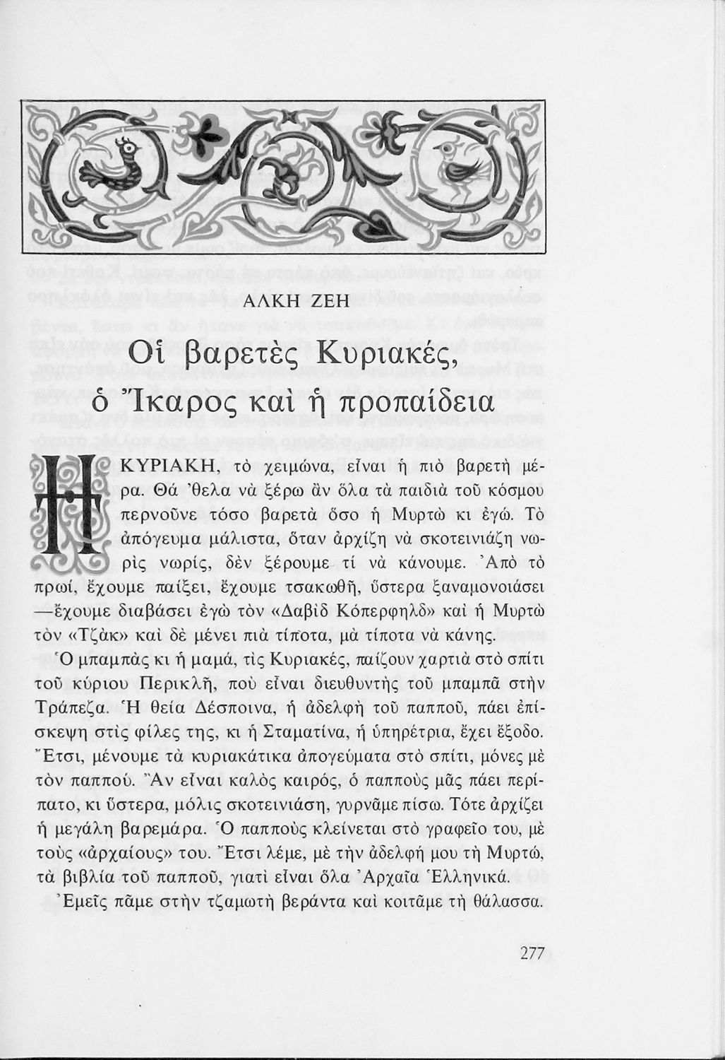 Αναγνωστικό για τις Ε΄ και ΣΤ΄ Δημοτικού που αποτελείται από πεζά και ποιήματα Ελλήνων συγγραφέων εμπνευσμένα από την καθημερινότητα των παιδιών και των οικογενειών τους, την ελληνική ιστορία, τις οικογενειακές στιγμές και εορτές, το παιχνίδι και την εθνική παράδοση, και δημοτικά και ακριτικά τραγούδια. Περιέχει και 5 κείμενα γραμμένα στην καθαρεύουσα με θέματα από τον κοινωνικό και εθνικό βίο.