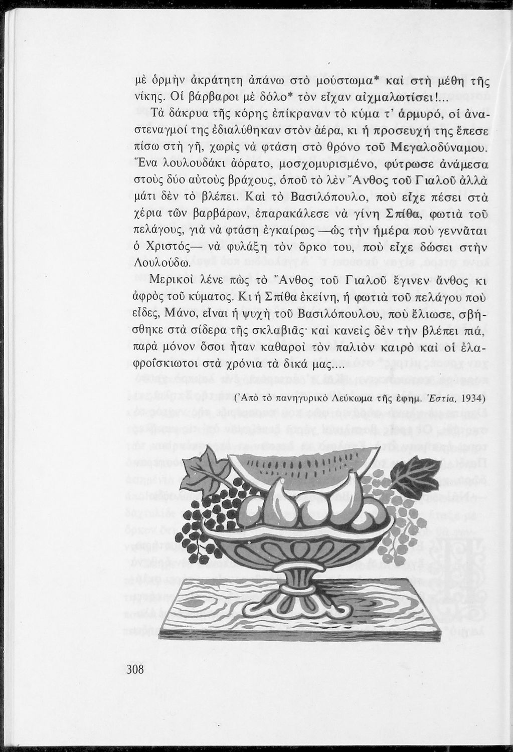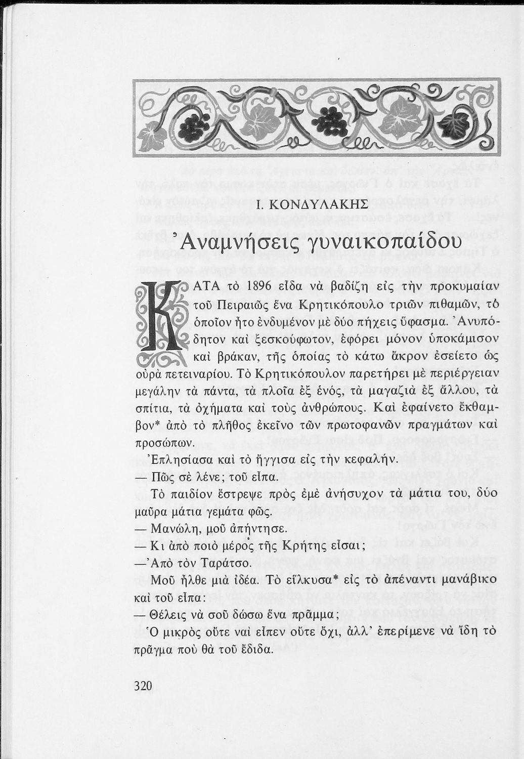 Αναγνωστικό για τις Ε΄ και ΣΤ΄ Δημοτικού που αποτελείται από πεζά και ποιήματα Ελλήνων συγγραφέων εμπνευσμένα από την καθημερινότητα των παιδιών και των οικογενειών τους, την ελληνική ιστορία, τις οικογενειακές στιγμές και εορτές, το παιχνίδι και την εθνική παράδοση, και δημοτικά και ακριτικά τραγούδια. Περιέχει και 5 κείμενα γραμμένα στην καθαρεύουσα με θέματα από τον κοινωνικό και εθνικό βίο.