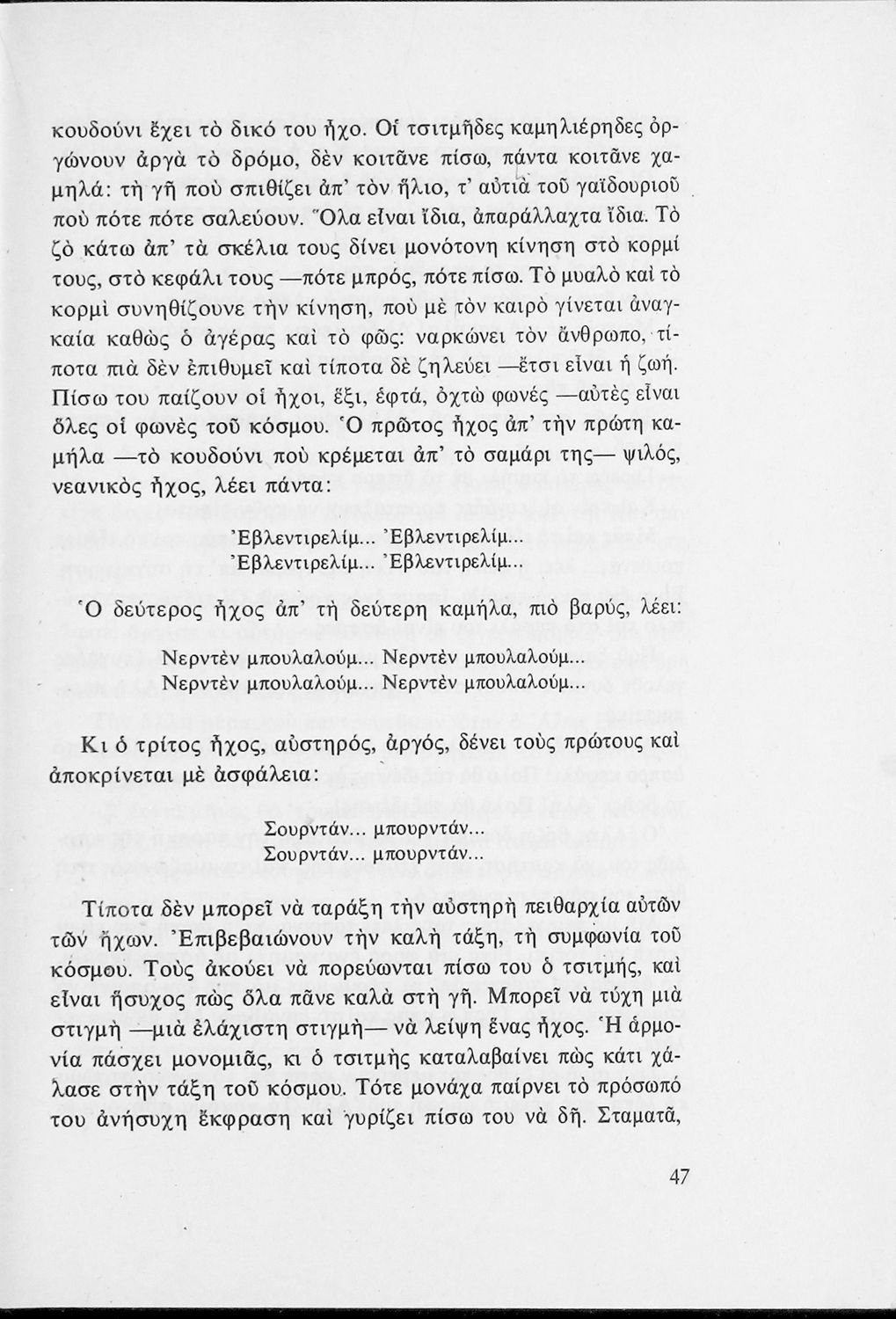 LDR 01980 2200229 4500 035 ## _a05-00092 040 ## _aΕργαστήρι Ιστορίας Ν.Ε. Εκπαίδευσης, Πανεπιστήμιο Ιωαννίνων 041 ## _ael 100 ## _aΜιχ. Δ. Στασινόπουλος _aΓιώργος Π. Σαββίδης _aΑριστείδης Βουγιούκας _aΑλέξης Δημαράς _aΚαλή Δοξιάδη _aΓιώργος Ιωάννου _aΛίνα Κάσδαγλη _aΚαλλιόπη Μουστάκα 110 ## _a092 245 0# _aΑνθολόγιο για τα παιδιά του Δημοτικού. Μέρος τρίτο 250 ## _a1η Έκδοση 260 ## _aΑθήνα _bΟργανισμός Εκδόσεως Διδακτικών Βιβλίων _c1975 300 ## _a347 _bΕξώφυλλο (έγχρωμο), Σκίτσα (έγχρωμα) 520 ## _aΑναγνωστικό για τις Ε΄ και ΣΤ΄ Δημοτικού που αποτελείται από πεζά και ποιήματα Ελλήνων συγγραφέων εμπνευσμένα από την καθημερινότητα των παιδιών και των οικογενειών τους, την ελληνική ιστορία, τις οικογενειακές στιγμές και εορτές, το παιχνίδι και την εθνική παράδοση, και δημοτικά και ακριτικά τραγούδια. Περιέχει και 5 κείμενα γραμμένα στην καθαρεύουσα με θέματα από τον κοινωνικό και εθνικό βίο. 521 ## _aΕ' Δημοτικού / ΣΤ' Δημοτικού 522 ## _aΕλλάδα 546 ## _aΔημοτική, Καθαρεύουσα 563 ## _aΜαλακό Εξώφυλλο 583 ## _a2618/7-6-1975 _c1975 650 #4 _aΔημοτικά τραγούδια _aΛαϊκοί μύθοι _aΞενόπουλος _aΣολωμός 700 ## _aΑγ. Αστεριάδης