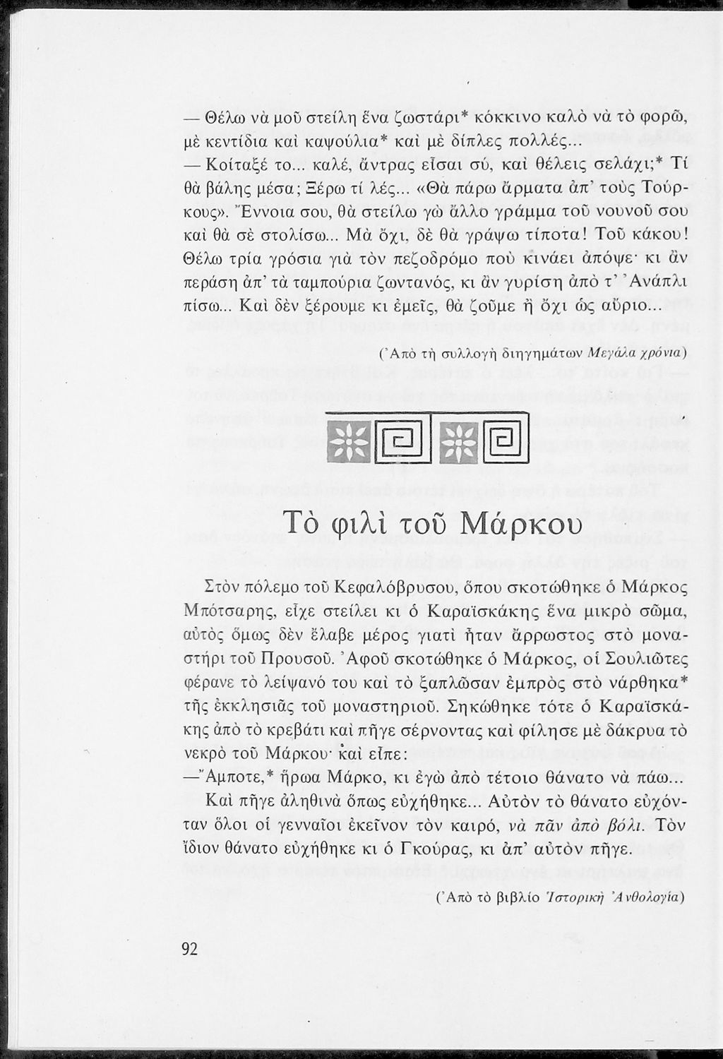 LDR 01980 2200229 4500 035 ## _a05-00092 040 ## _aΕργαστήρι Ιστορίας Ν.Ε. Εκπαίδευσης, Πανεπιστήμιο Ιωαννίνων 041 ## _ael 100 ## _aΜιχ. Δ. Στασινόπουλος _aΓιώργος Π. Σαββίδης _aΑριστείδης Βουγιούκας _aΑλέξης Δημαράς _aΚαλή Δοξιάδη _aΓιώργος Ιωάννου _aΛίνα Κάσδαγλη _aΚαλλιόπη Μουστάκα 110 ## _a092 245 0# _aΑνθολόγιο για τα παιδιά του Δημοτικού. Μέρος τρίτο 250 ## _a1η Έκδοση 260 ## _aΑθήνα _bΟργανισμός Εκδόσεως Διδακτικών Βιβλίων _c1975 300 ## _a347 _bΕξώφυλλο (έγχρωμο), Σκίτσα (έγχρωμα) 520 ## _aΑναγνωστικό για τις Ε΄ και ΣΤ΄ Δημοτικού που αποτελείται από πεζά και ποιήματα Ελλήνων συγγραφέων εμπνευσμένα από την καθημερινότητα των παιδιών και των οικογενειών τους, την ελληνική ιστορία, τις οικογενειακές στιγμές και εορτές, το παιχνίδι και την εθνική παράδοση, και δημοτικά και ακριτικά τραγούδια. Περιέχει και 5 κείμενα γραμμένα στην καθαρεύουσα με θέματα από τον κοινωνικό και εθνικό βίο. 521 ## _aΕ' Δημοτικού / ΣΤ' Δημοτικού 522 ## _aΕλλάδα 546 ## _aΔημοτική, Καθαρεύουσα 563 ## _aΜαλακό Εξώφυλλο 583 ## _a2618/7-6-1975 _c1975 650 #4 _aΔημοτικά τραγούδια _aΛαϊκοί μύθοι _aΞενόπουλος _aΣολωμός 700 ## _aΑγ. Αστεριάδης