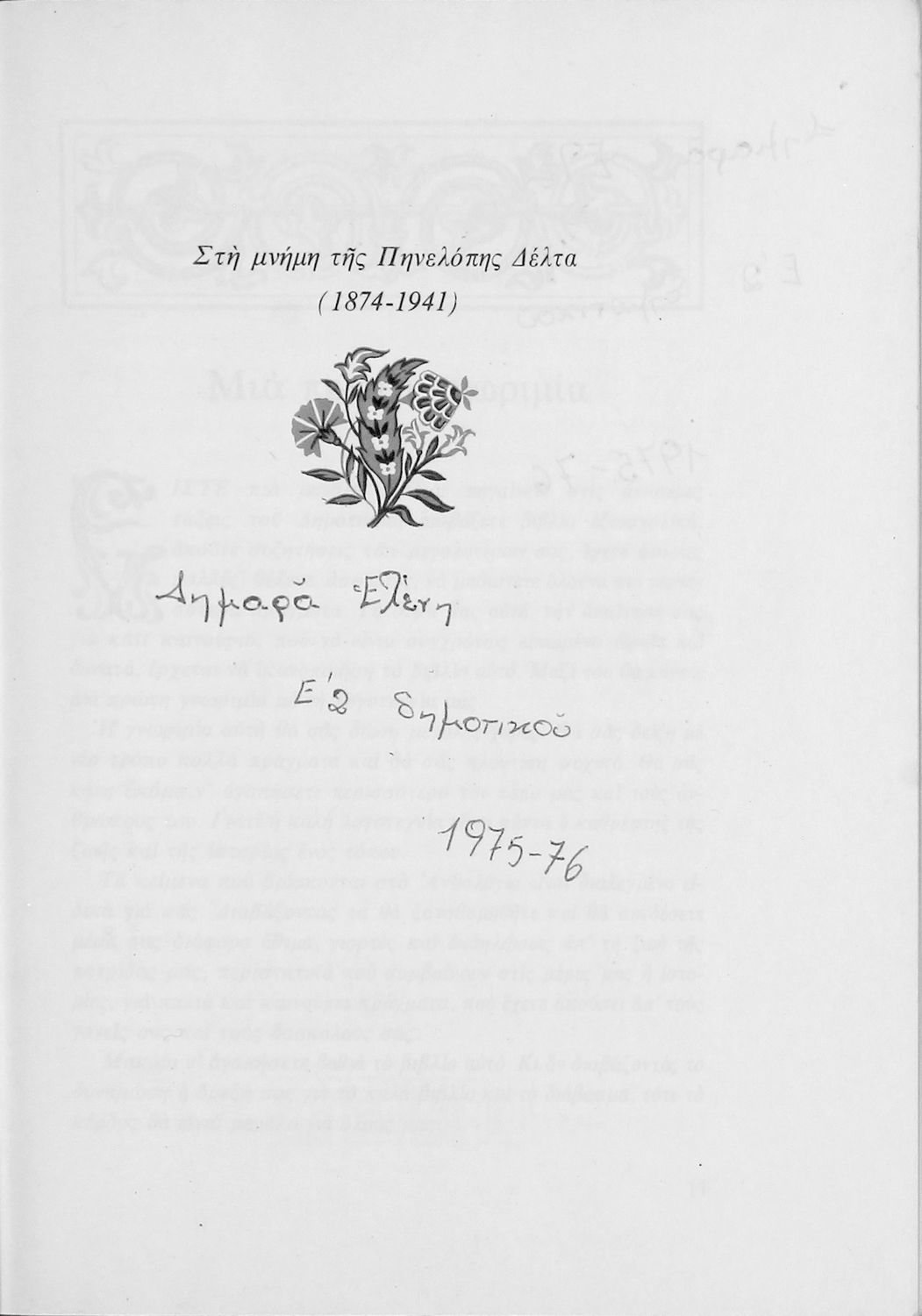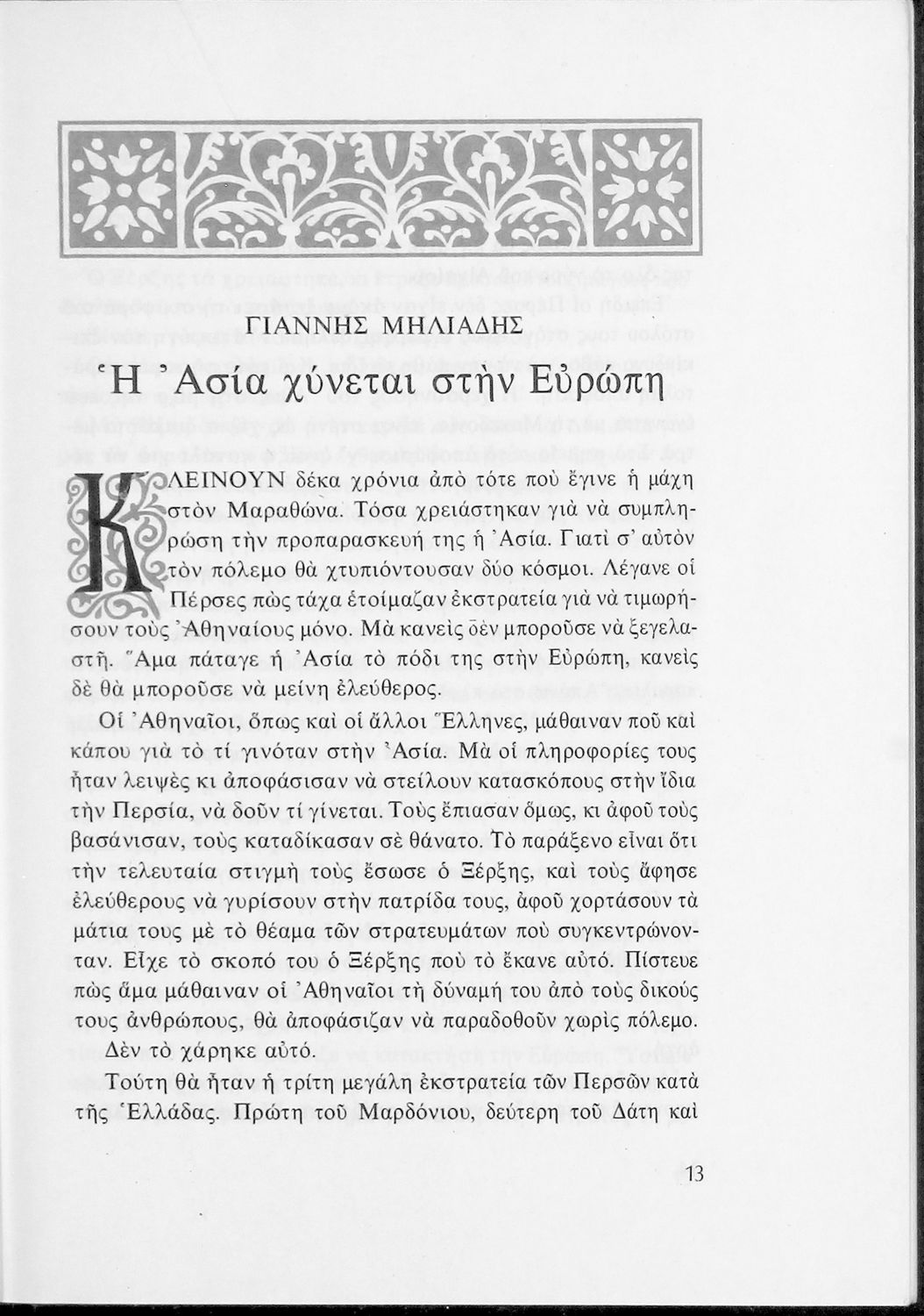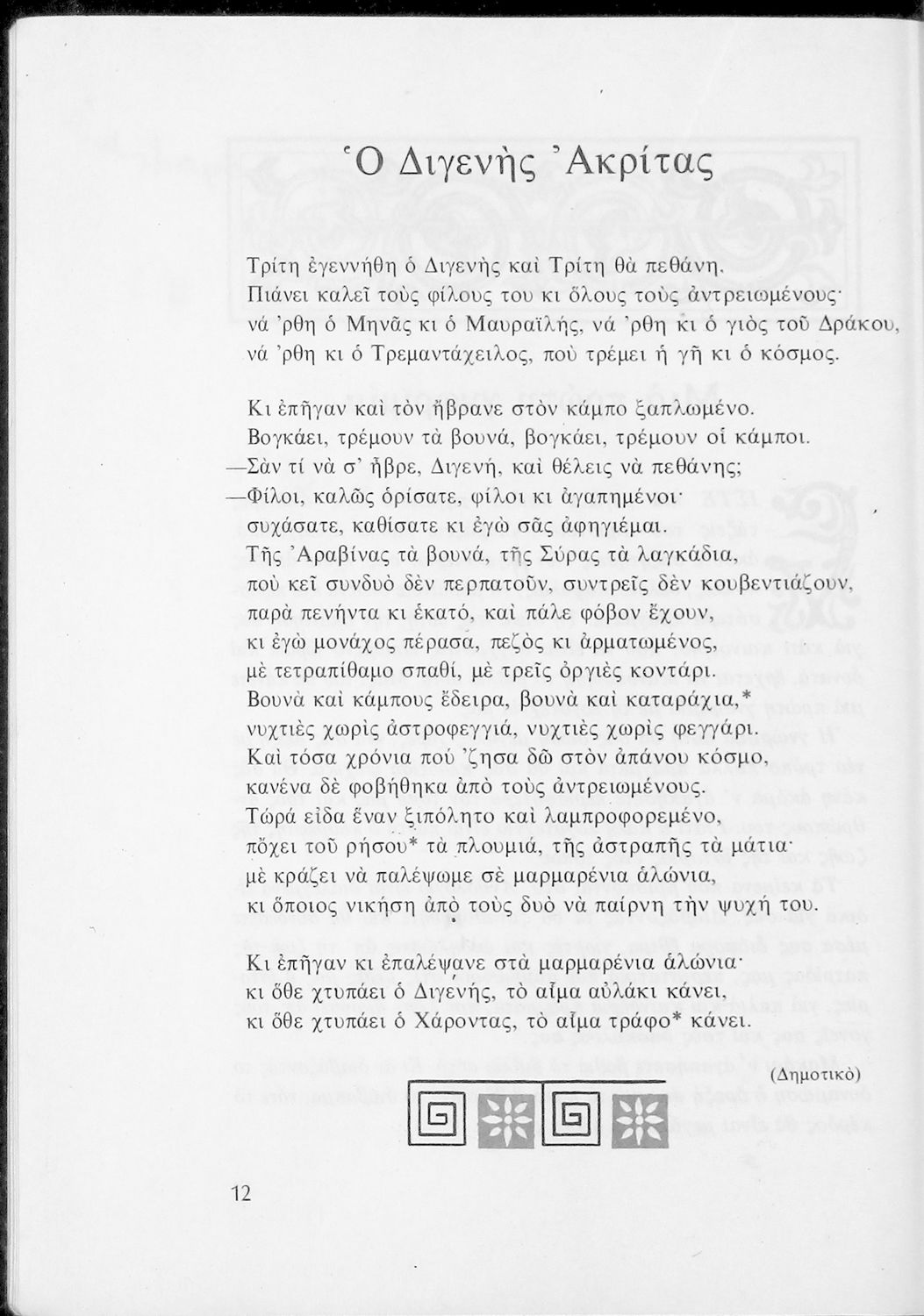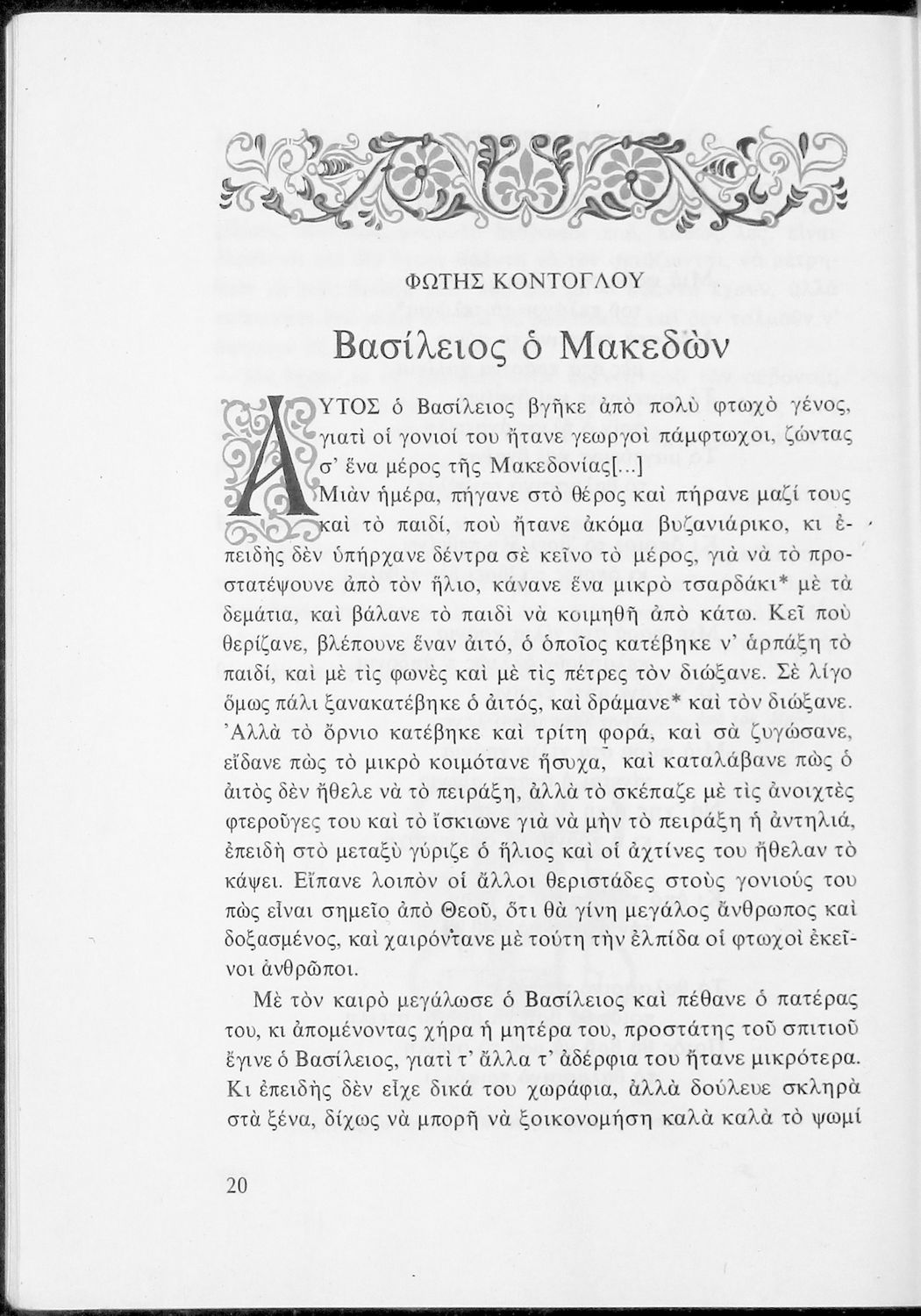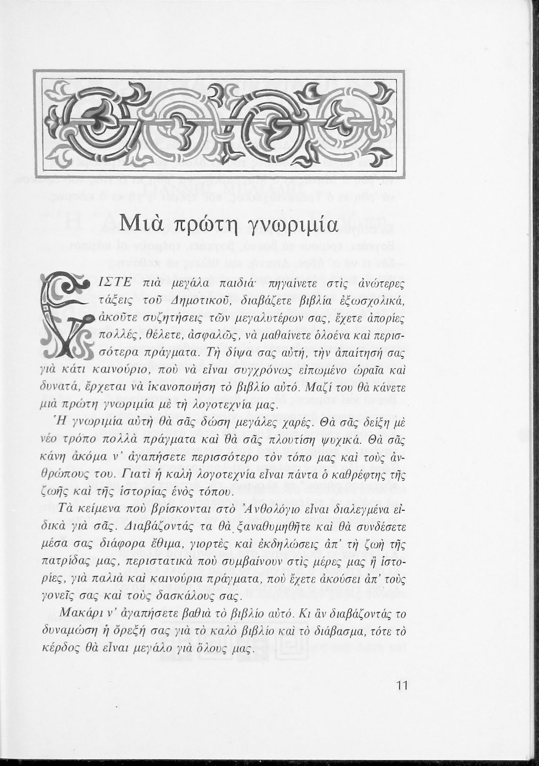 Αναγνωστικό για τις Ε΄ και ΣΤ΄ Δημοτικού που αποτελείται από πεζά και ποιήματα Ελλήνων συγγραφέων εμπνευσμένα από την καθημερινότητα των παιδιών και των οικογενειών τους, την ελληνική ιστορία, τις οικογενειακές στιγμές και εορτές, το παιχνίδι και την εθνική παράδοση, και δημοτικά και ακριτικά τραγούδια. Περιέχει και 5 κείμενα γραμμένα στην καθαρεύουσα με θέματα από τον κοινωνικό και εθνικό βίο.