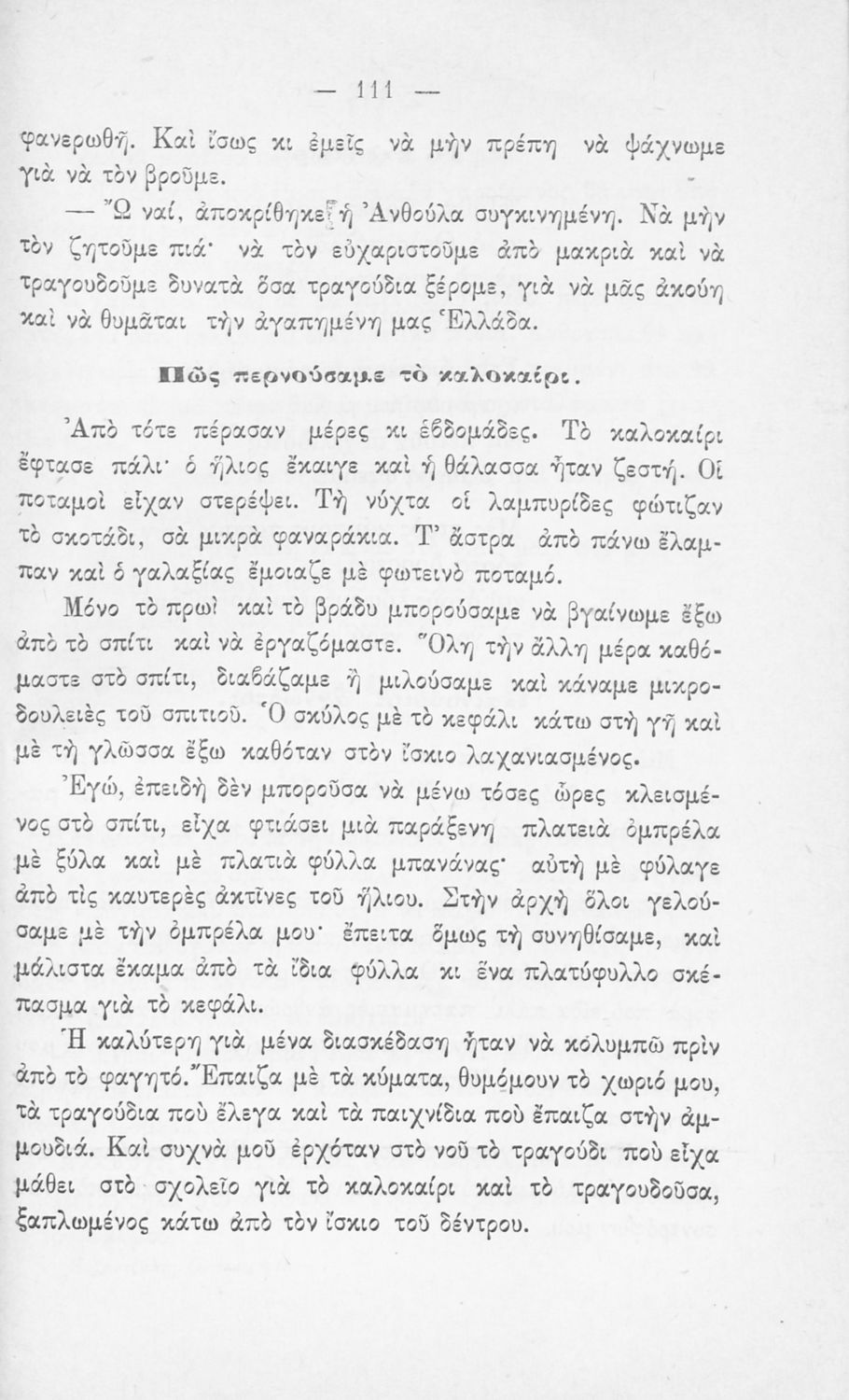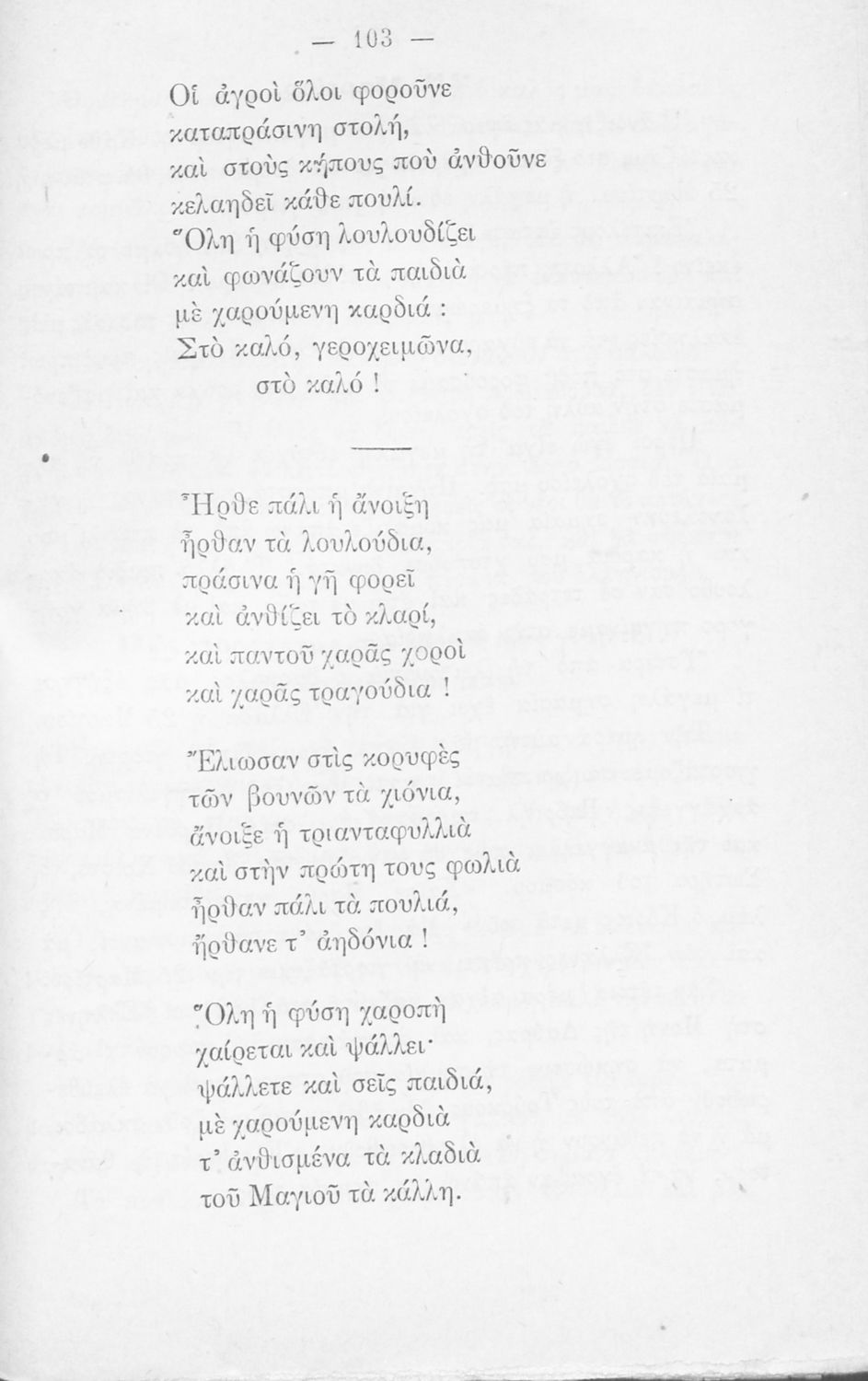 Αναγνωστικό Β' Δημοτικού που είναι χωρισμένο σύμφωνα με τις εποχές του χρόνου και περιλαμβάνει κείμενα ηθοποιητικού περιεχομένου εμπνευσμένα από τη θρησκευτική, εθνική, κοινωνική και οικογενειακή ζωή.