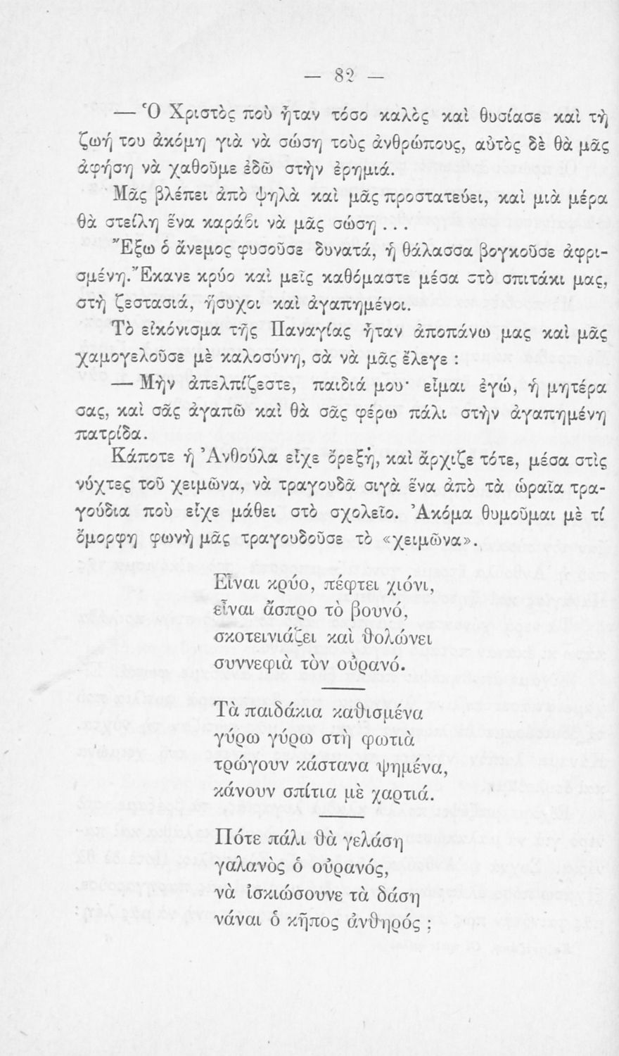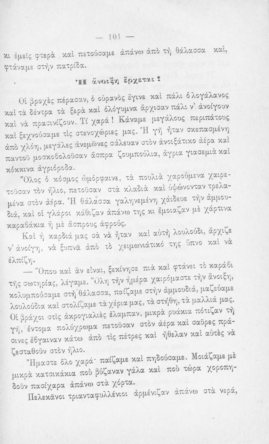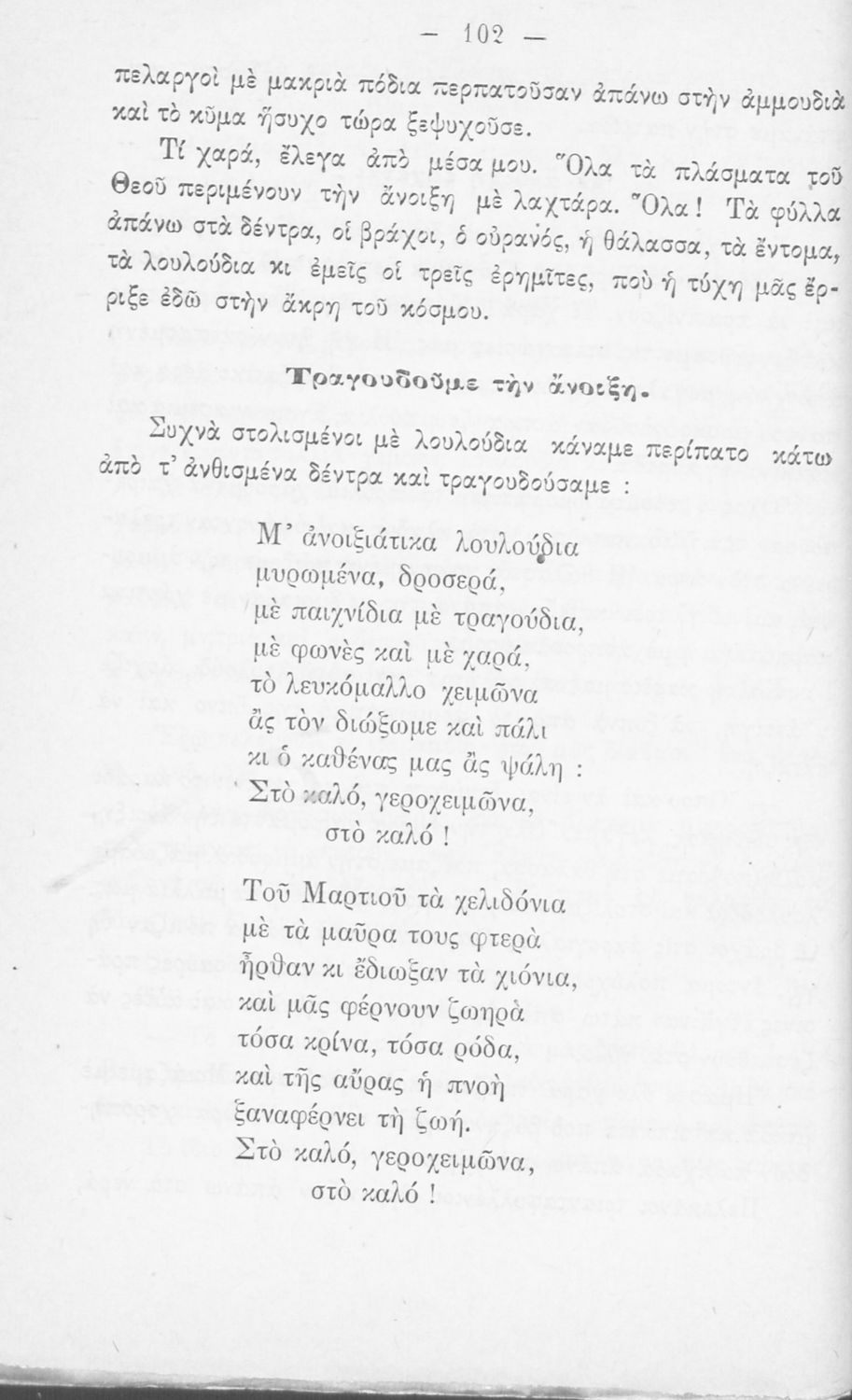 Αναγνωστικό Β' Δημοτικού που είναι χωρισμένο σύμφωνα με τις εποχές του χρόνου και περιλαμβάνει κείμενα ηθοποιητικού περιεχομένου εμπνευσμένα από τη θρησκευτική, εθνική, κοινωνική και οικογενειακή ζωή.