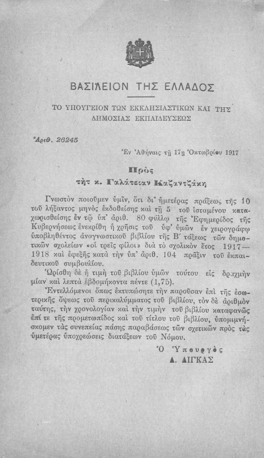 Συγγραφέας: Γαλάτεια Καζαντζάκη