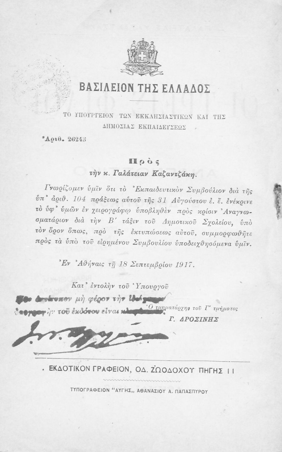 Υπουργική απόφαση / Σύμβαση: 26245/17-10-1917