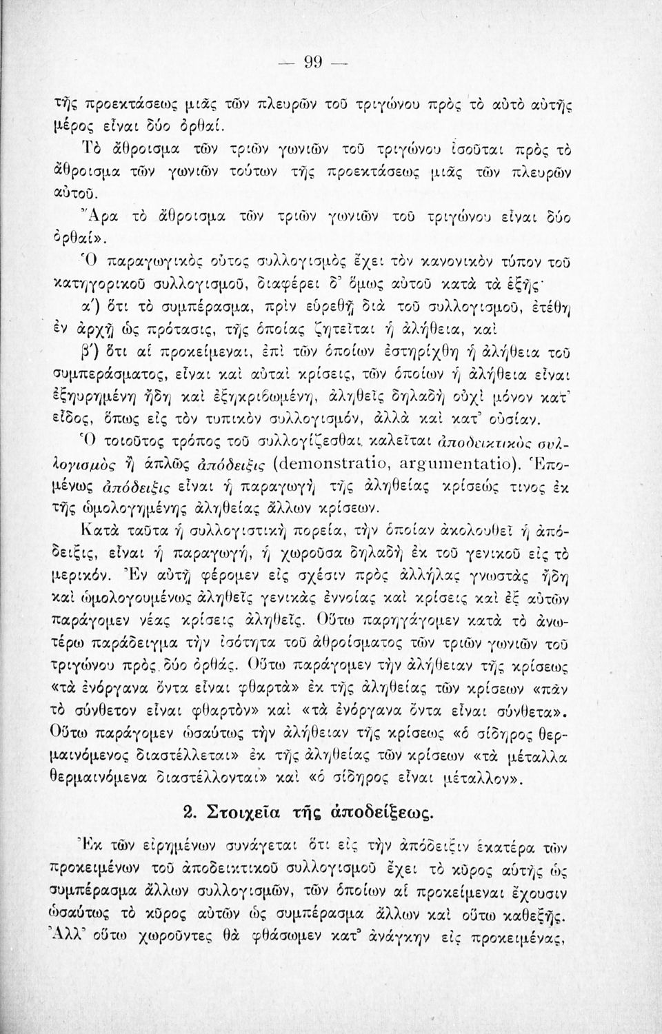 Βαθμίδα εκπαίδευσης: Δευτεροβάθμια Τάξη: Γυμνάσιο Μάθημα: Λογική Γλώσσα: Καθαρεύουσα Παρουσίαση περιεχομένου: Σχολικό εγχειρίδιο Λογικής Γυμνασίου που είναι χωρισμένο σε στοιχειολογία ή τυπική λογική και μεθοδολογία. |