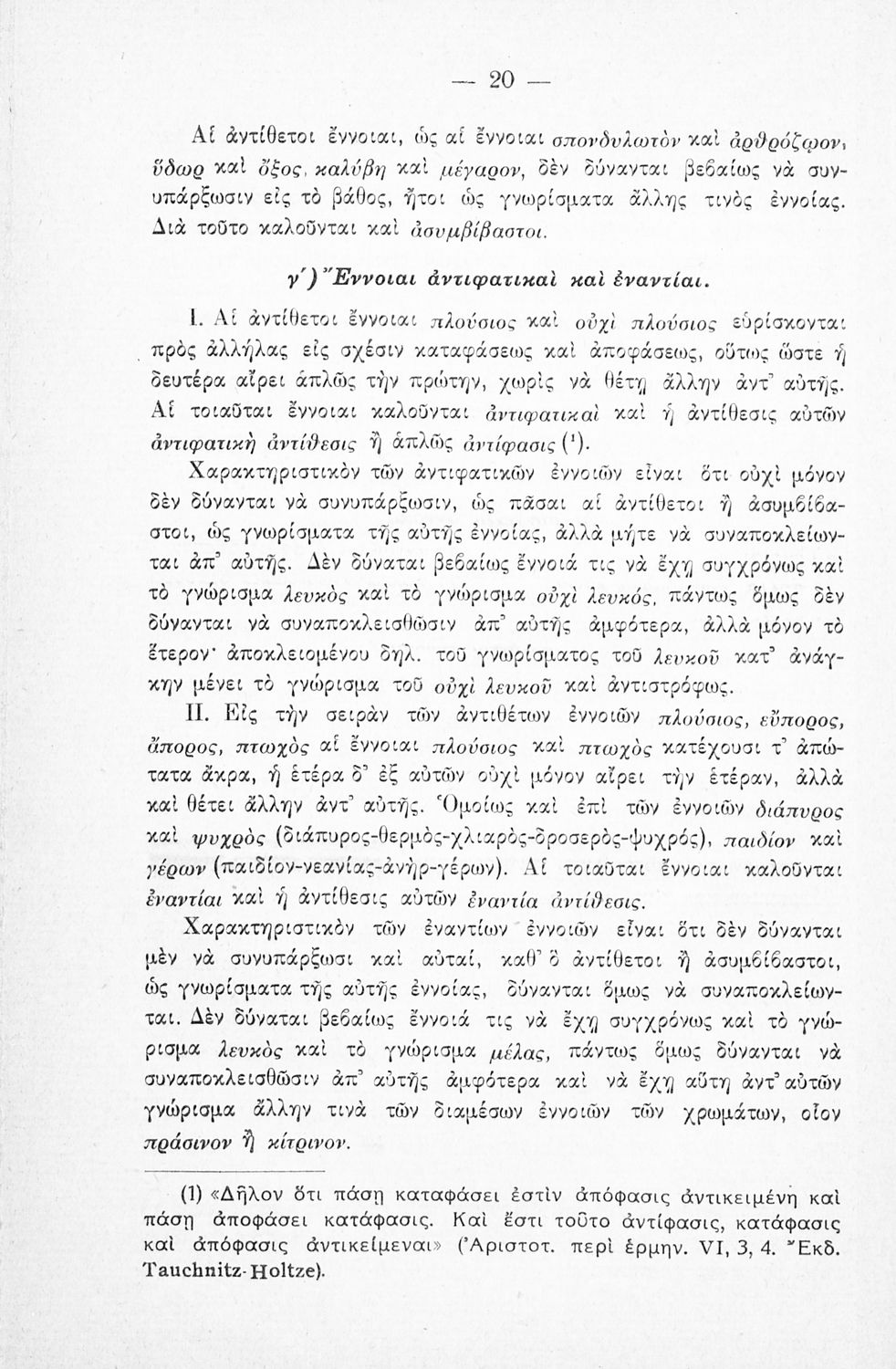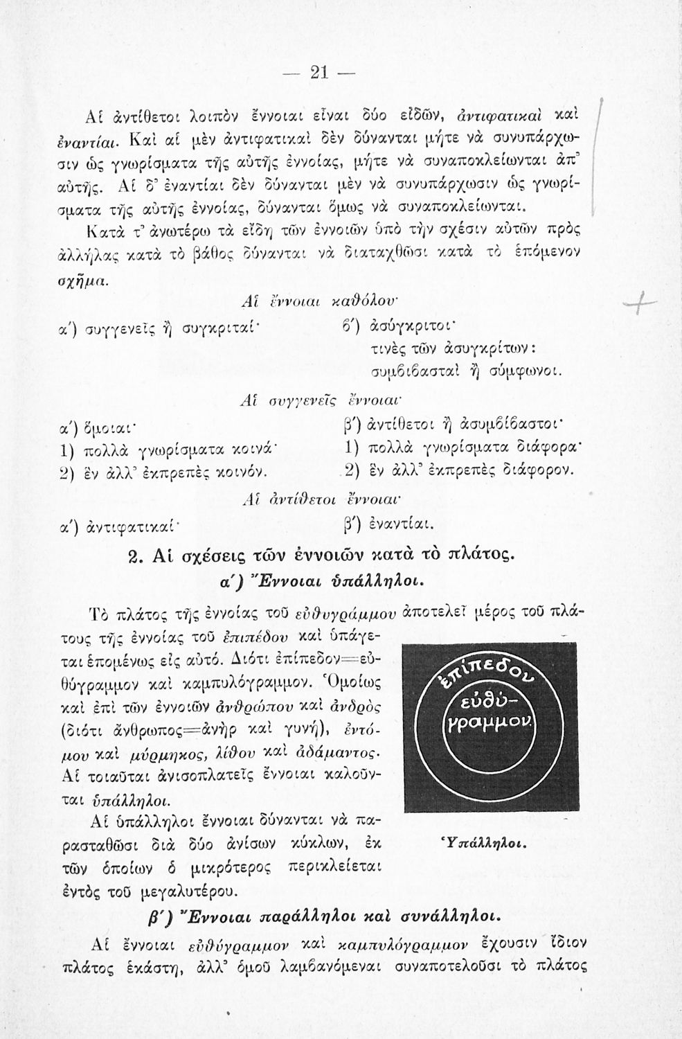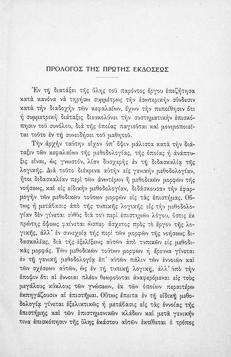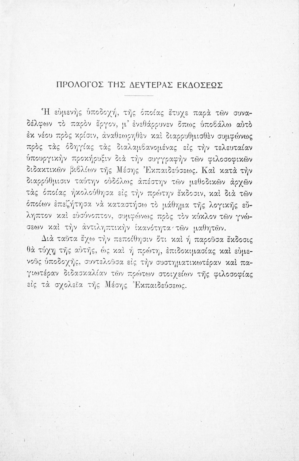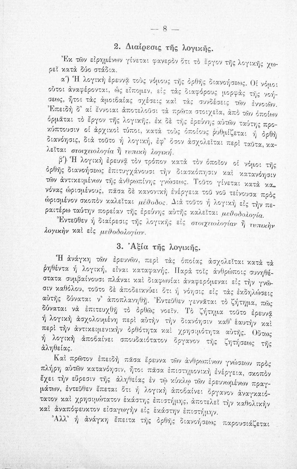 Βαθμίδα εκπαίδευσης: Δευτεροβάθμια Τάξη: Γυμνάσιο Μάθημα: Λογική Γλώσσα: Καθαρεύουσα Παρουσίαση περιεχομένου: Σχολικό εγχειρίδιο Λογικής Γυμνασίου που είναι χωρισμένο σε στοιχειολογία ή τυπική λογική και μεθοδολογία. |