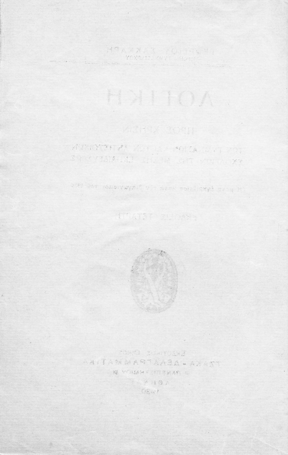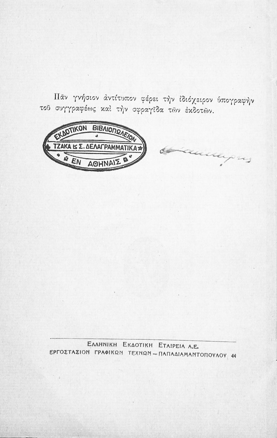 Εκδότης: Δημ. Ν. Τζάκας, Στεφ. Δελαγραμμάτικας Έτος έκδοσης: 1939 Τόπος έκδοσης: Αθήνα Έκδοση: 4η Υπουργική απόφαση / Σύμβαση: 37434/26-7-1930 Έτος έγκρισης: 1930 |