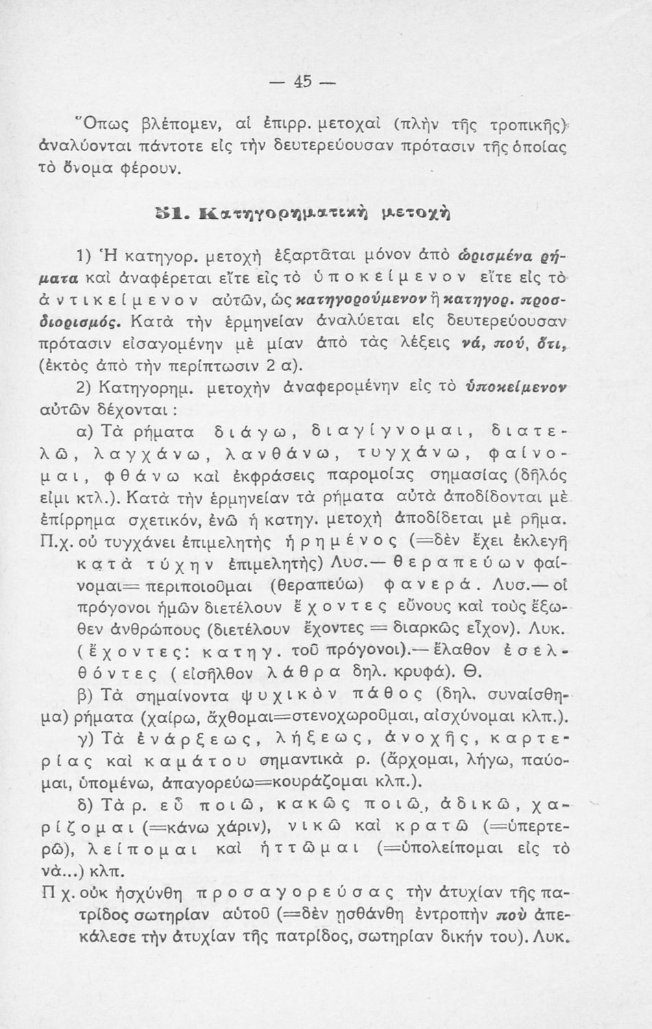 Μαθητικό βοήθημα Αρχαίων Ελληνικών Γυμνασίου που εξετάζει τα μέρη του λόγου και την σύνταξή τους.