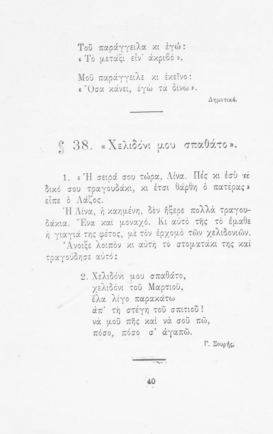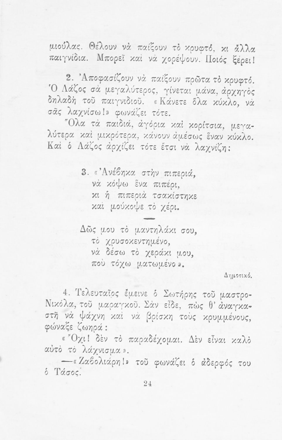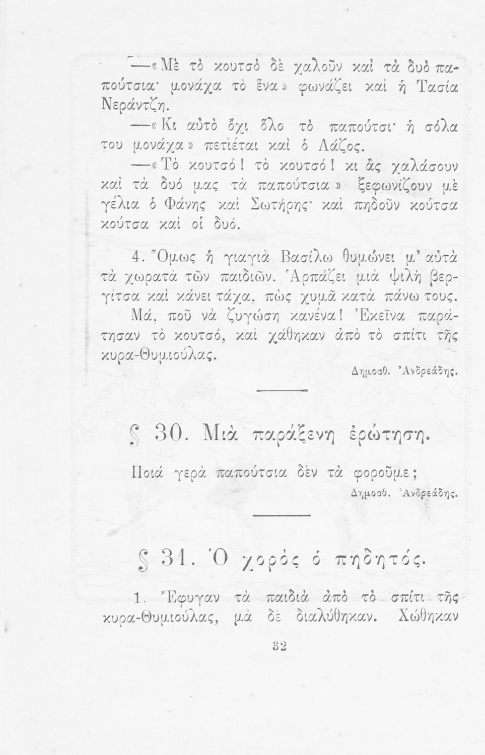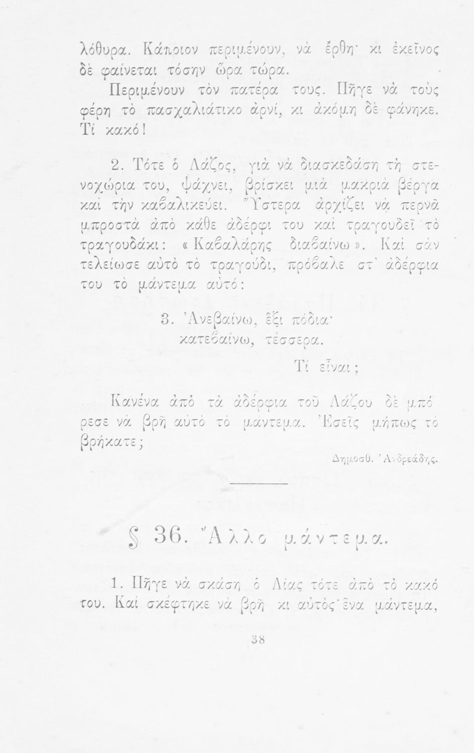 Αναγνωστικό [Α΄ Δημοτικού] που περιλαμβάνει ποιηματάκια και ιστοριούλες και αντλεί τη θεματολογία του από καθημερινά περιστατικά, την ελληνική ύπαιθρο και την ελληνική οικογένεια.
