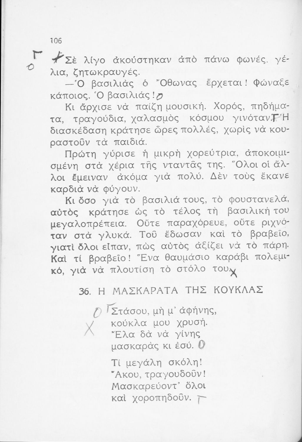 Παρουσίαση περιεχομένου: Αναγνωστικό Β΄ Δημοτικού που περιλαμβάνει κείμενα που βασίζονται στο τρίπτυχο του "Πατρίς-θρησκεία-οικογένεια". Αποτελεί ένα από τα τροποποιημένα και εγκεκριμένα μεταξικά αναγνωστικά βιβλία. Η πιο φανερή ανάδειξη του ιδεολογικού προτάγματος του μεταξικού καθεστώτος γίνεται με την προσθήκη του κειμένου "Νεολαία" που υμνεί την ΕΟΝ (Εθνική Οργάνωση Νεολαίας).