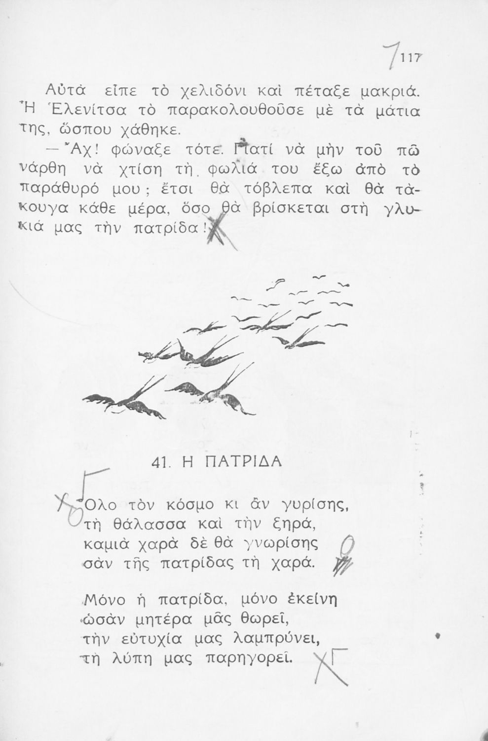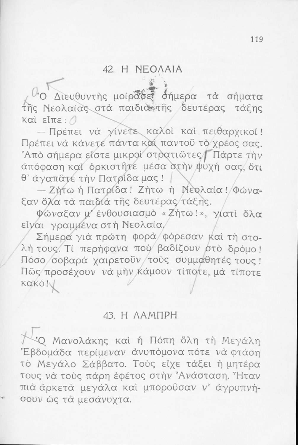 Αναγνωστικό Β΄ Δημοτικού που περιλαμβάνει κείμενα που βασίζονται στο τρίπτυχο του "Πατρίς-θρησκεία-οικογένεια". Αποτελεί ένα από τα τροποποιημένα και εγκεκριμένα μεταξικά αναγνωστικά βιβλία. Η πιο φανερή ανάδειξη του ιδεολογικού προτάγματος του μεταξικού καθεστώτος γίνεται με την προσθήκη του κειμένου "Νεολαία" που υμνεί την ΕΟΝ (Εθνική Οργάνωση Νεολαίας).