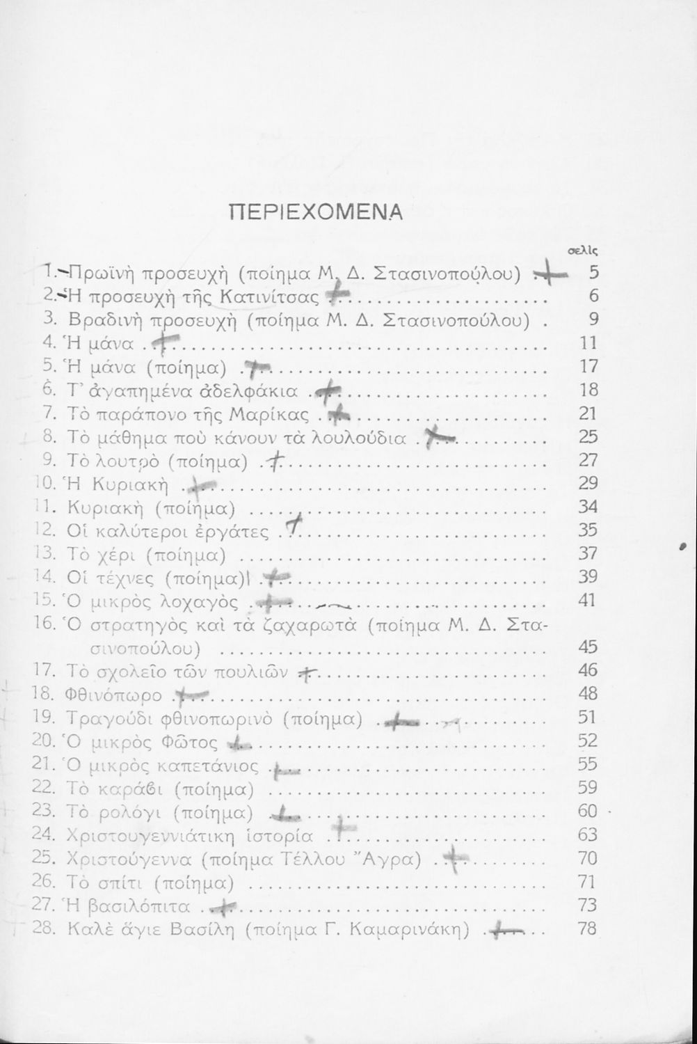Αναγνωστικό Γ΄ Δημοτικού που περιλαμβάνει ποιήματα και πεζά εμπνευσμένα από τη ζωή της υπαίθρου, την οικογενειακή και κοινωνική ζωή και το εθνικό παρελθόν. Αποτυπώνει τις ιδεολογικές προκείμενες του μεταξικού ...