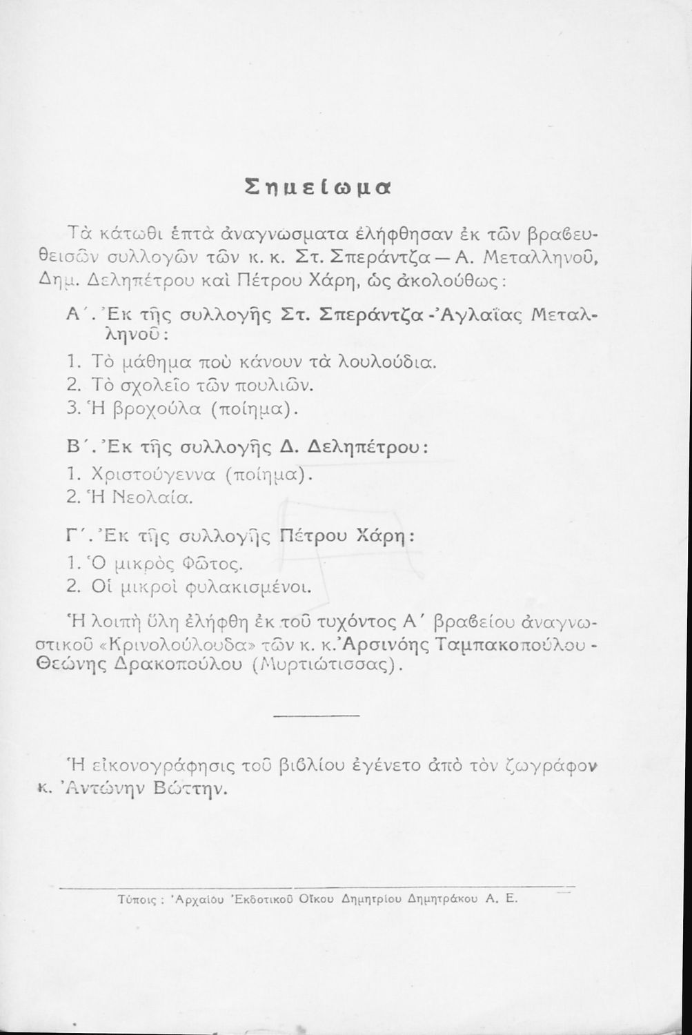 Αναγνωστικό Γ' Δημοτικού που περιέχει πεζά και ποιήματα εμπνευσμένα από τη θρησκευτική, εθνική, κοινωνική και ατομική ζωή, και την ελληνική φύση, ιστορία και μυθολογία.