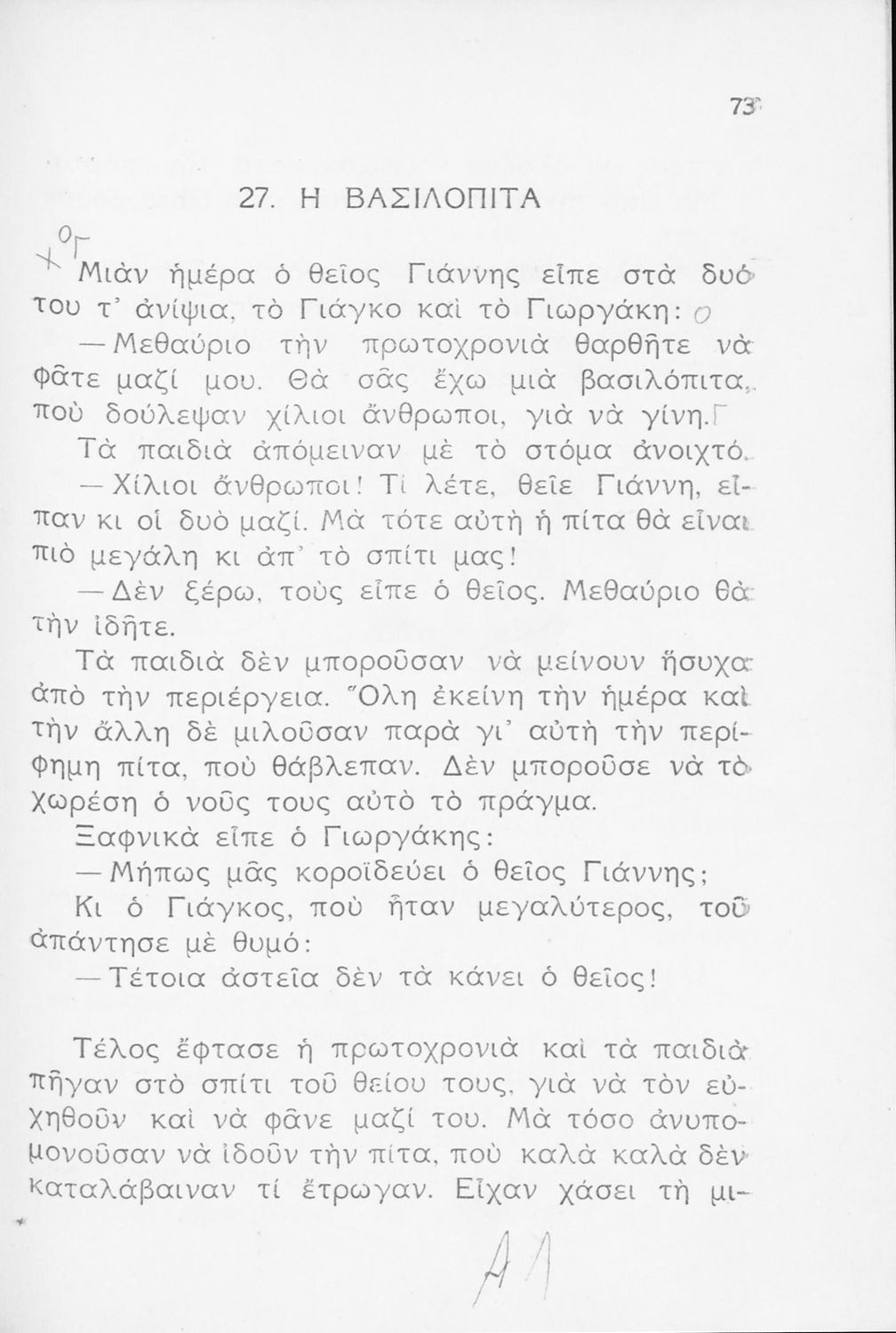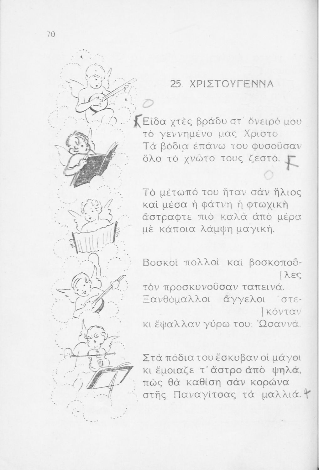 Αναγνωστικό Γ' Δημοτικού που περιέχει πεζά και ποιήματα εμπνευσμένα από τη θρησκευτική, εθνική, κοινωνική και ατομική ζωή, και την ελληνική φύση, ιστορία και μυθολογία.