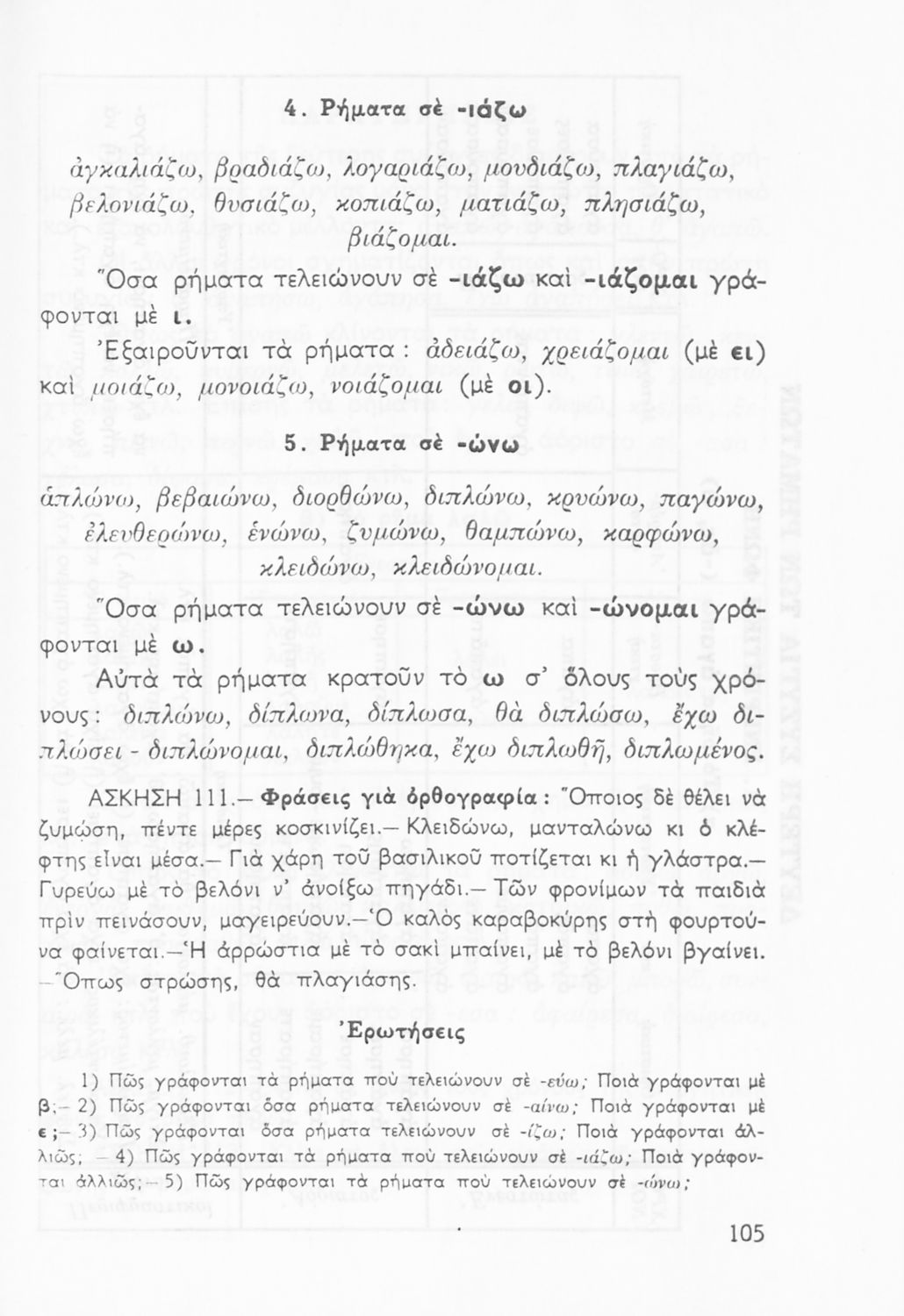 Σχολικό εγχειρίδιο Γλώσσας Γ΄ και Δ΄ Δημοτικού που περιλαμβάνει τους κανόνες γραμματικής και τη δομή της νέας ελληνικής και είναι χωρισμένο στο φωνητικό, τυπικό και παραγωγικό μέρος.