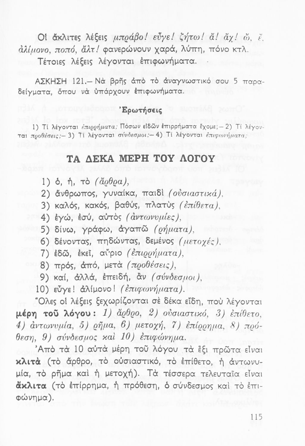 Σχολικό εγχειρίδιο Γ΄ και Δ΄ Δημοτικού που περιλαμβάνει τους κανόνες γραμματικής και τη δομή της νέας ελληνικής και είναι χωρισμένο στο φωνητικό, τυπικό και παραγωγικό μέρος.