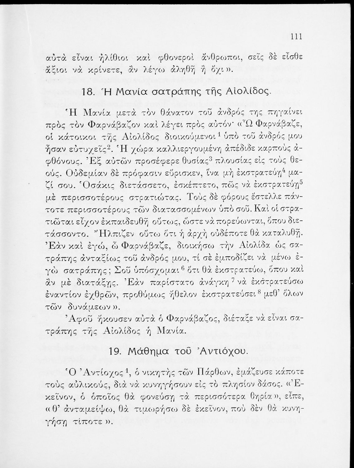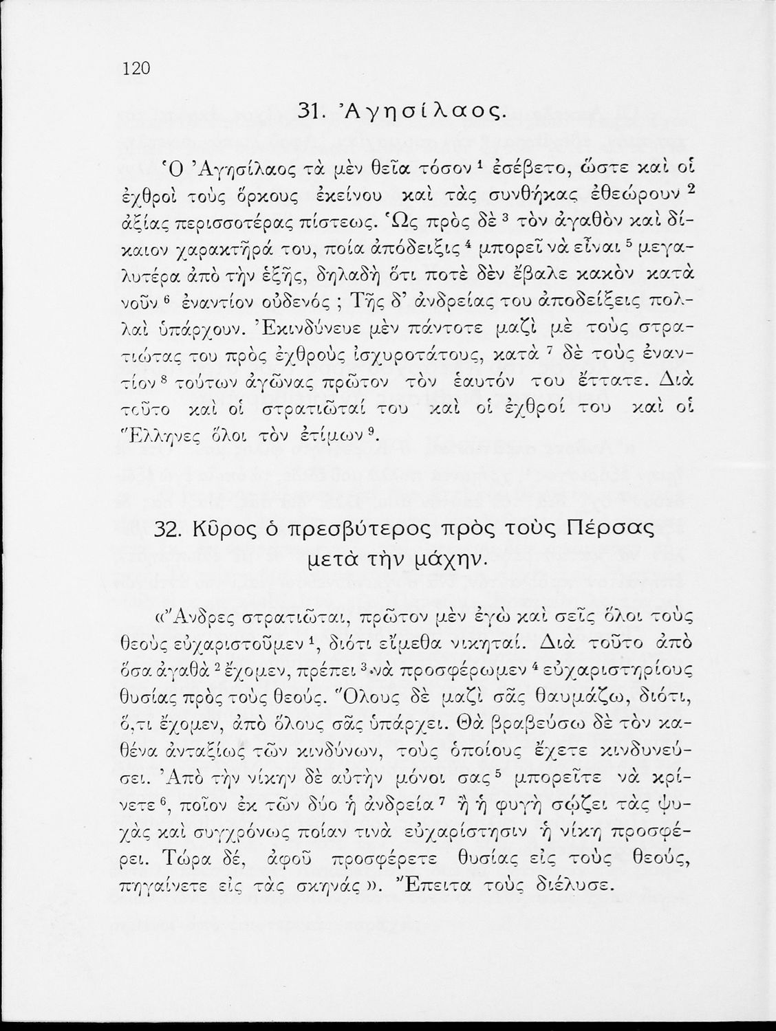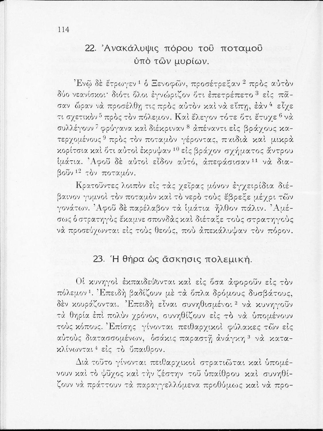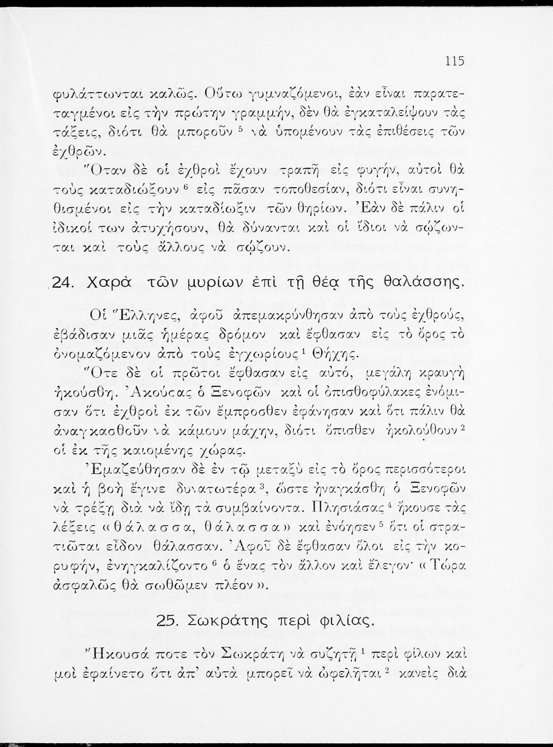 Σχολικό Εγχειρίδιο Αρχαίων Ελληνικών που περιλαμβάνει κείμενα προσαρμοσμένα στη διδασκαλία των γραμματικών και συντακτικών φαινομένων, και ερμηνευτικές και λεξιλογικές σημειώσεις.