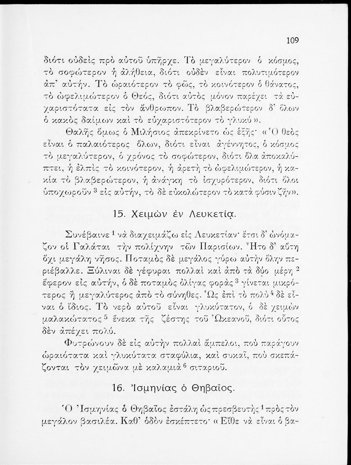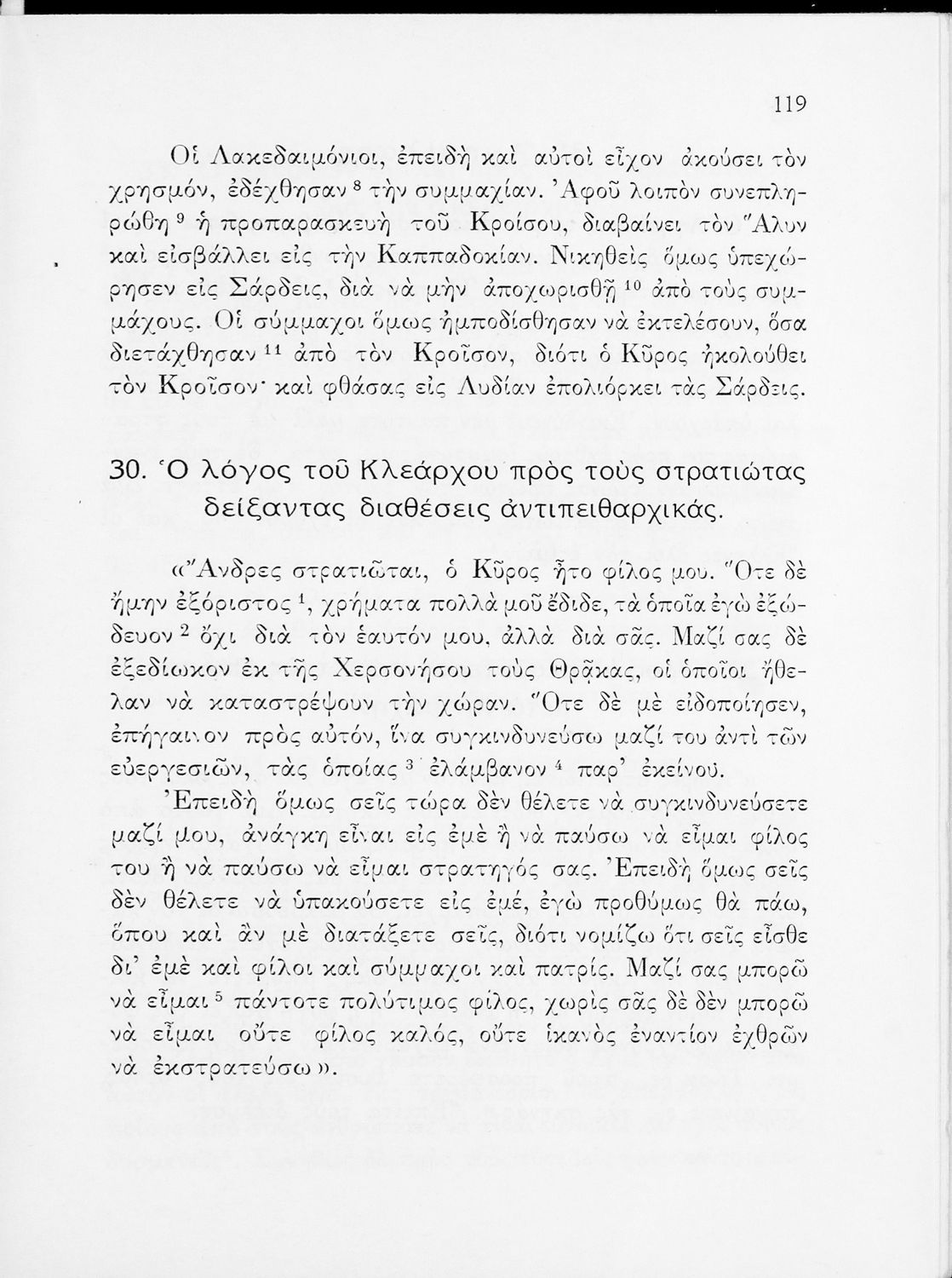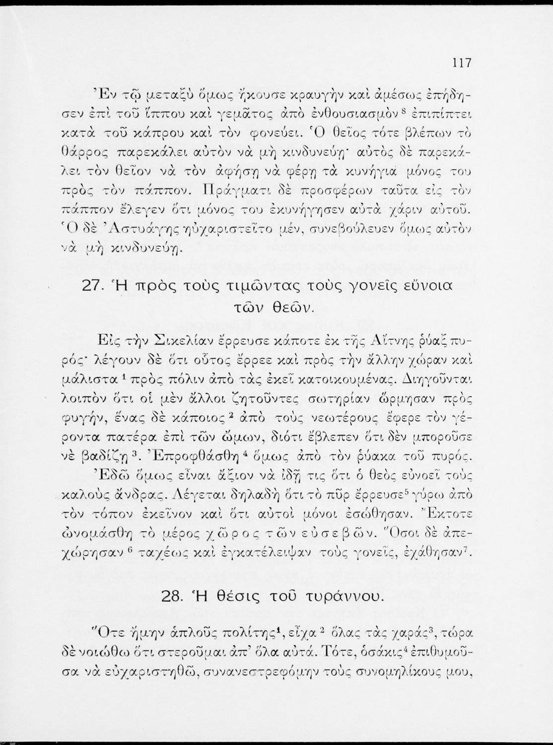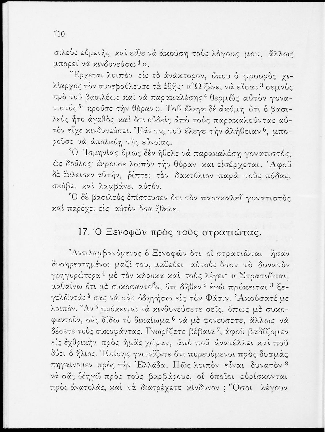 Σχολικό Εγχειρίδιο Αρχαίων Ελληνικών που περιλαμβάνει κείμενα προσαρμοσμένα στη διδασκαλία των γραμματικών και συντακτικών φαινομένων, και ερμηνευτικές και λεξιλογικές σημειώσεις.