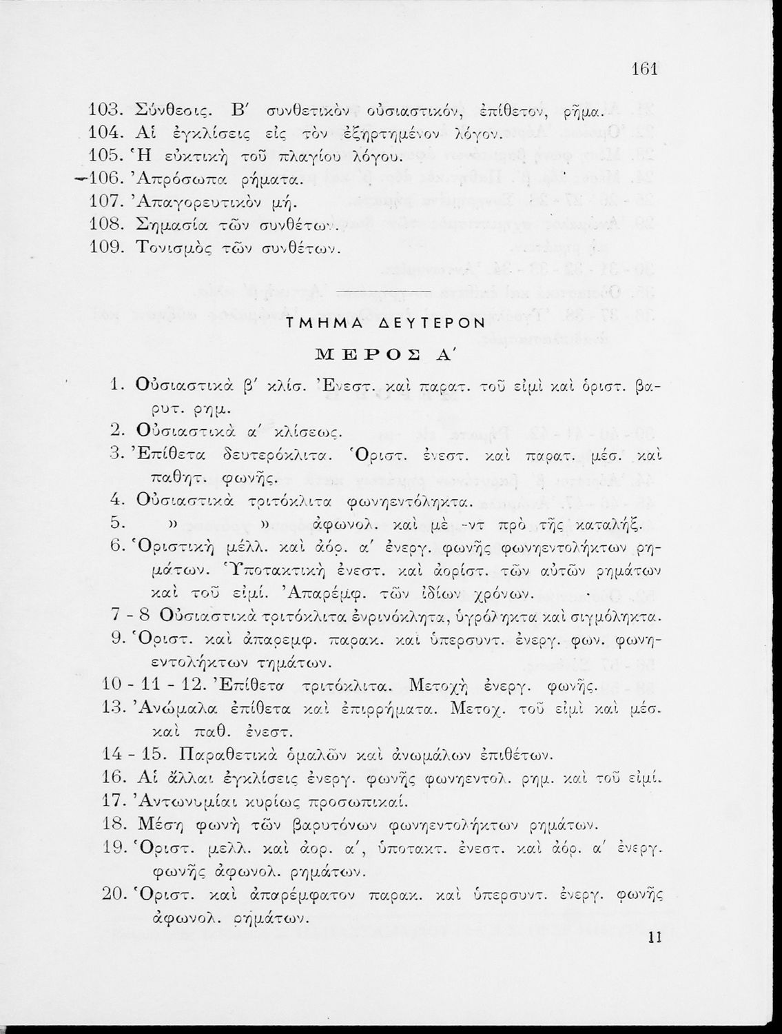 Σχολικό Εγχειρίδιο Αρχαίων Ελληνικών που περιλαμβάνει κείμενα προσαρμοσμένα στη διδασκαλία των γραμματικών και συντακτικών φαινομένων, και ερμηνευτικές και λεξιλογικές σημειώσεις.