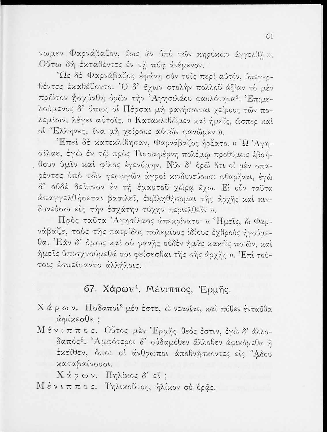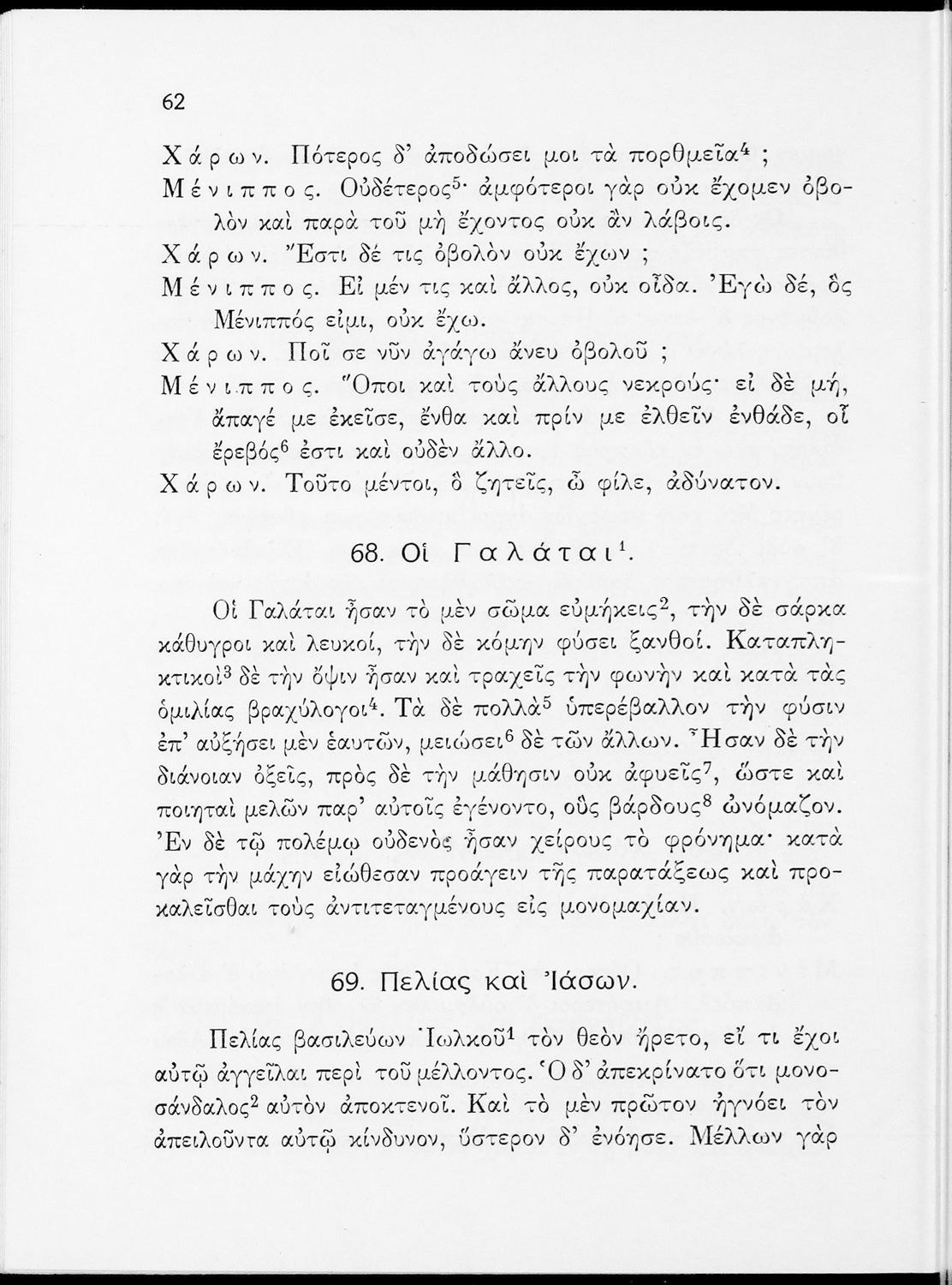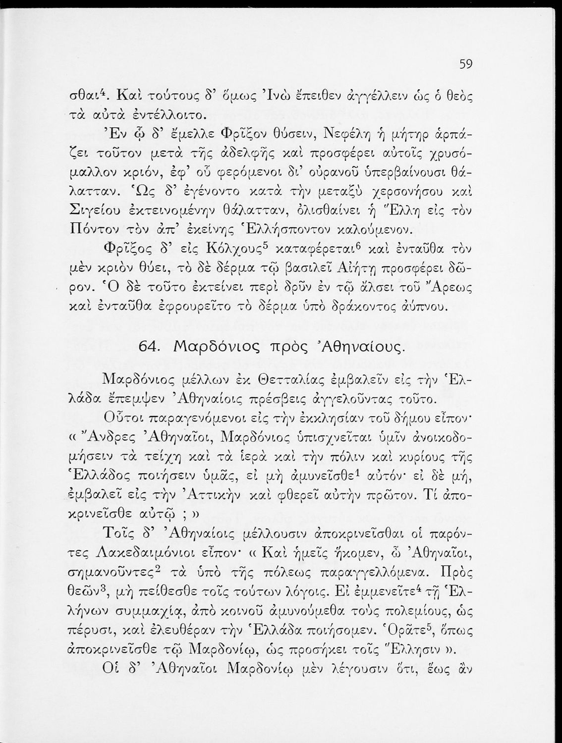 Σχολικό Εγχειρίδιο Αρχαίων Ελληνικών που περιλαμβάνει κείμενα προσαρμοσμένα στη διδασκαλία των γραμματικών και συντακτικών φαινομένων, και ερμηνευτικές και λεξιλογικές σημειώσεις.