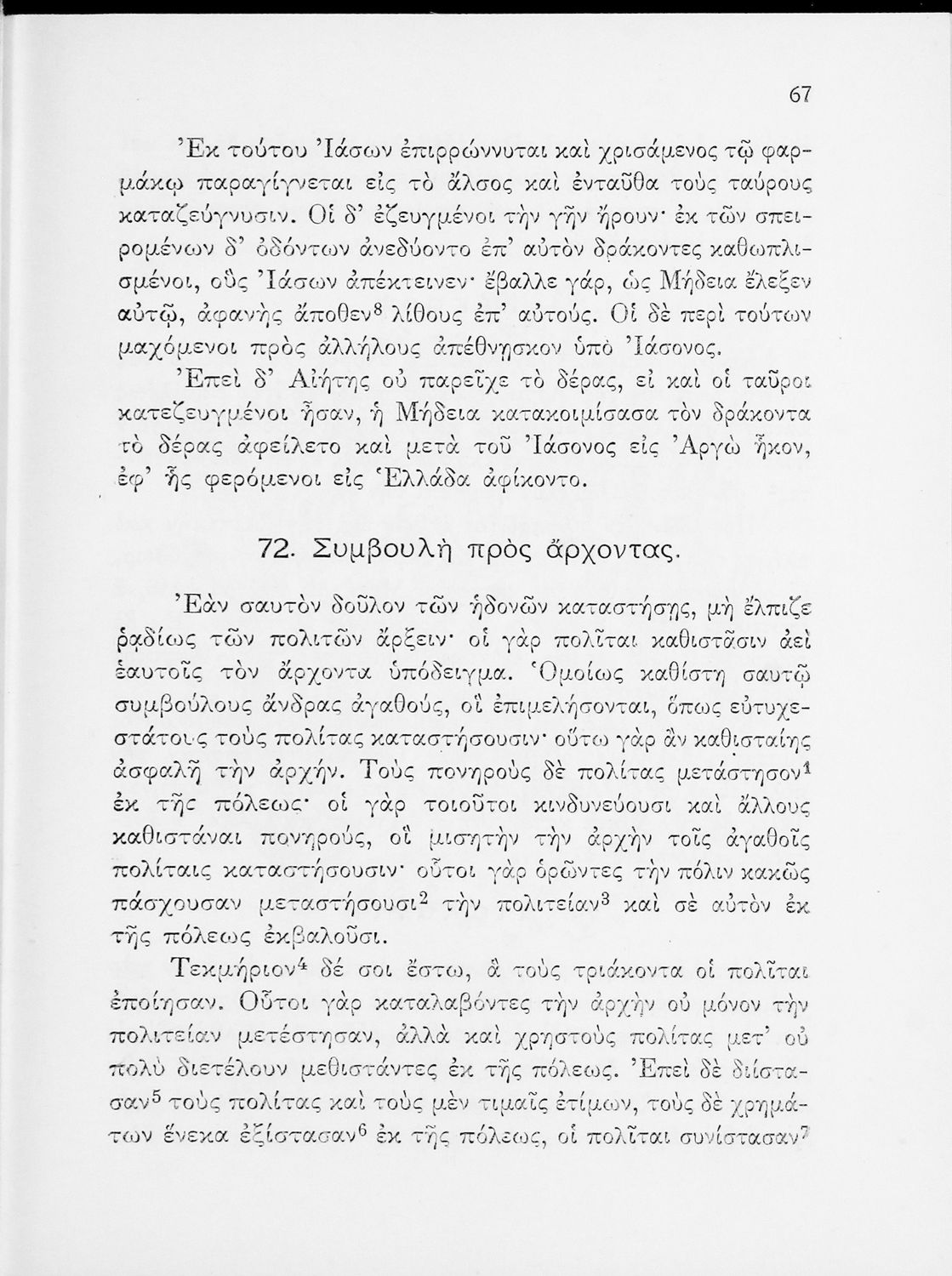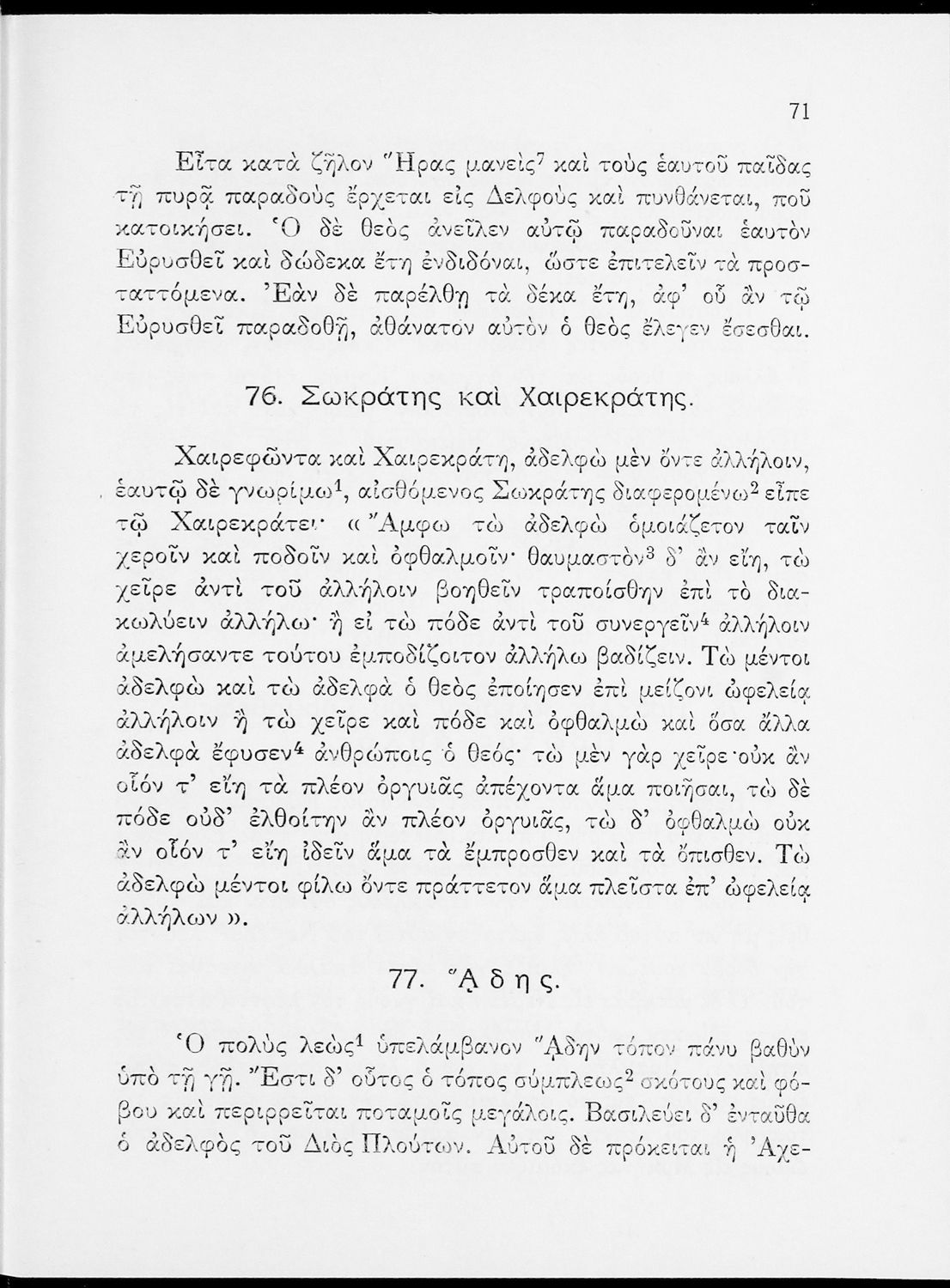 Σχολικό Εγχειρίδιο Αρχαίων Ελληνικών που περιλαμβάνει κείμενα προσαρμοσμένα στη διδασκαλία των γραμματικών και συντακτικών φαινομένων, και ερμηνευτικές και λεξιλογικές σημειώσεις.