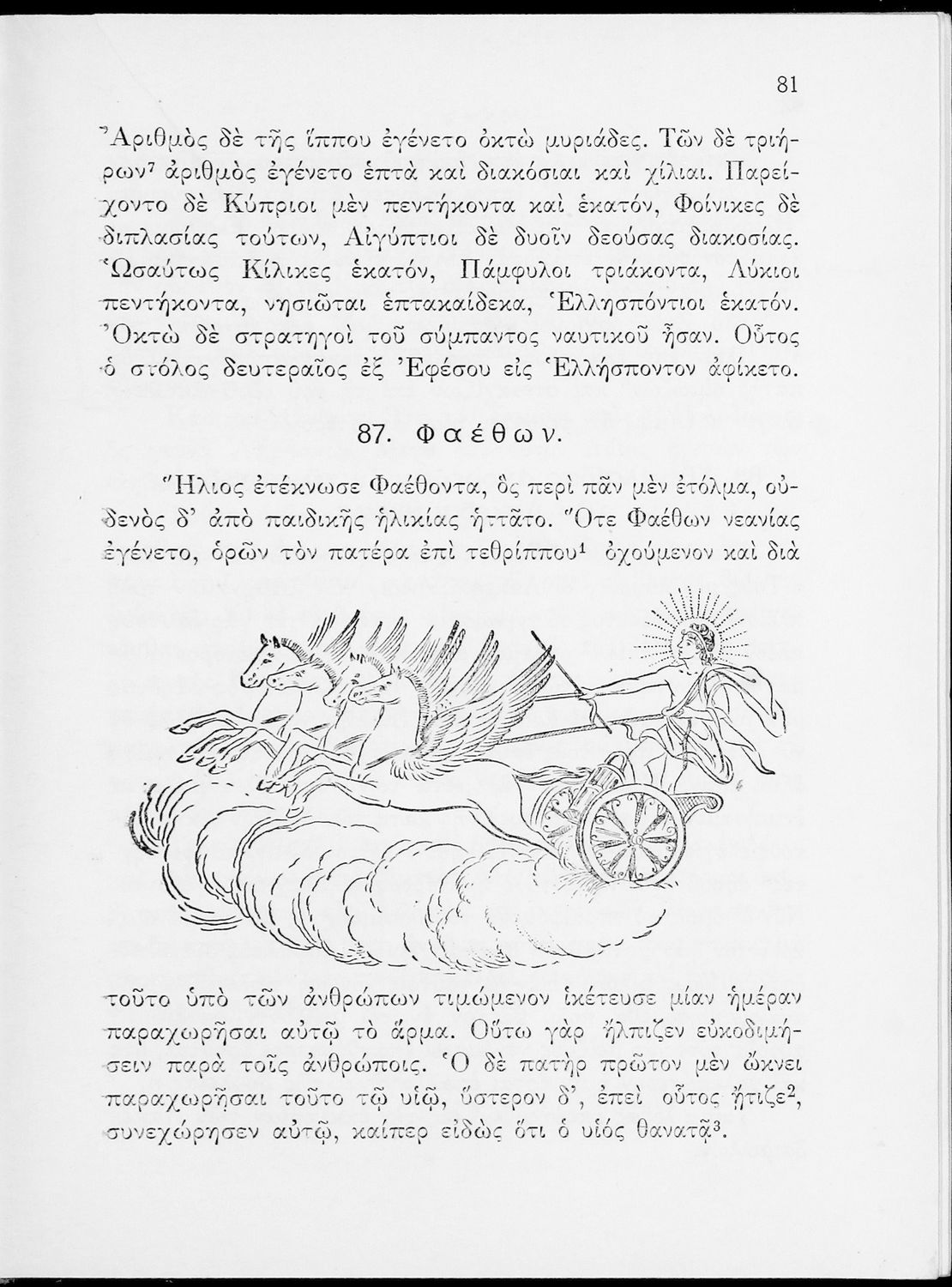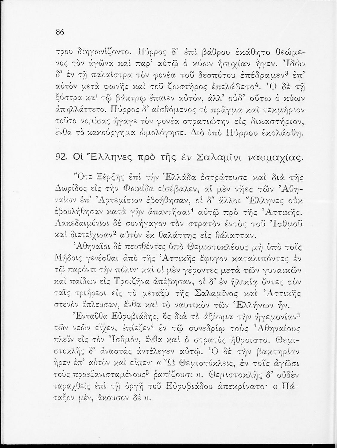 Σχολικό εγχειρίδιο Αρχαίων Ελληνικών Γυμνασίου που περιέχει κείμενα βασισμένα στην αρχαία ελληνική ιστορία και μυθολογία και γραμματικές, συντακτικές και ετυμολογικές παρατηρήσεις.